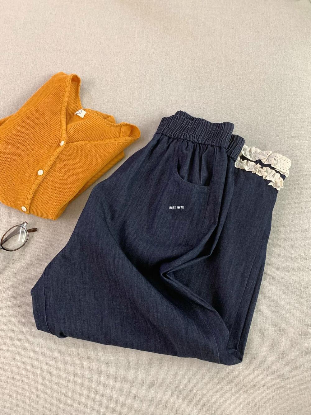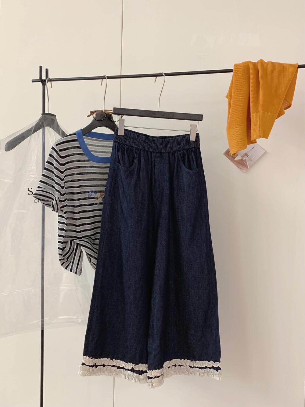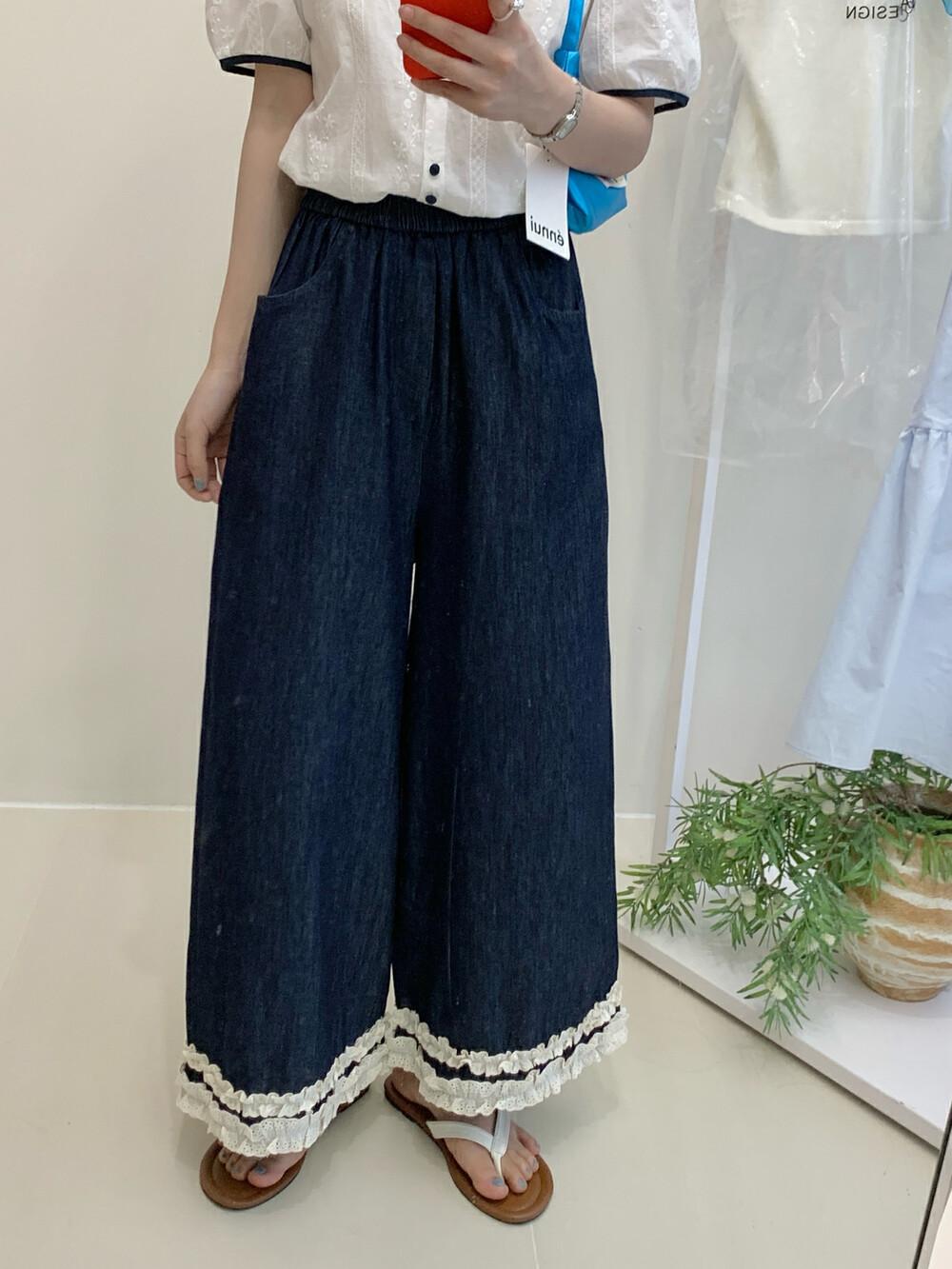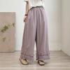 2025 Nuevo Verano Estilo Coreano Diseño Estilo Femenino Reductor de Edad Encaje Hongo Cintura Elástica Casual Pantalones Pierna Ancha