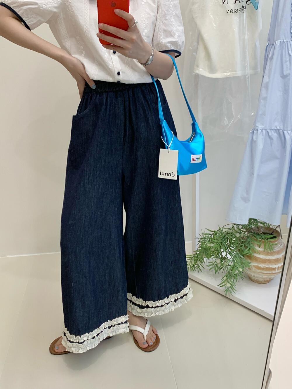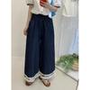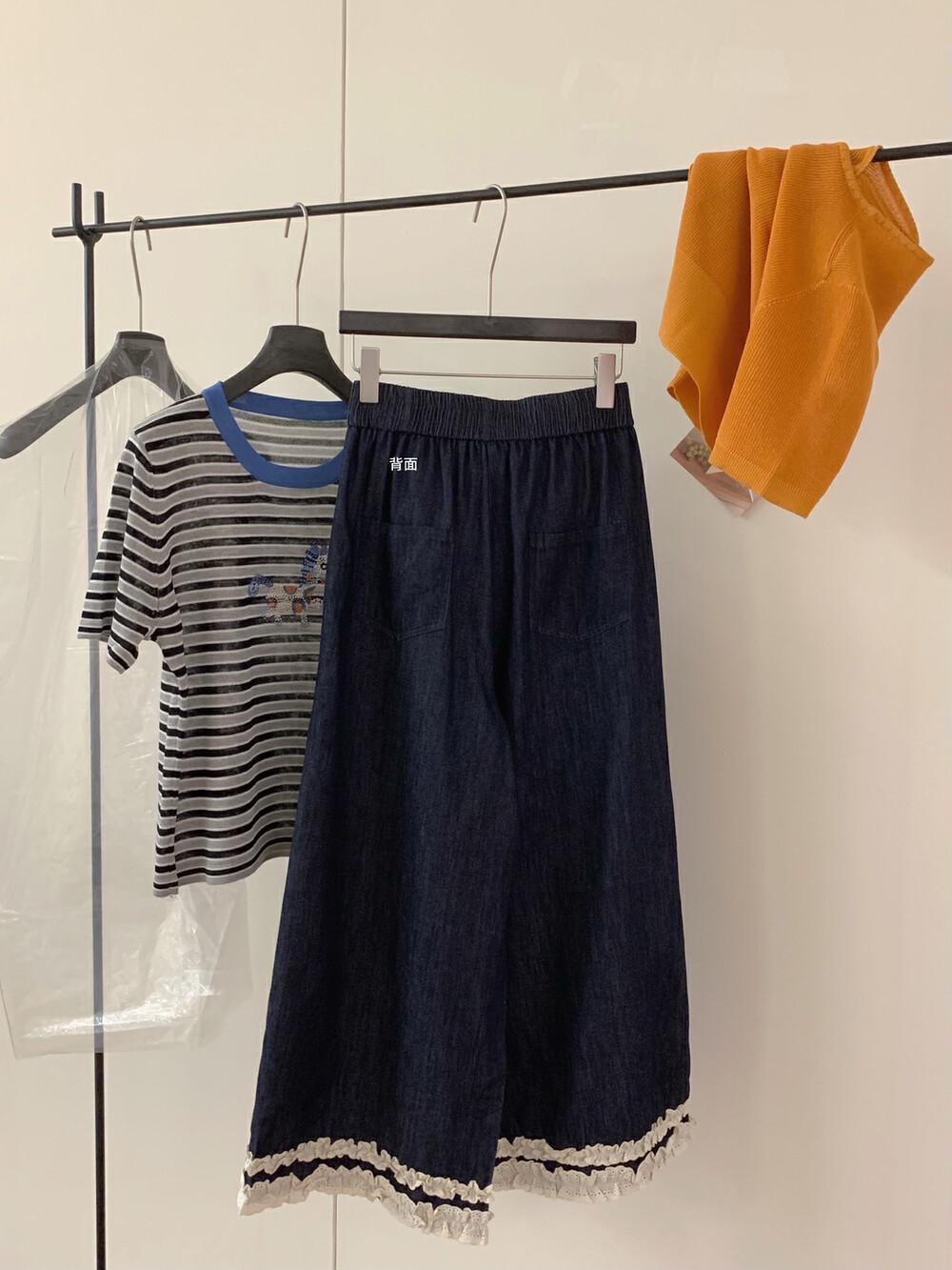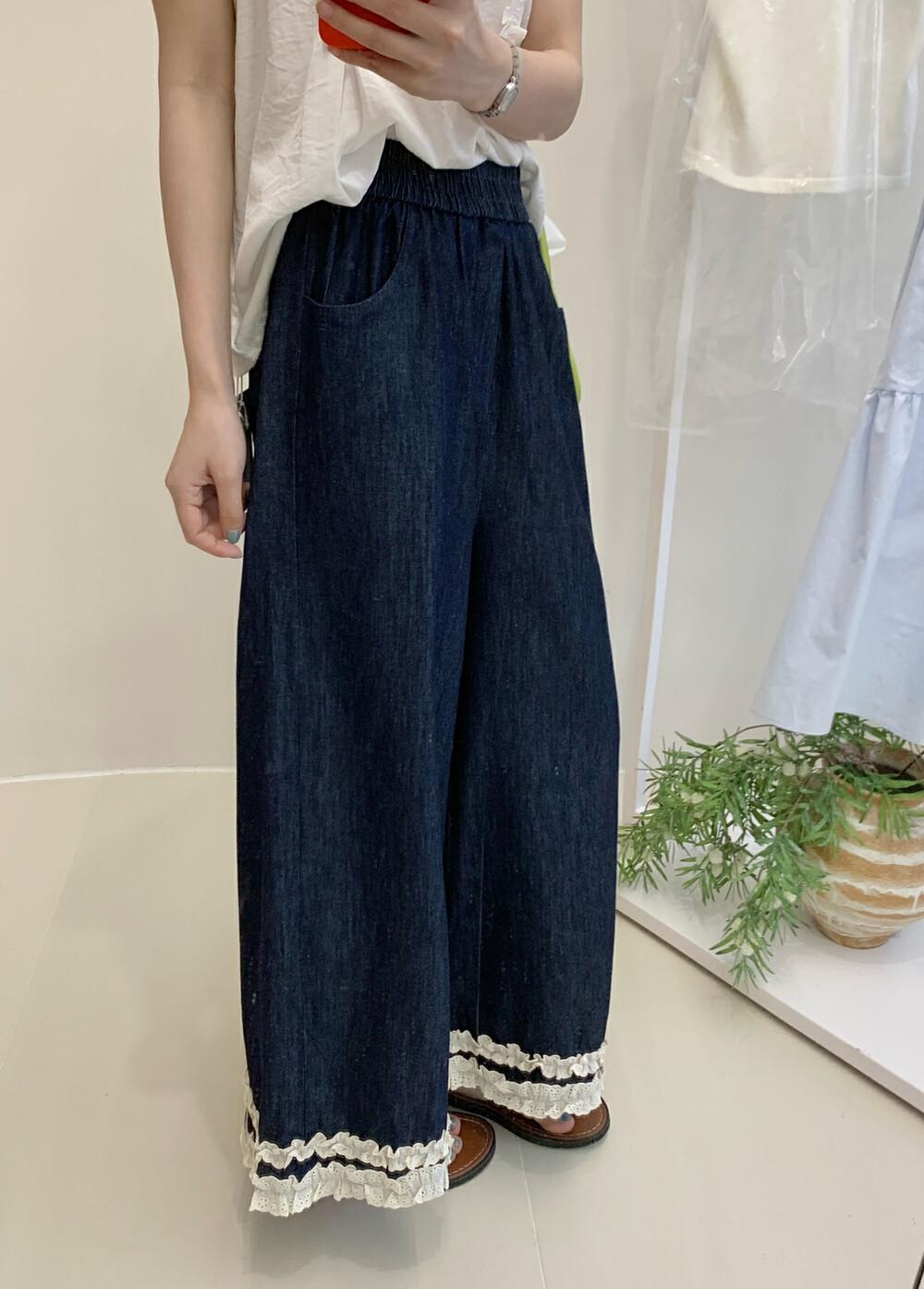 2025 Nuevo Verano Estilo Coreano Diseño Estilo Femenino Reductor de Edad Encaje Hongo Cintura Elástica Casual Pantalones Pierna Ancha