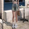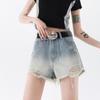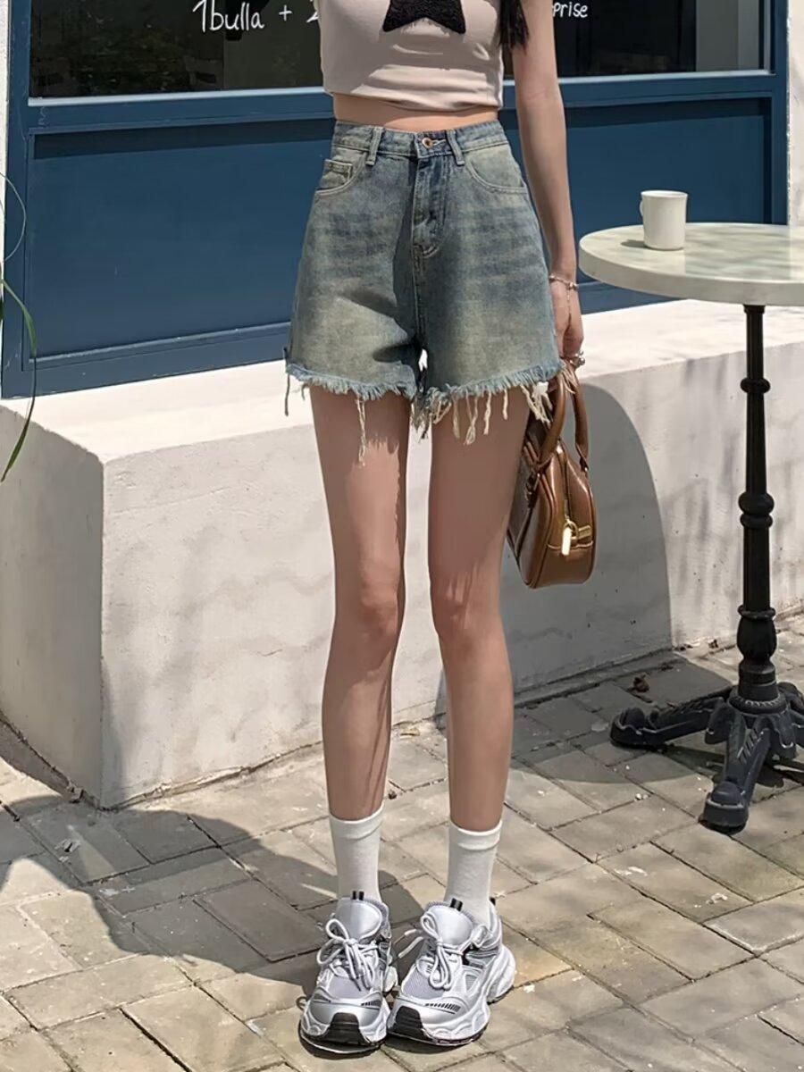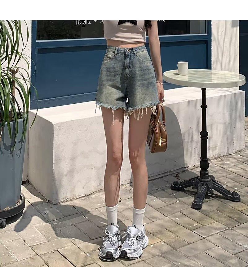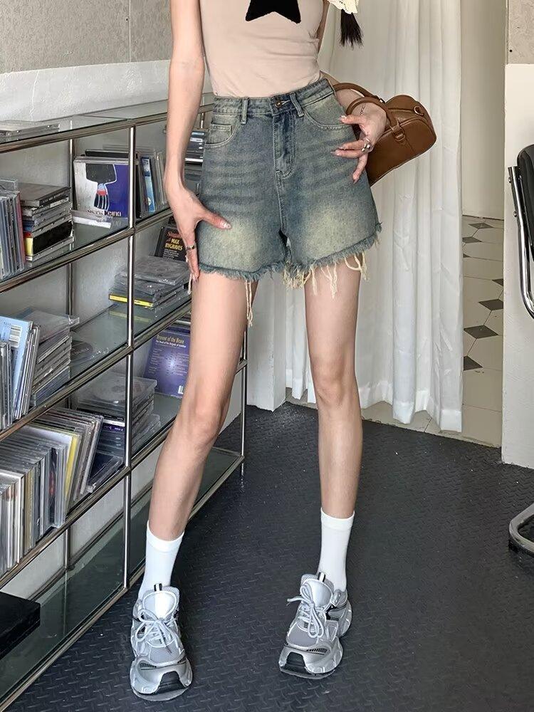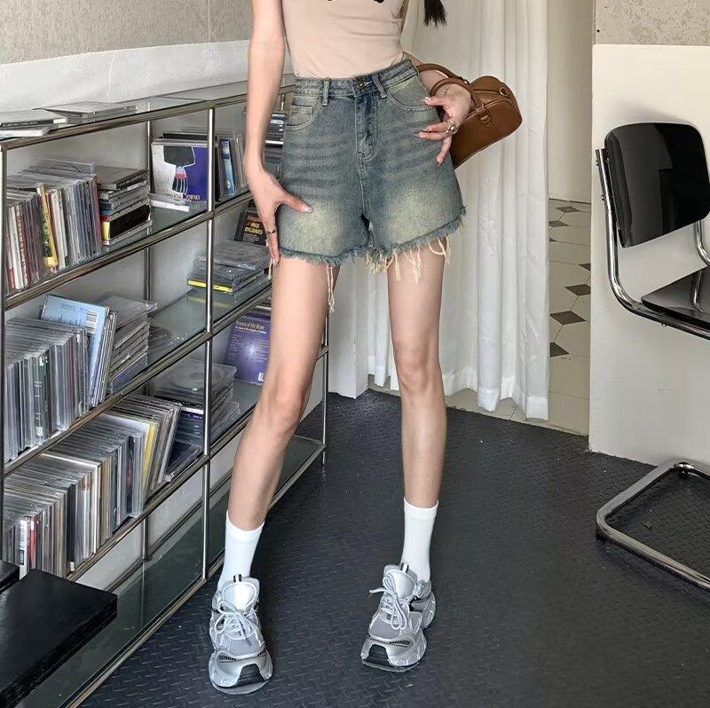 Shorts de Mezclilla American Hot Girl 2025 Verano Nuevo Cintura Alta Silueta Adelgazante Retro Deshilachado Línea A Moderno Elegante