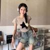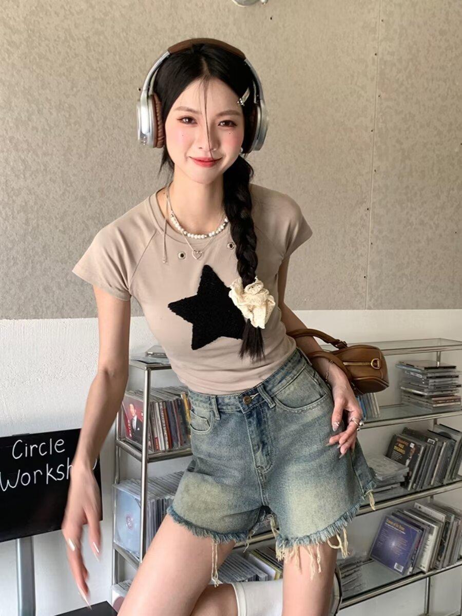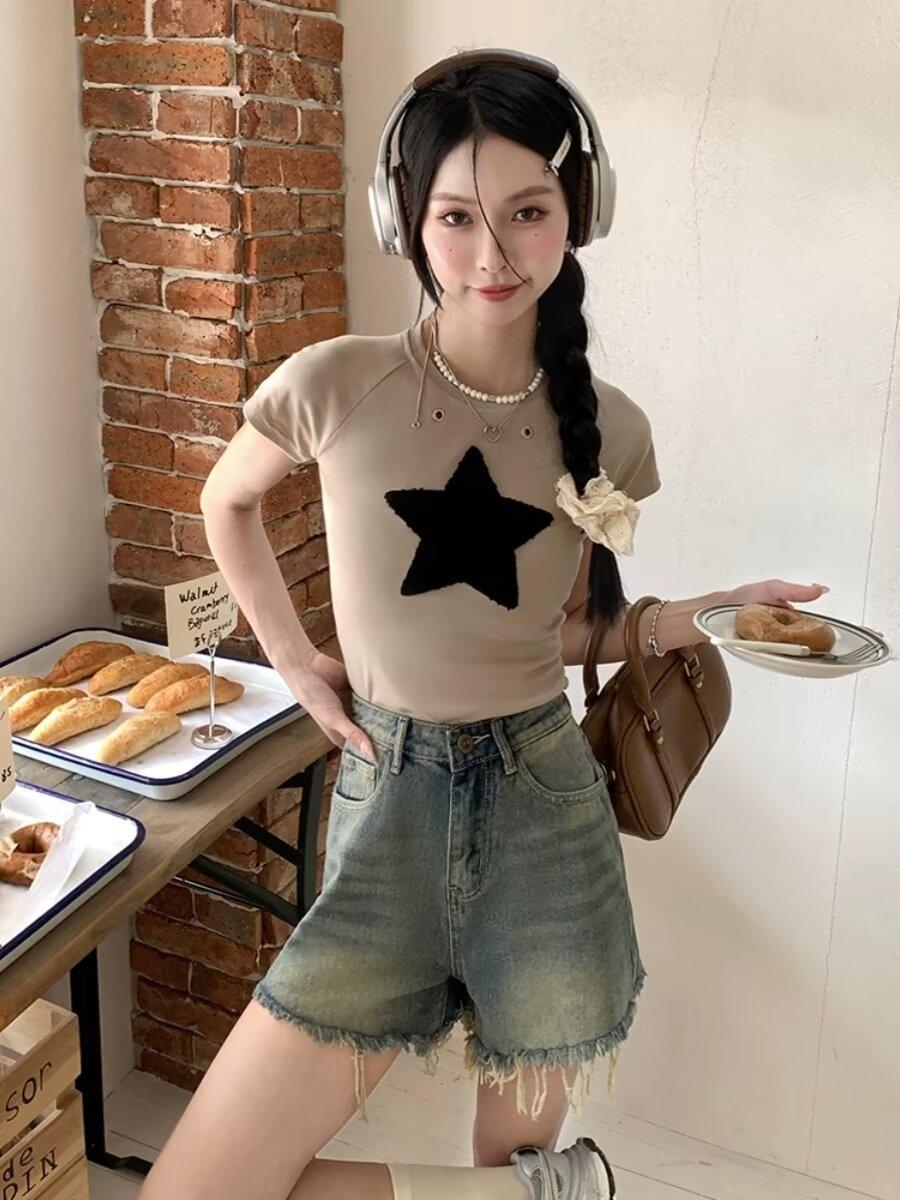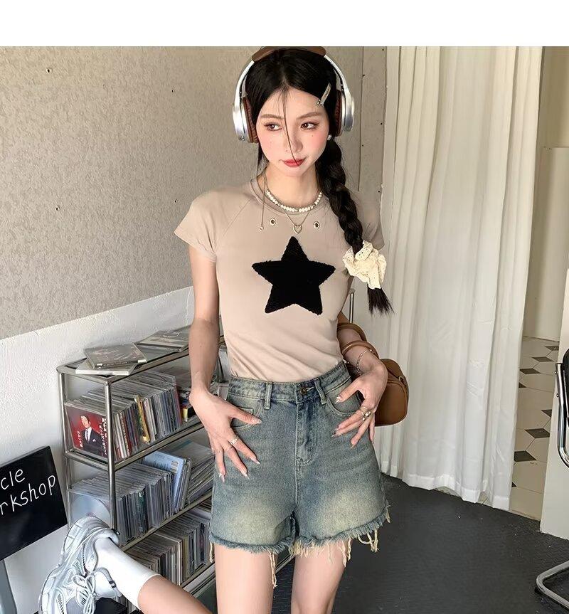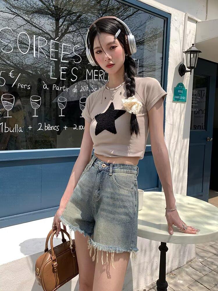 Shorts de Mezclilla American Hot Girl 2025 Verano Nuevo Cintura Alta Silueta Adelgazante Retro Deshilachado Línea A Moderno Elegante