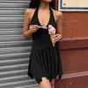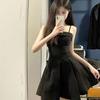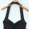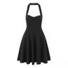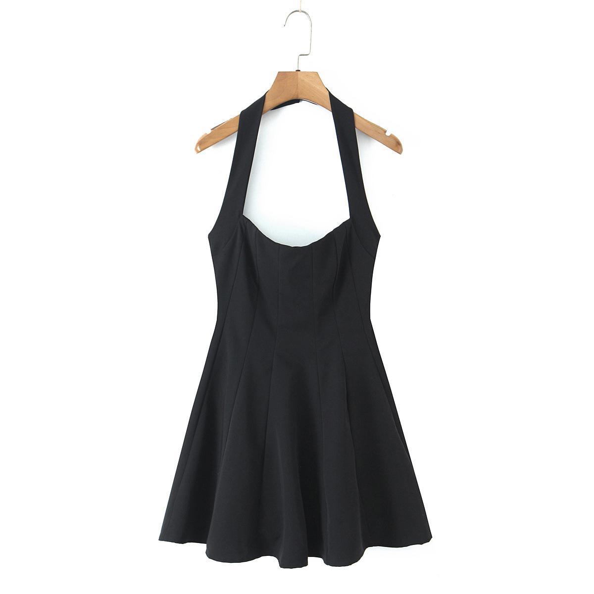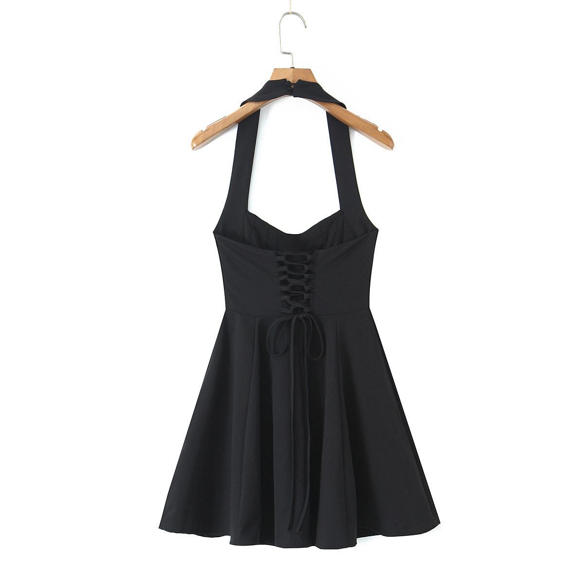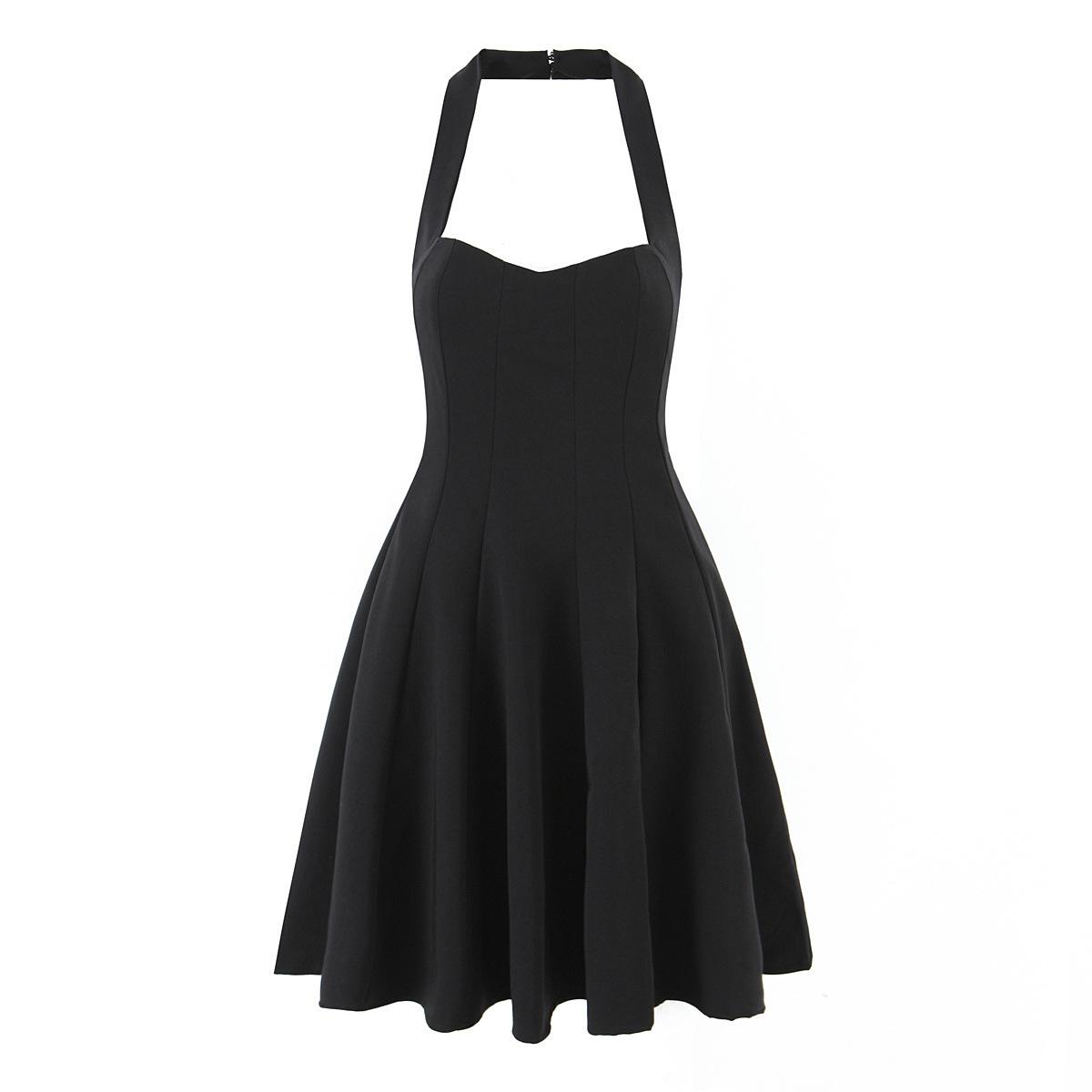 Z Verano Francés Retro Hepburn Elegante Vestido Negro Corto para Mujer con Cinturón de Cintura Vestido Sexy Halter de Lujuria Pura