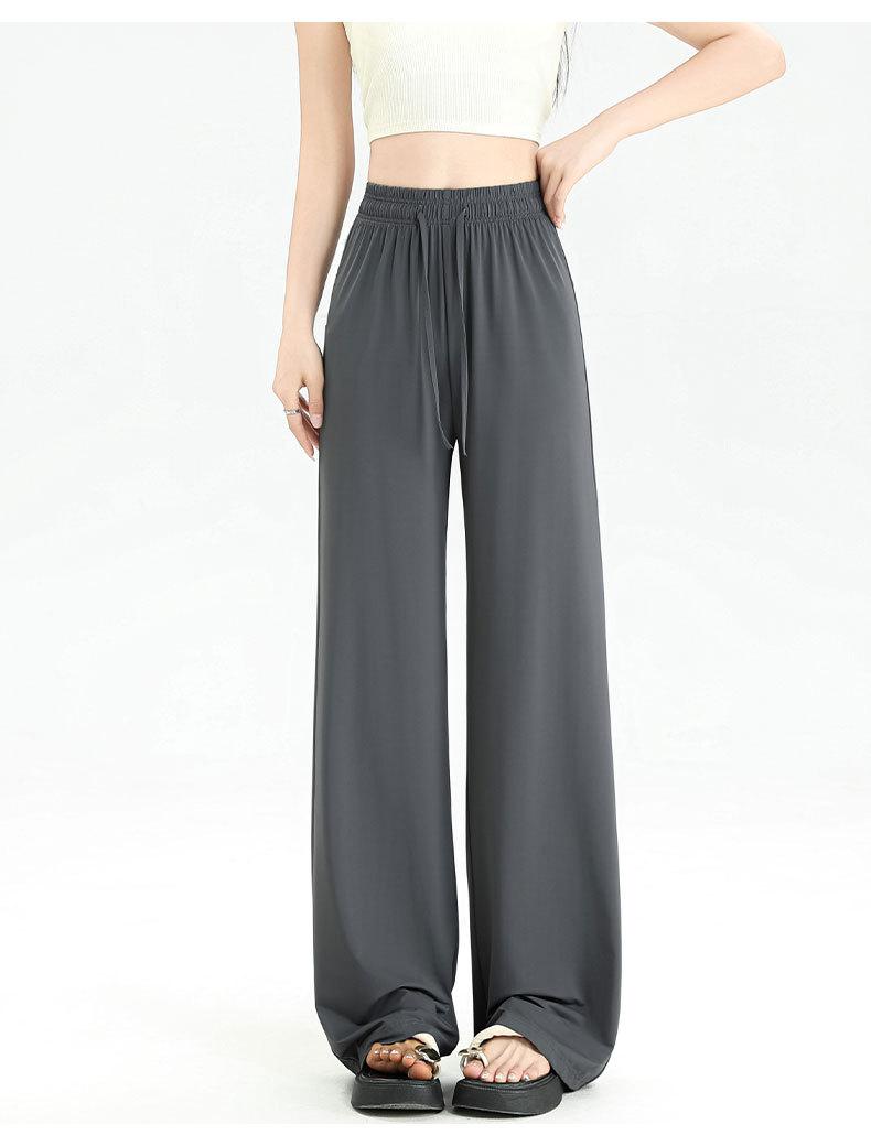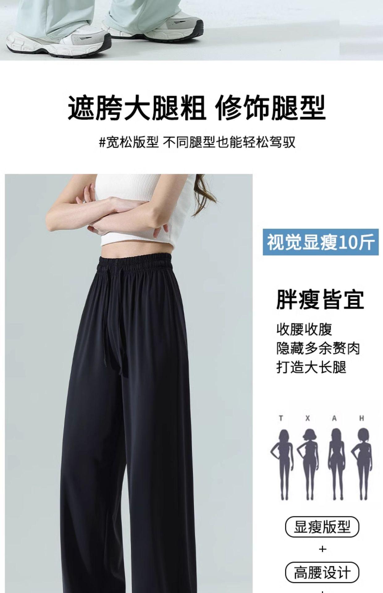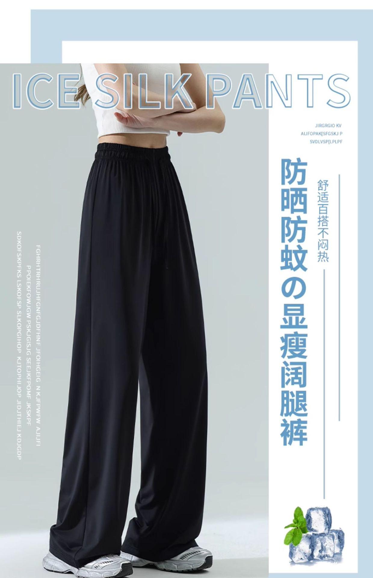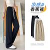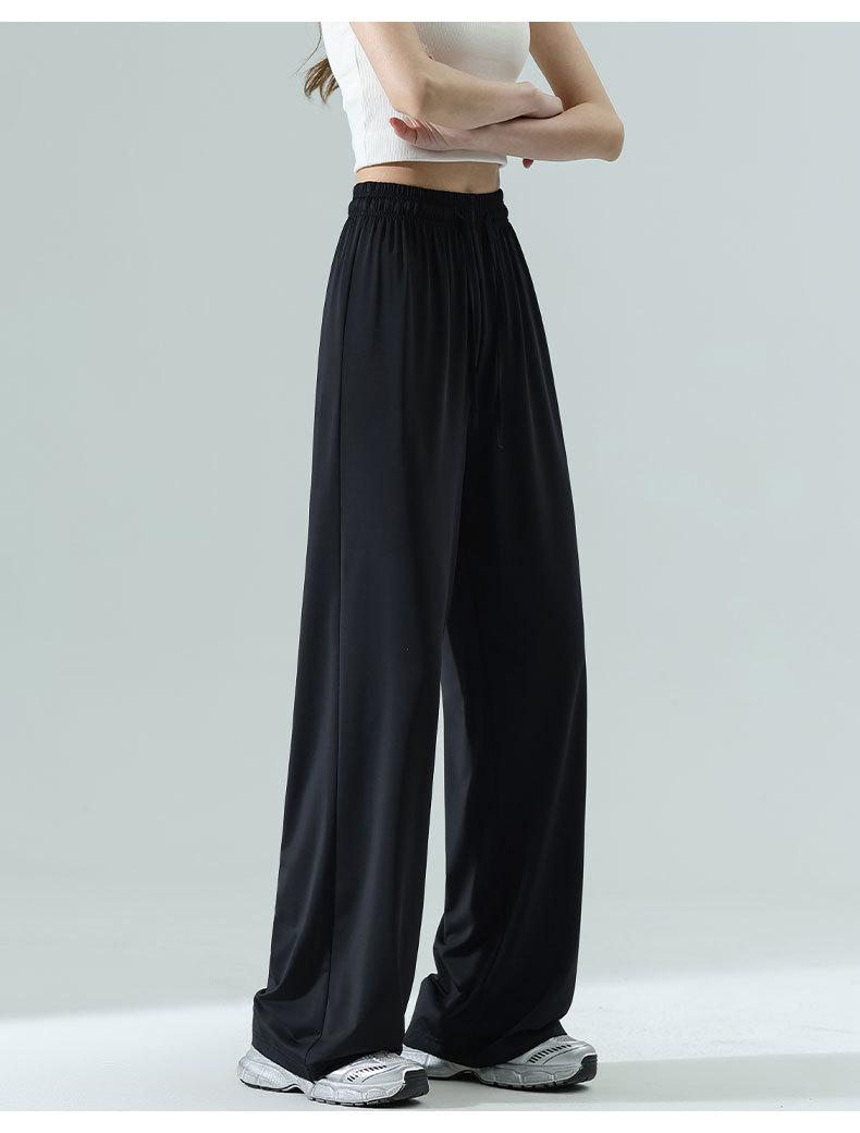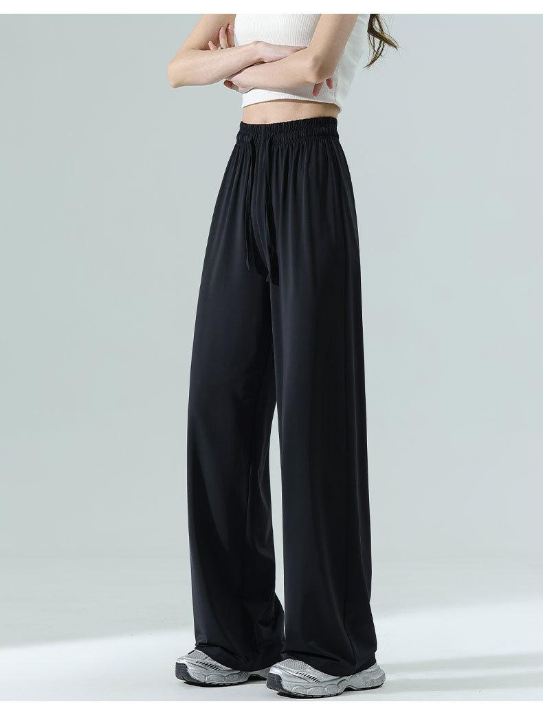 Pantalones de pierna ancha de seda de hielo con protección solar para mujer, negros, pequeños, de talle alto, con caída, casuales, pantalones acampanados, nuevos de verano 2025, delgados