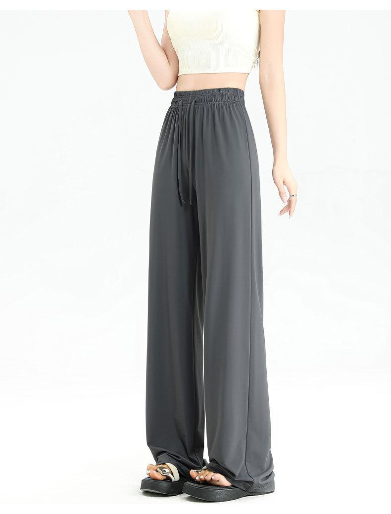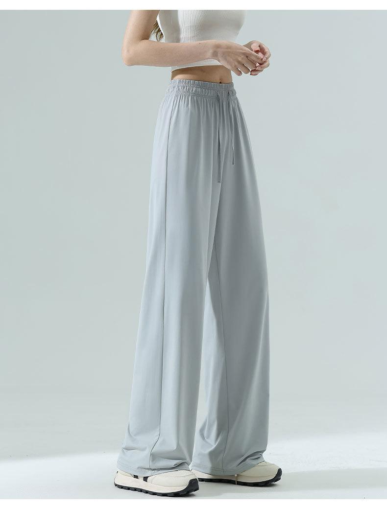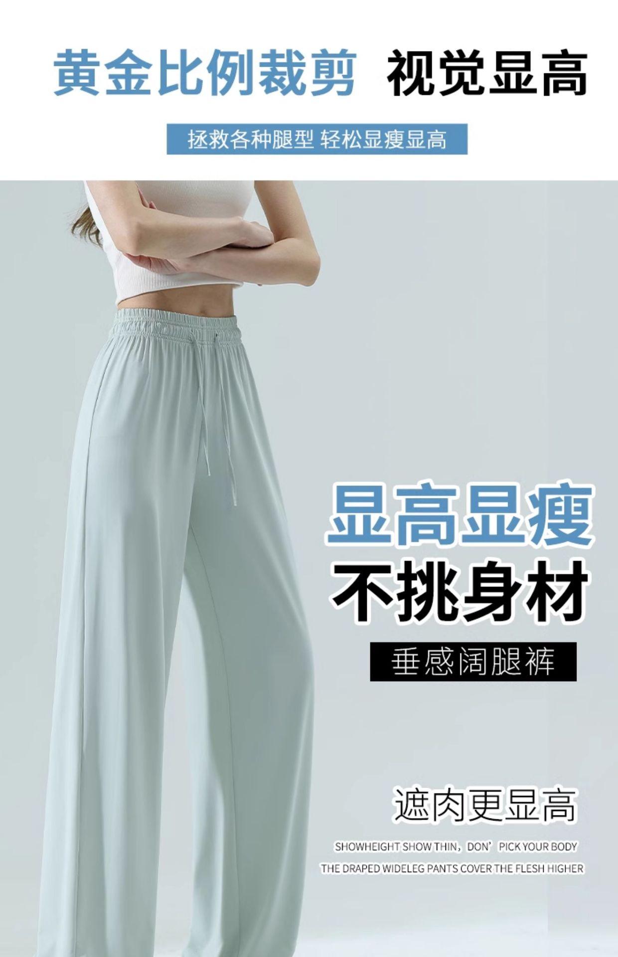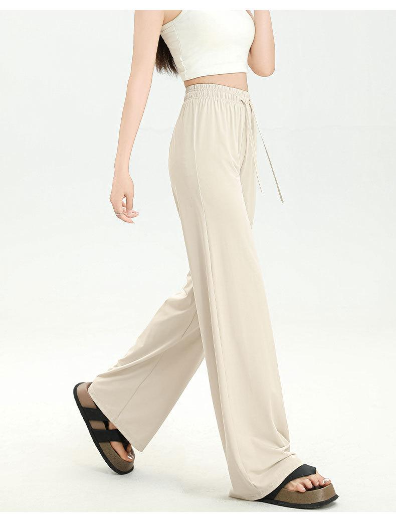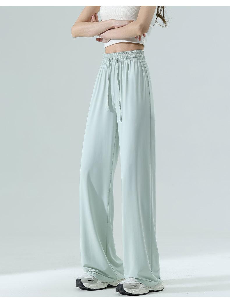 Pantalones de pierna ancha de seda de hielo con protección solar para mujer, negros, pequeños, de talle alto, con caída, casuales, pantalones acampanados, nuevos de verano 2025, delgados