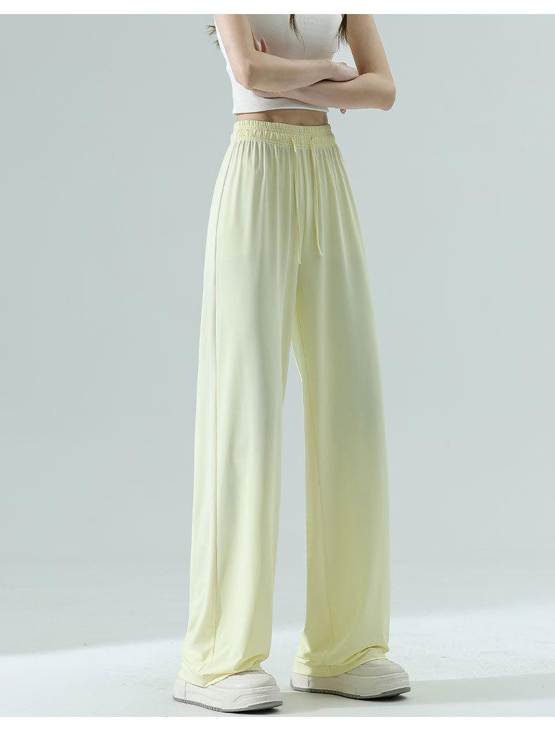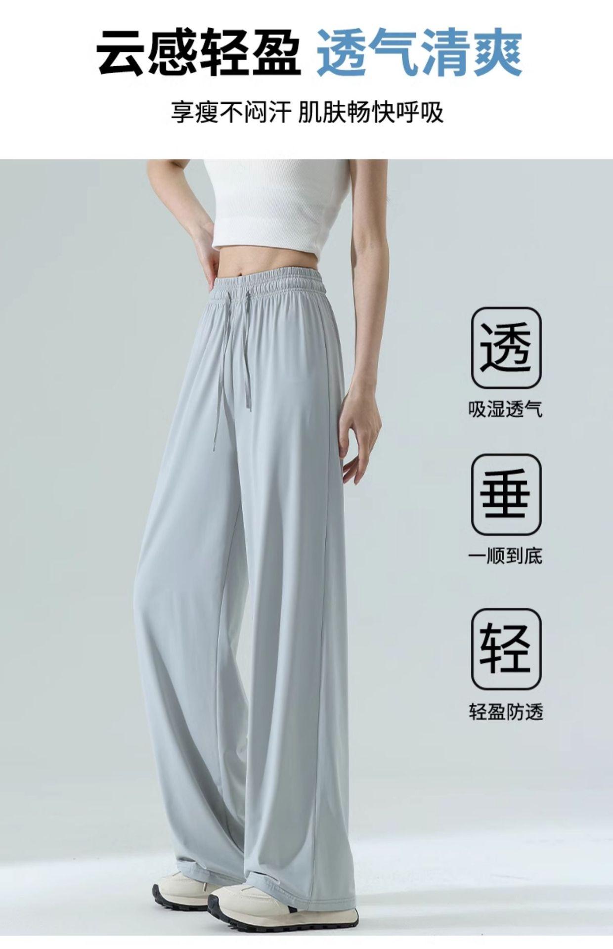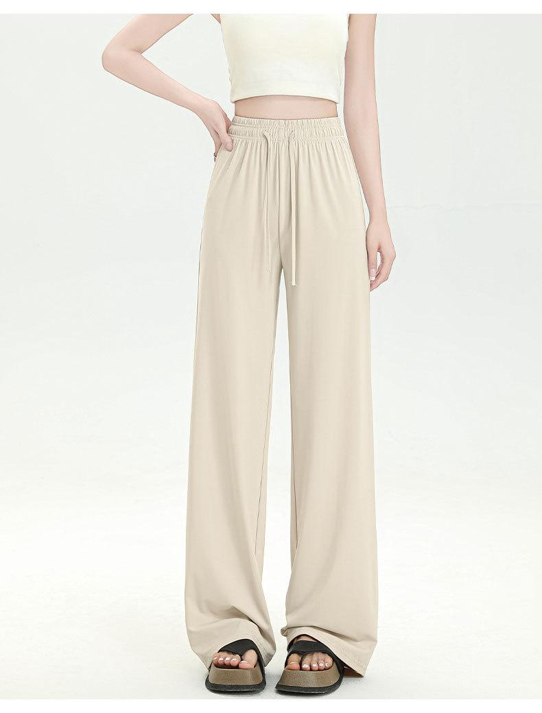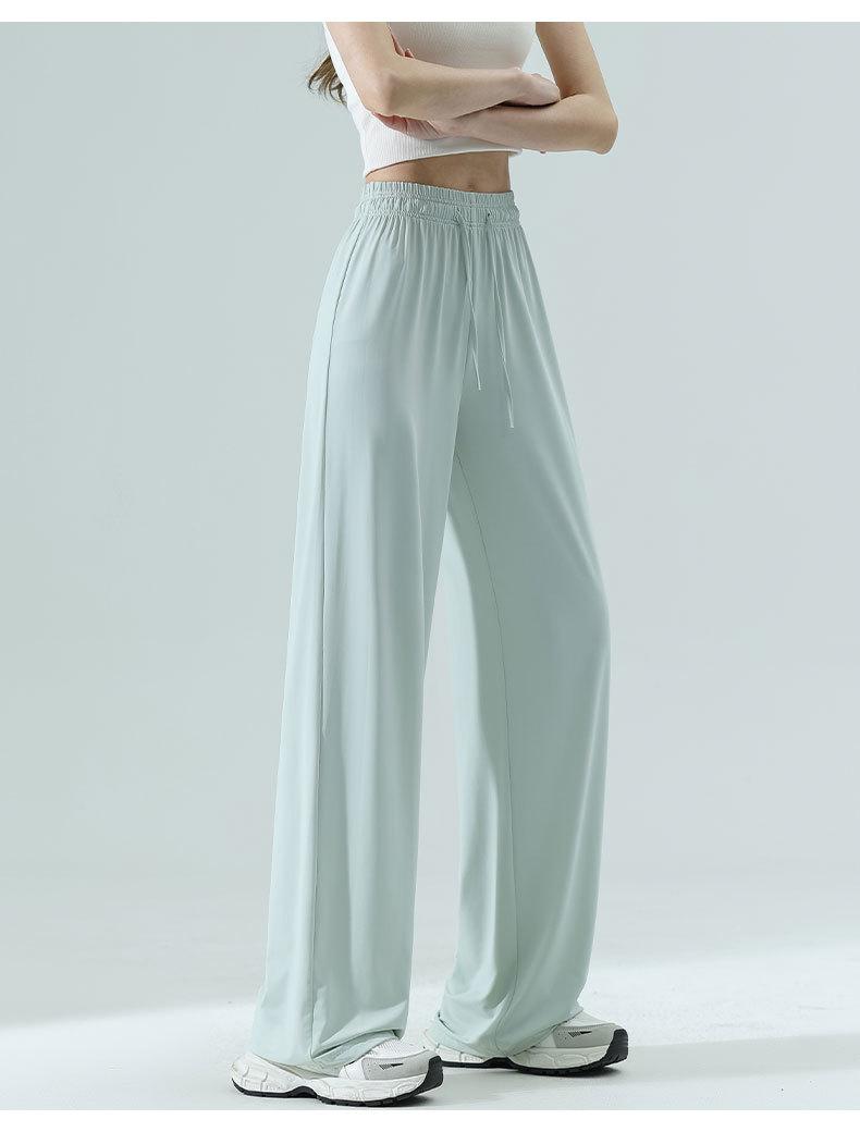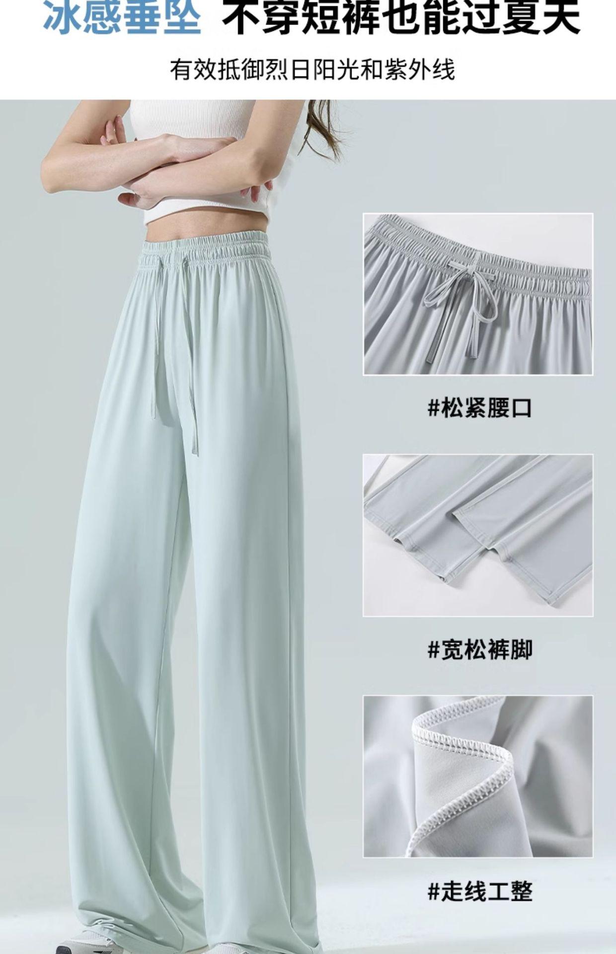 Pantalones de pierna ancha de seda de hielo con protección solar para mujer, negros, pequeños, de talle alto, con caída, casuales, pantalones acampanados, nuevos de verano 2025, delgados