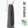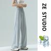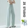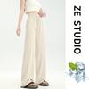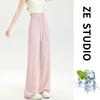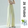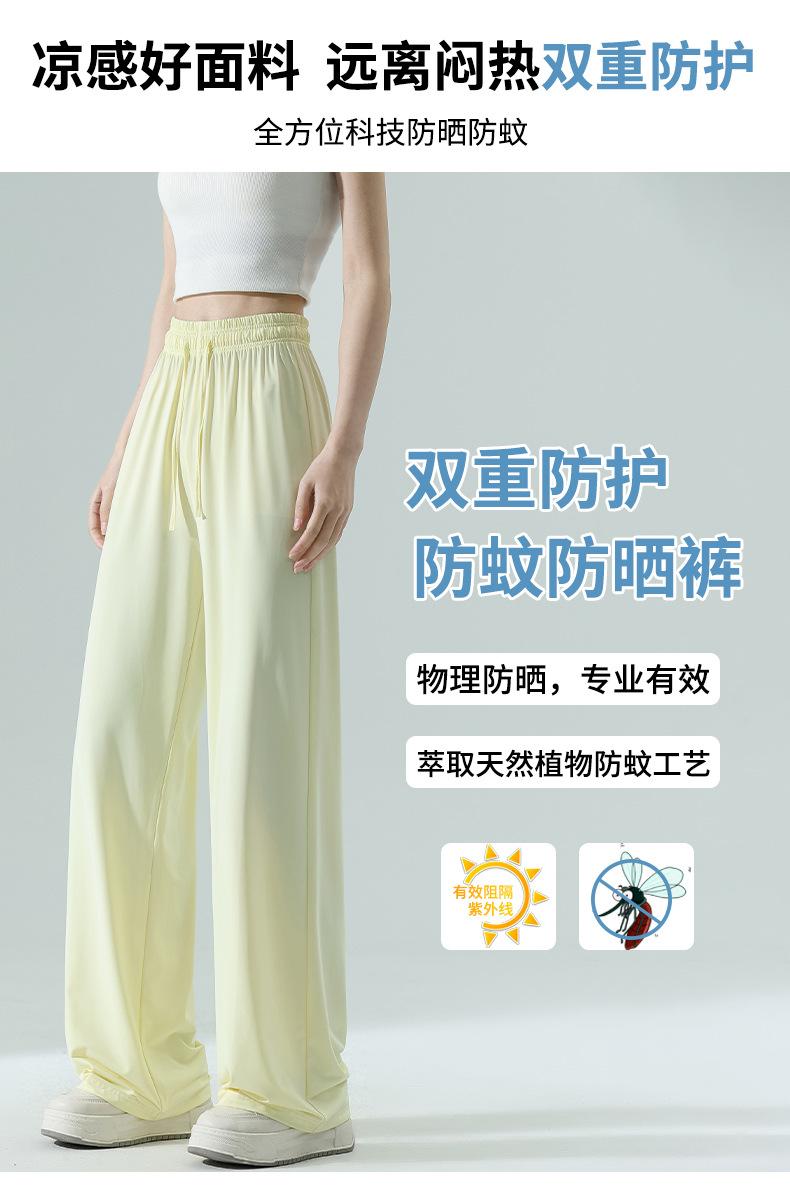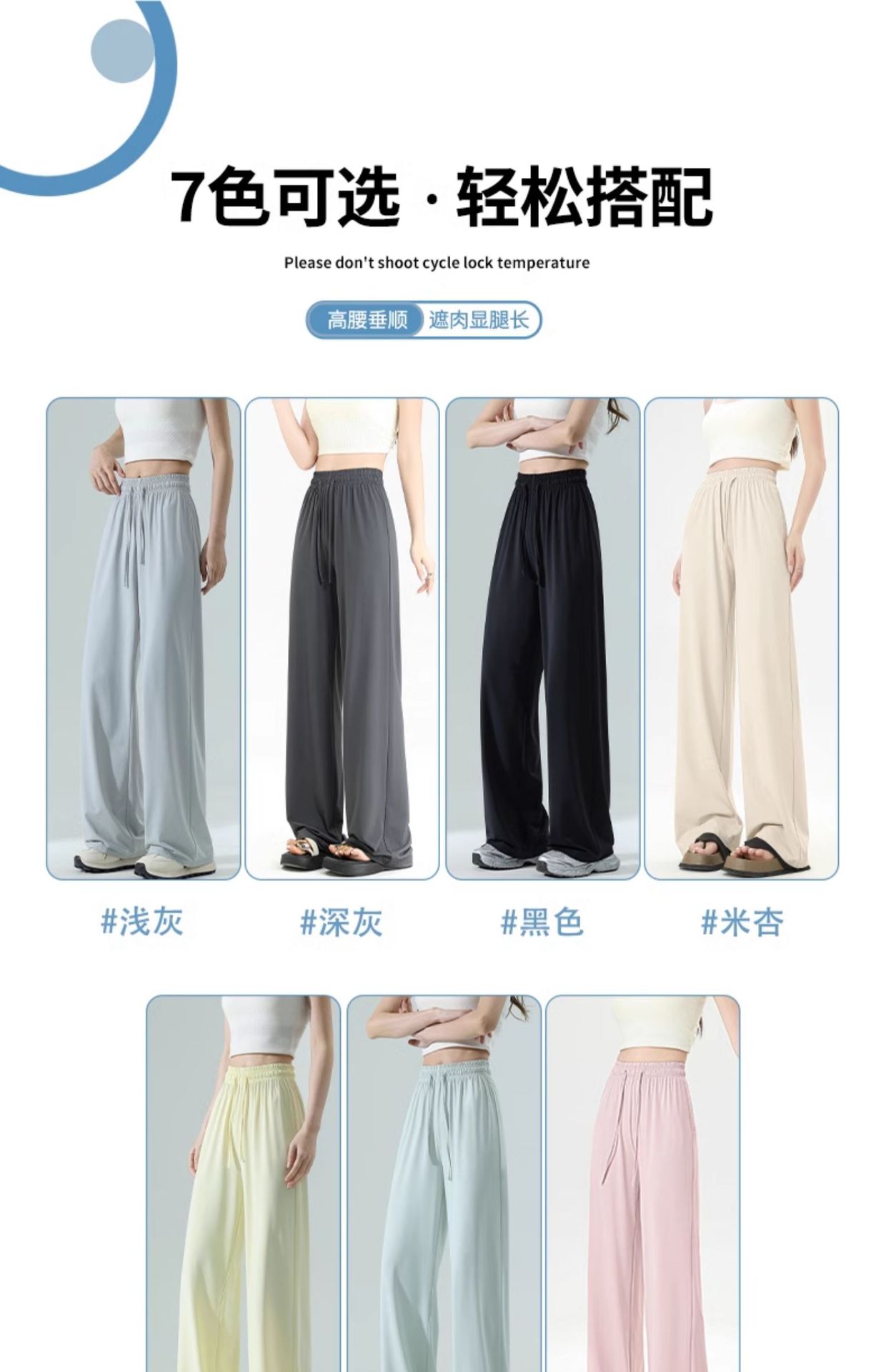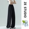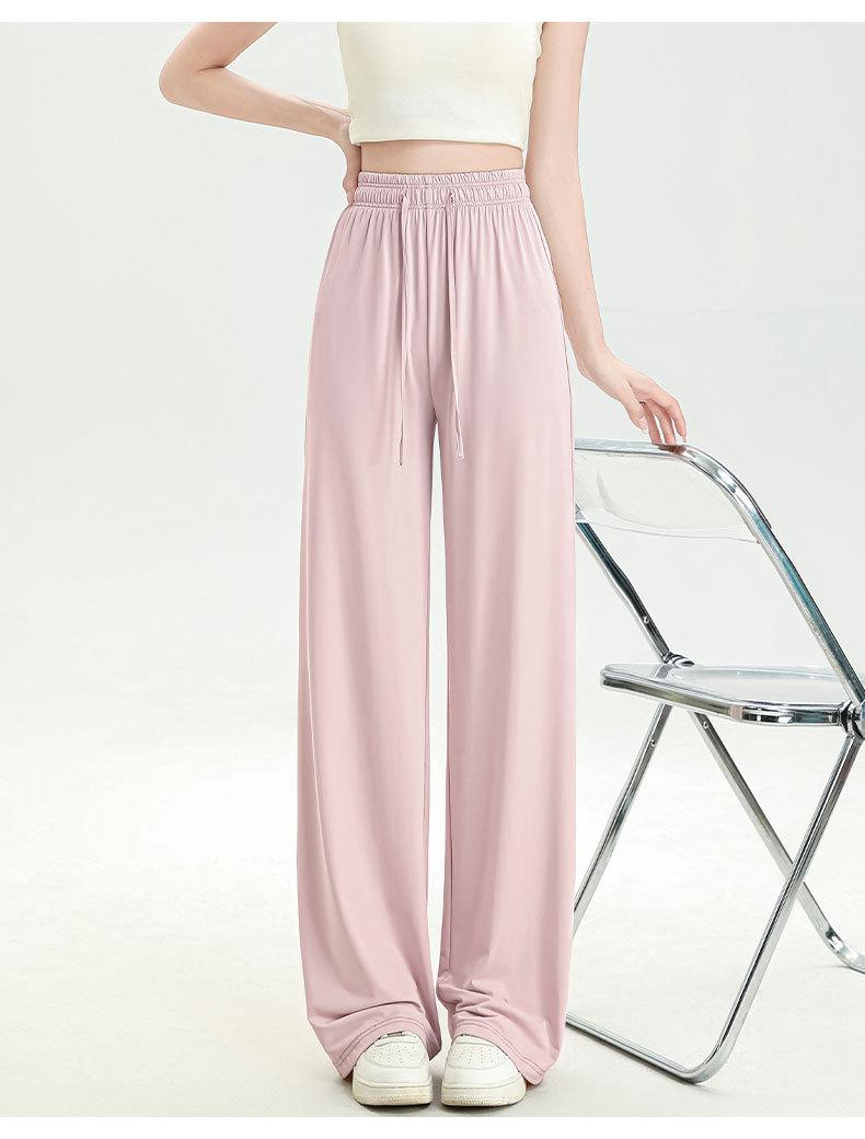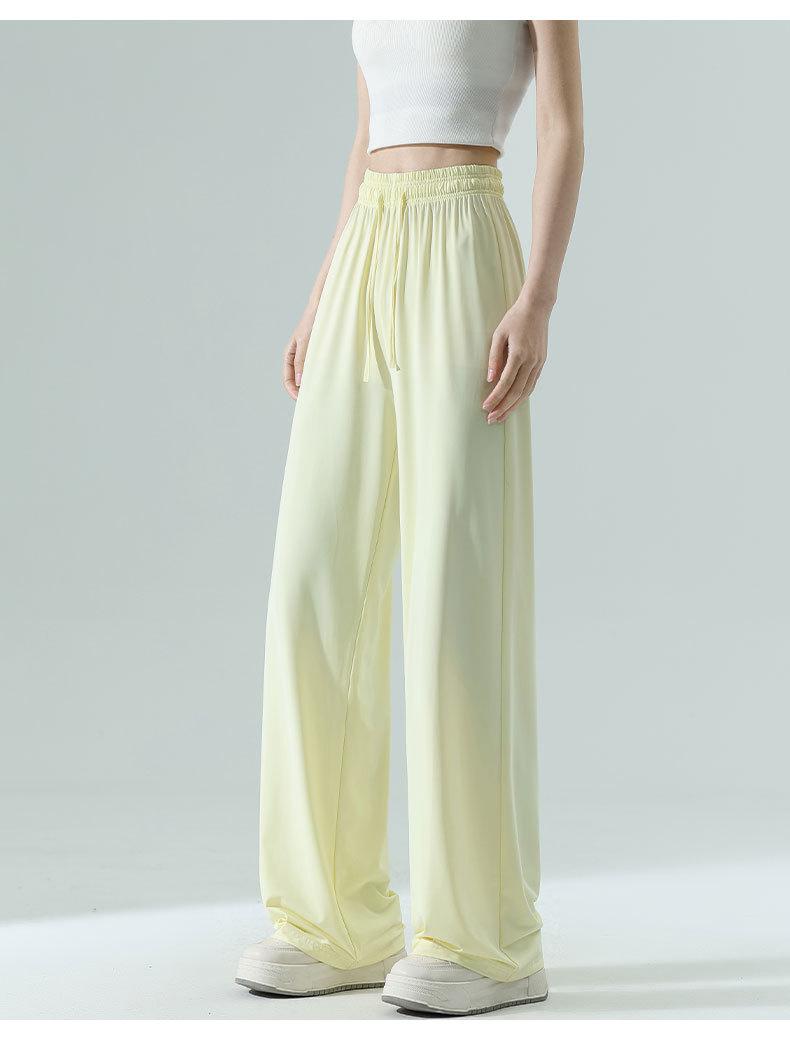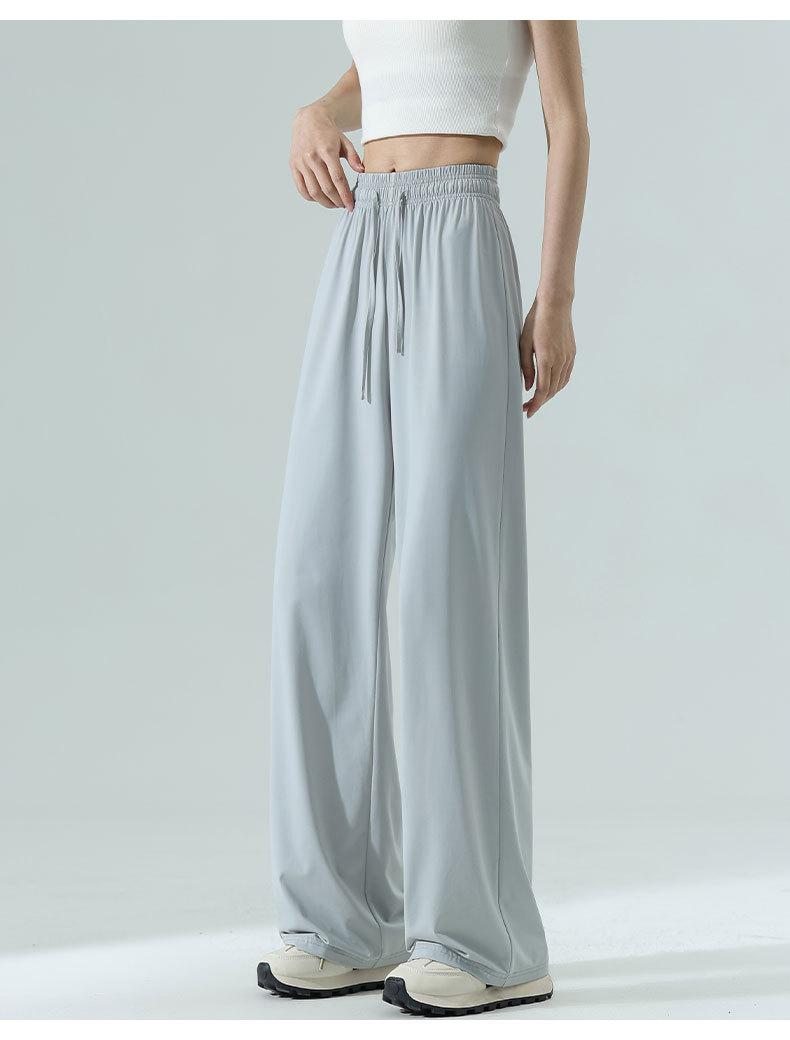 Pantalones de pierna ancha de seda de hielo con protección solar para mujer, negros, pequeños, de talle alto, con caída, casuales, pantalones acampanados, nuevos de verano 2025, delgados
