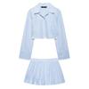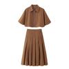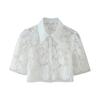 Z Moda Transfronteriza Elegante 2025 Nuevo Verano para Mujer Color Puro Encaje Manga Corta Camisa Falda con Lazo Conjunto de Dos Piezas