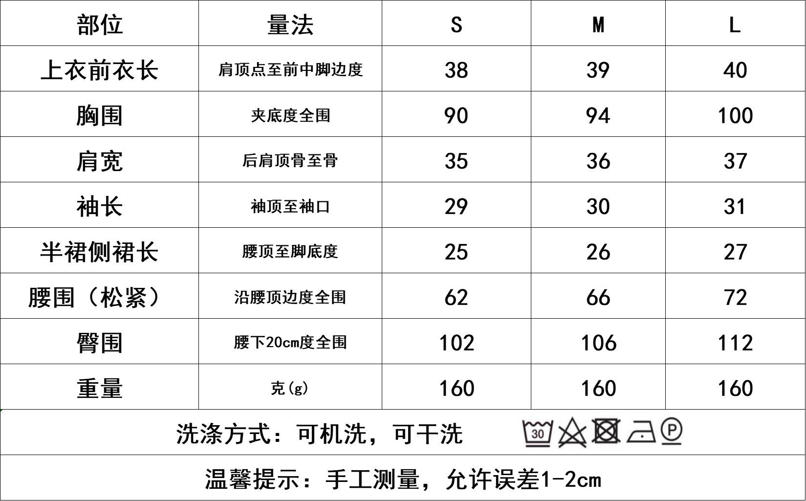 S, M, L