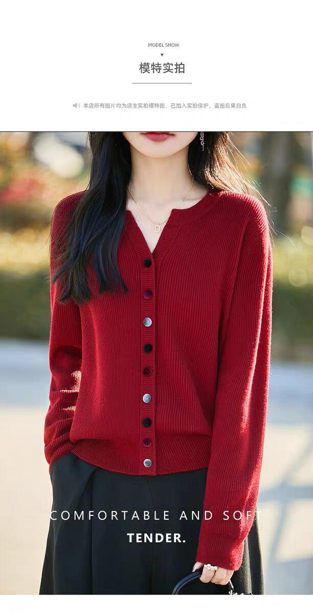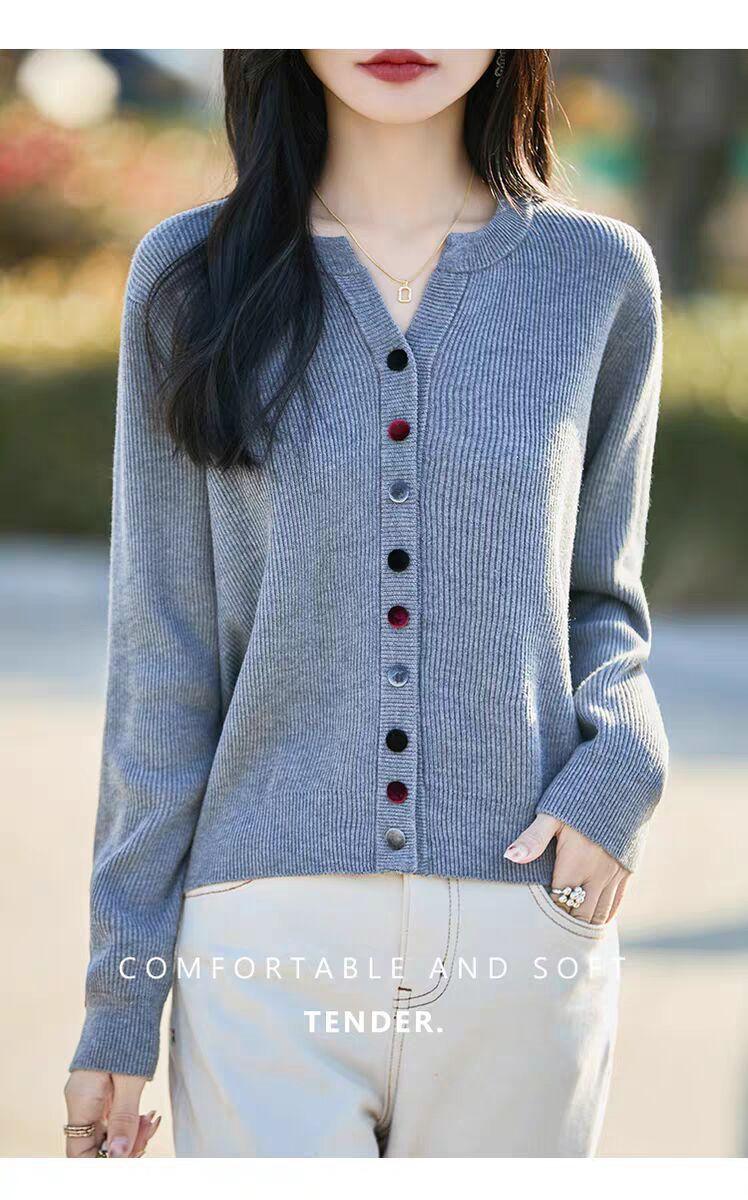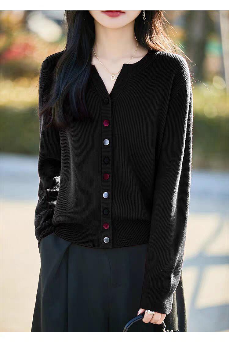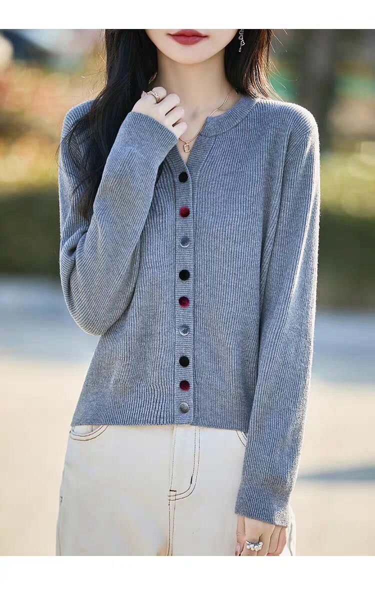 Suéter de Lana Tejido Cárdigan Abrigo para Mujer Primavera y Otoño Nuevo Cuello Redondo Casual Top de Lana Tejida