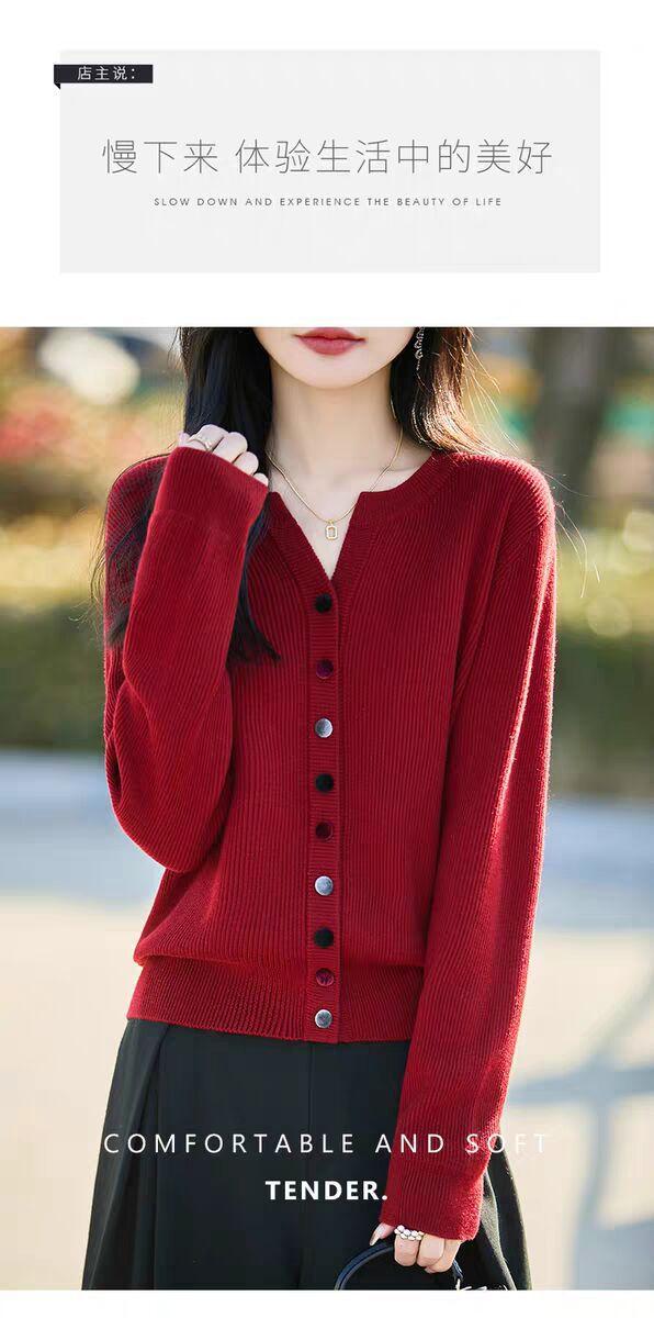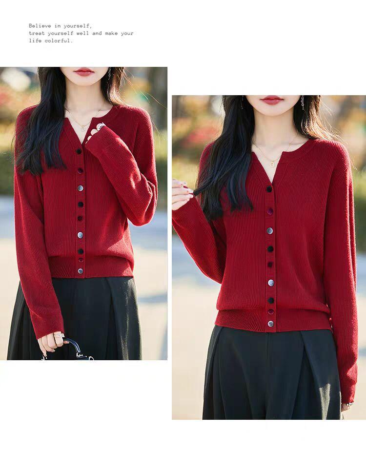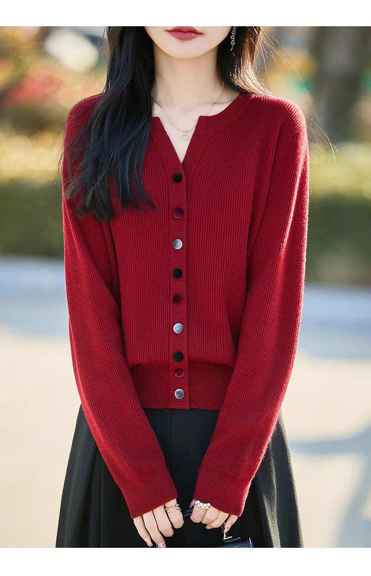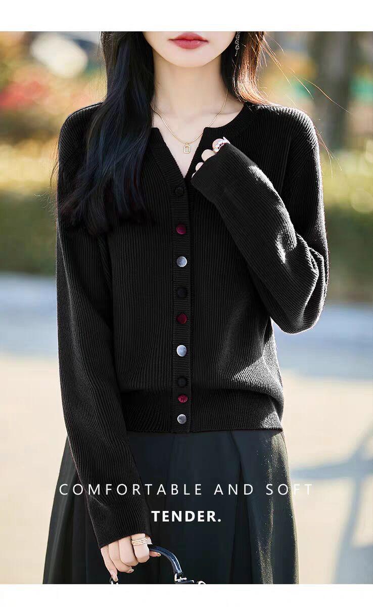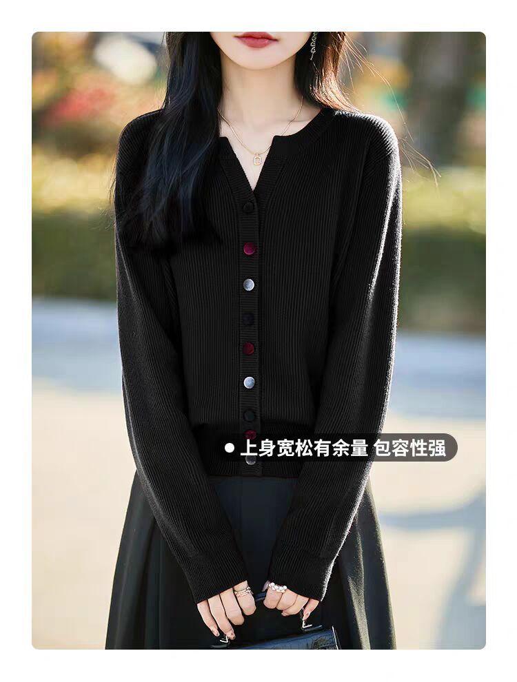 Suéter de Lana Tejido Cárdigan Abrigo para Mujer Primavera y Otoño Nuevo Cuello Redondo Casual Top de Lana Tejida
