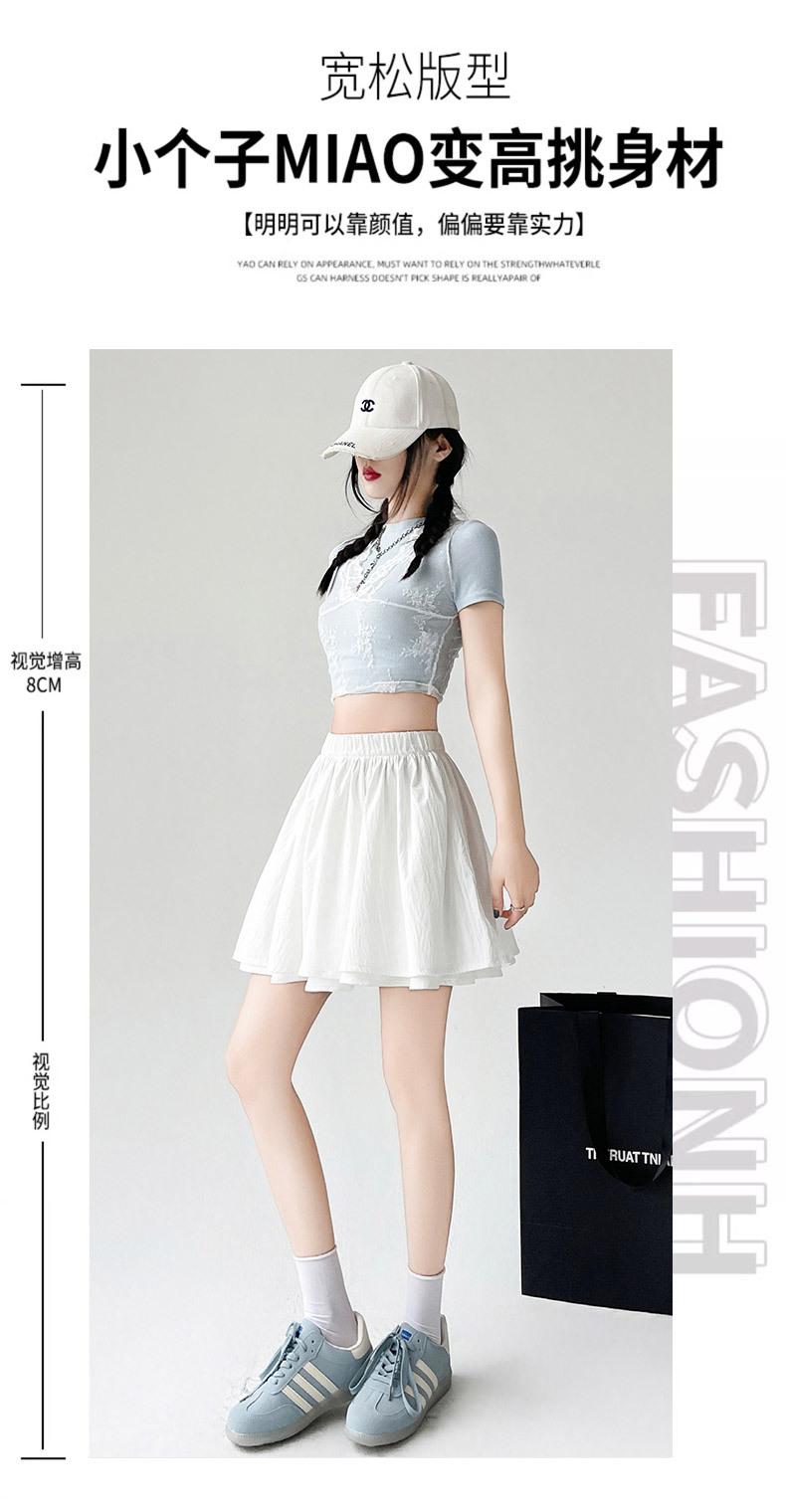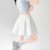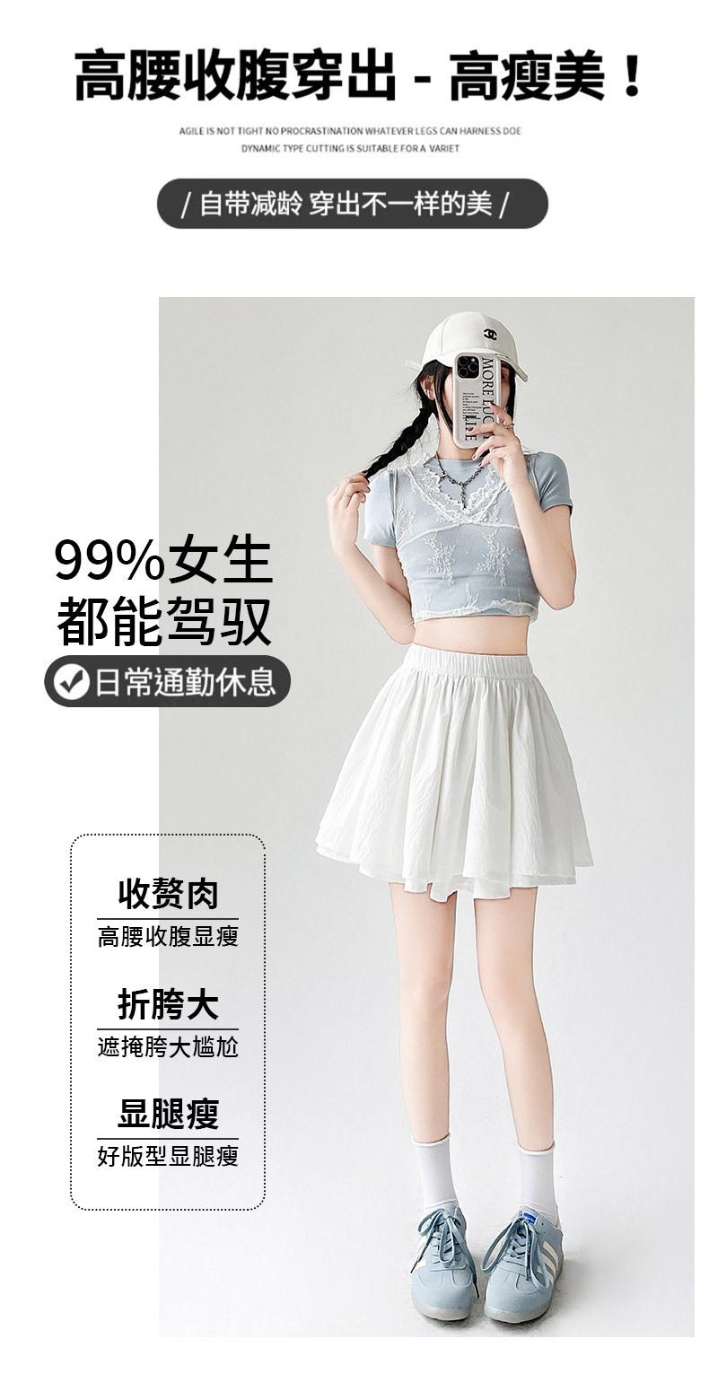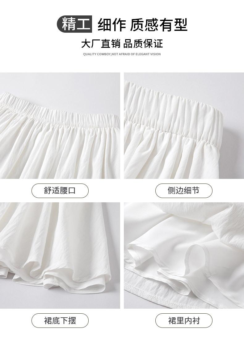 Falda Corta Blanca para Mujer Verano Delgada Cintura Alta Línea A Falda Tutú 2025 Nueva Falda Plisada Pequeña Antiexposición
