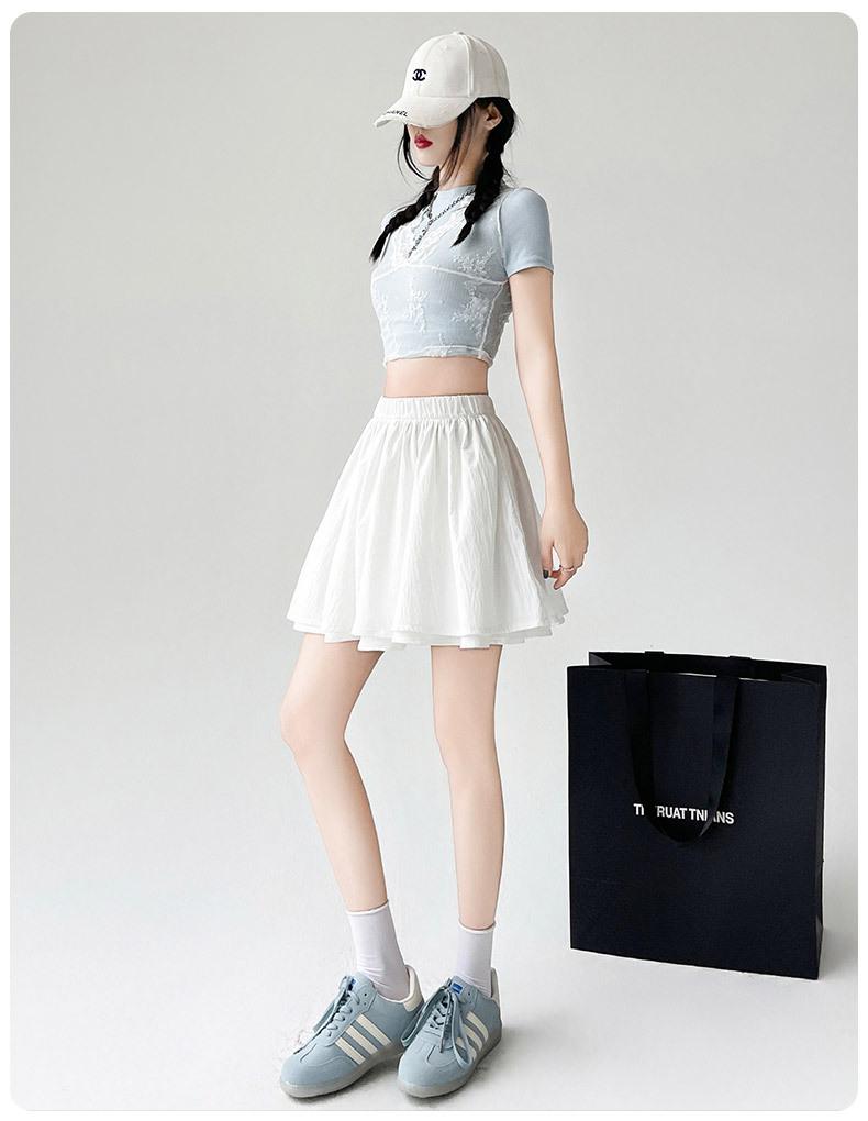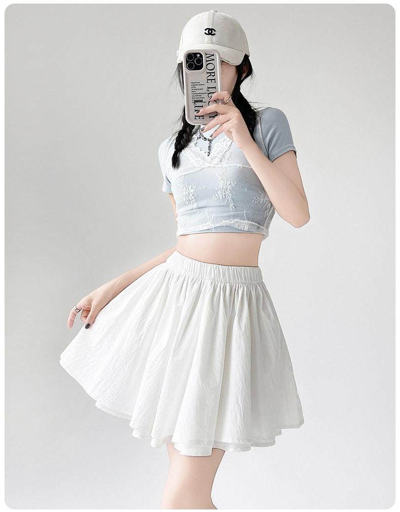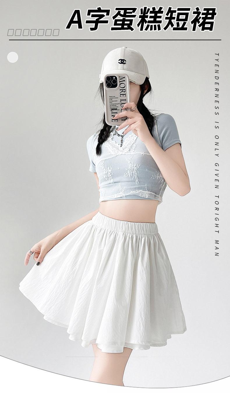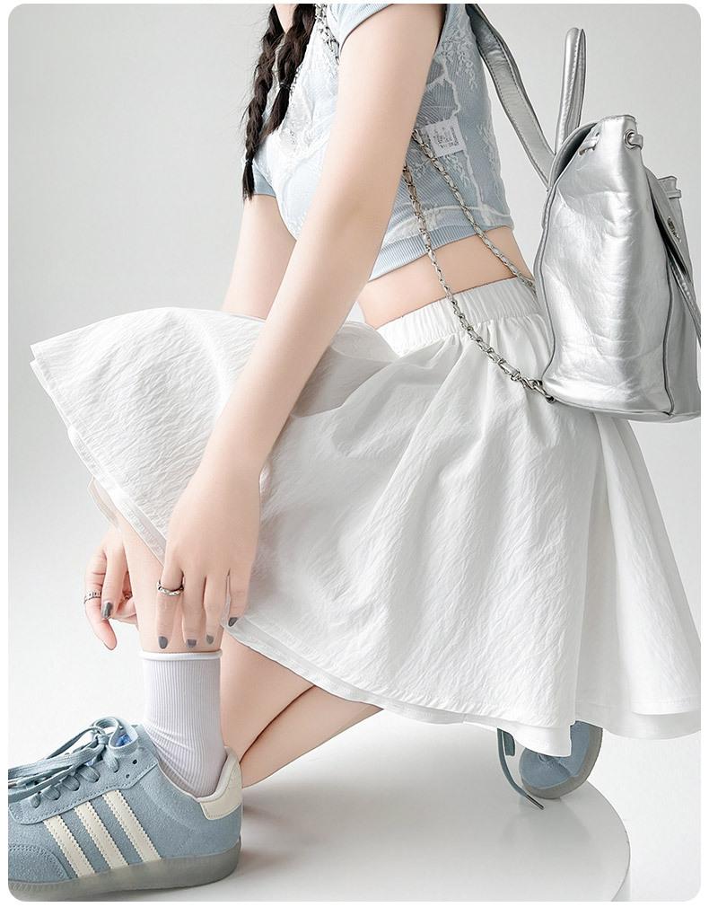 Falda Corta Blanca para Mujer Verano Delgada Cintura Alta Línea A Falda Tutú 2025 Nueva Falda Plisada Pequeña Antiexposición