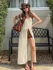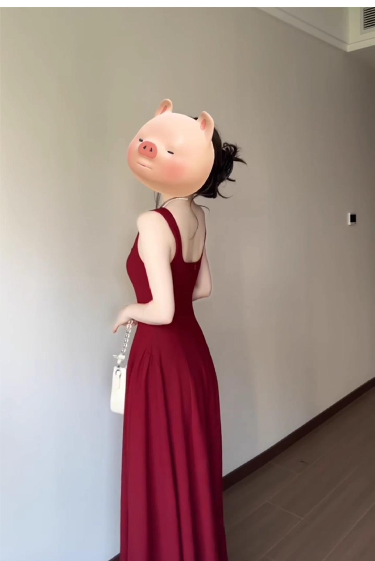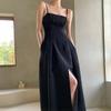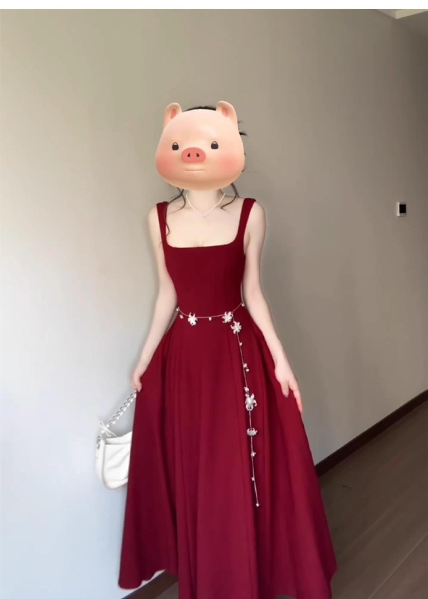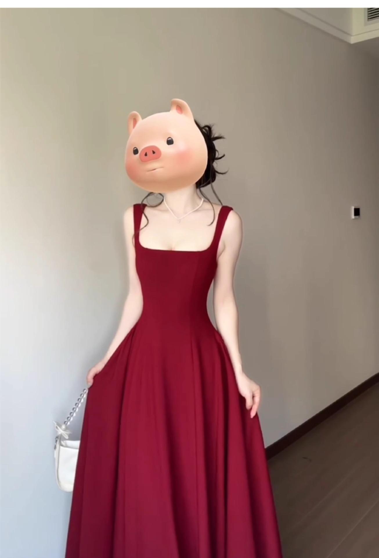 2025 Nuevo Estilo Francés de Alta Gama Vestido Rojo de Tirantes Estilo Hepburn para Mujer Verano Cintura Línea A Falda Larga