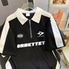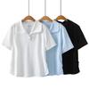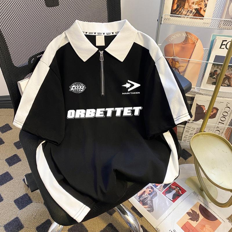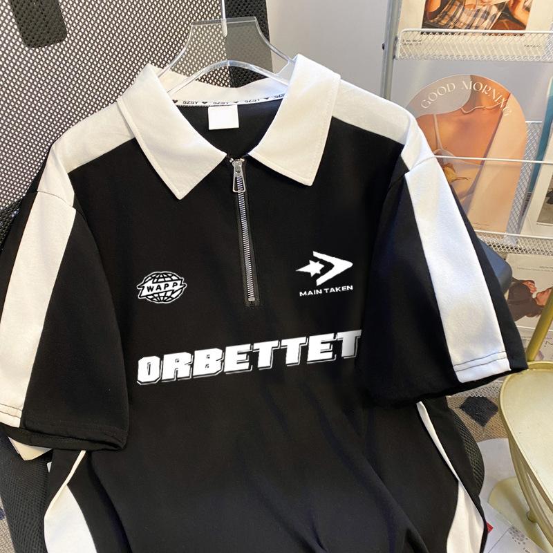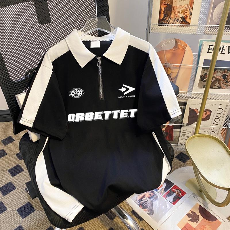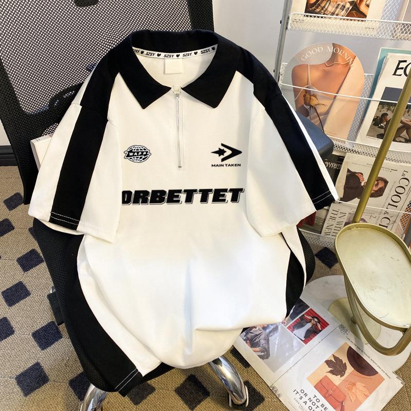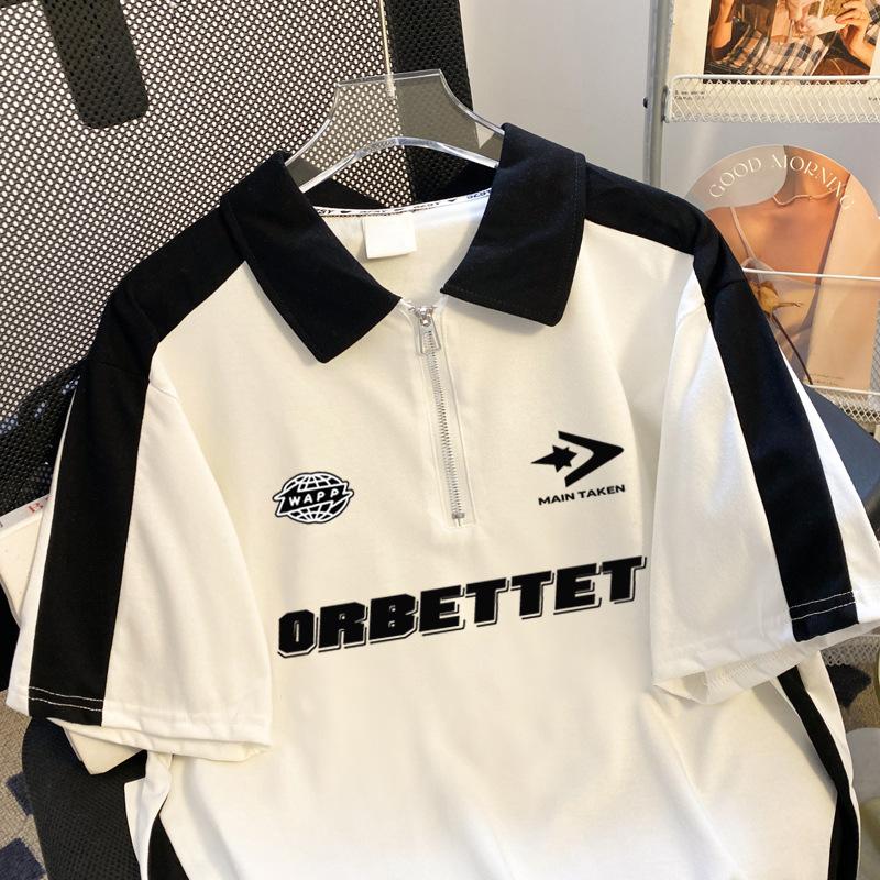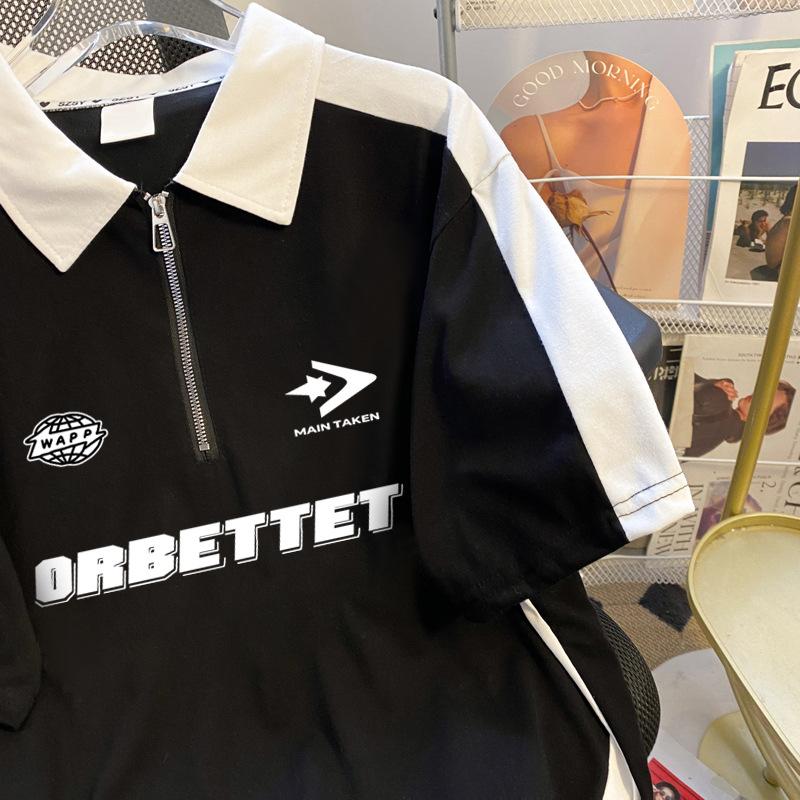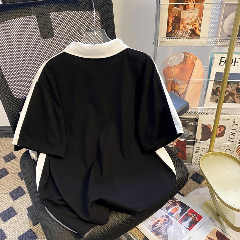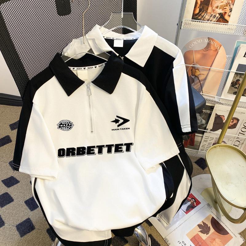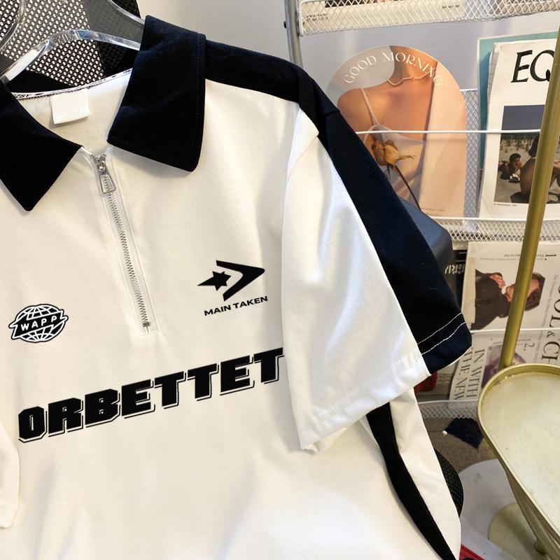 Talla Extra Grande 150kg Camiseta Polo con Cremallera de Manga Corta para Mujer Nuevo Primavera y Verano Suelto Único Chic Top Versátil