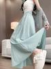 Falda Plisada Yamamoto de Seda de Hielo para Mujer Verano Estilo Coreano Cintura Alta Línea A Falda Paraguas Larga Falda Holgada con Caída Cubre-carne