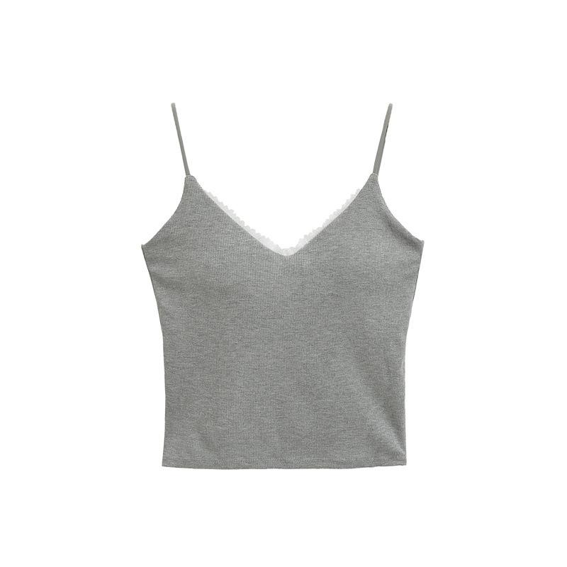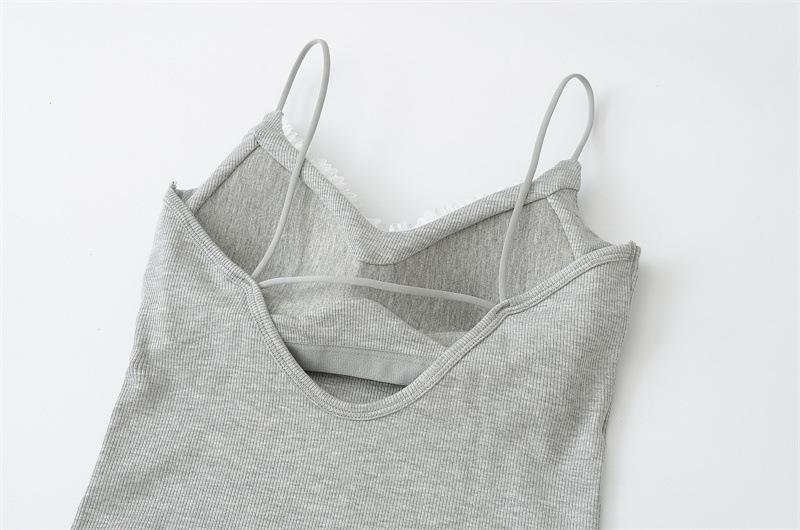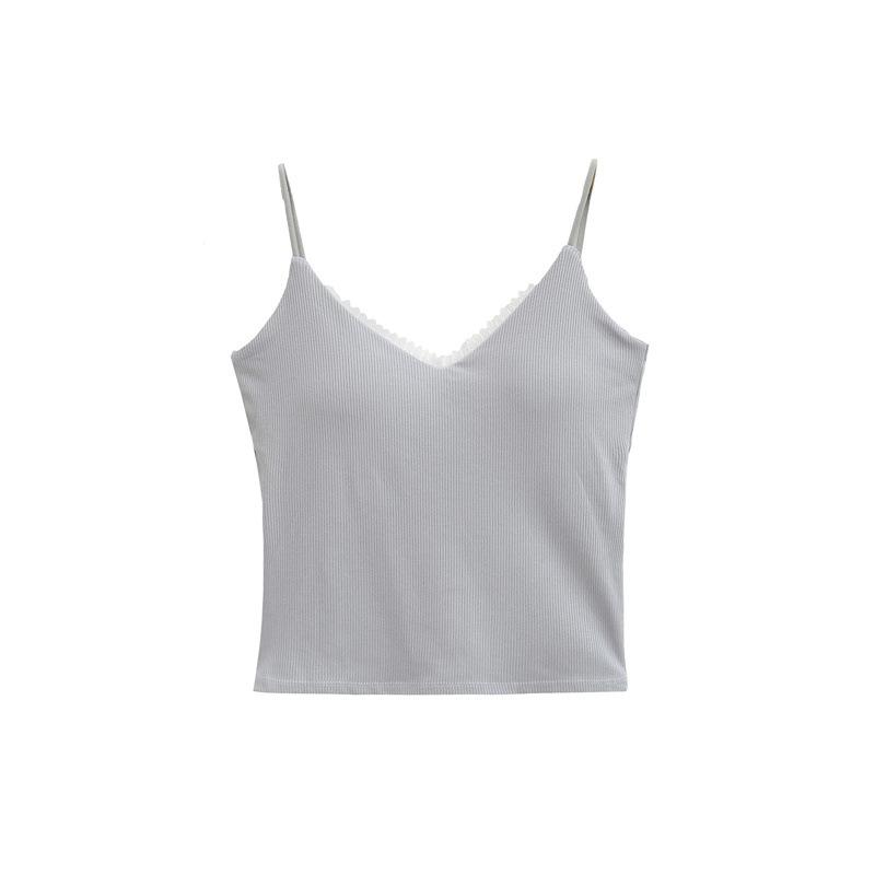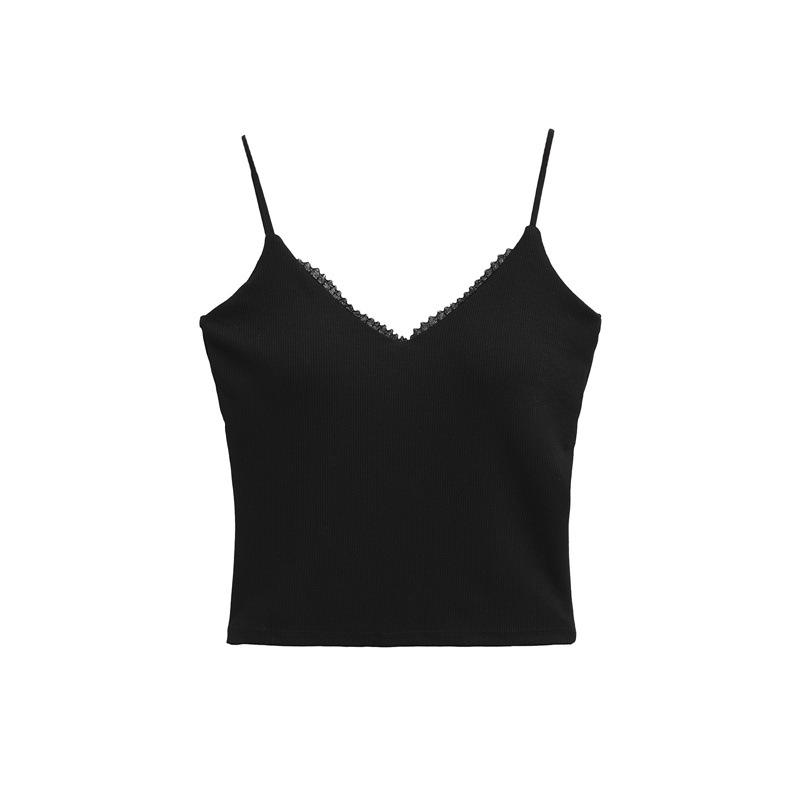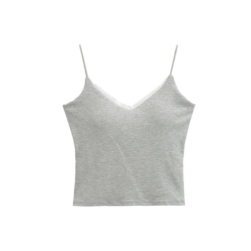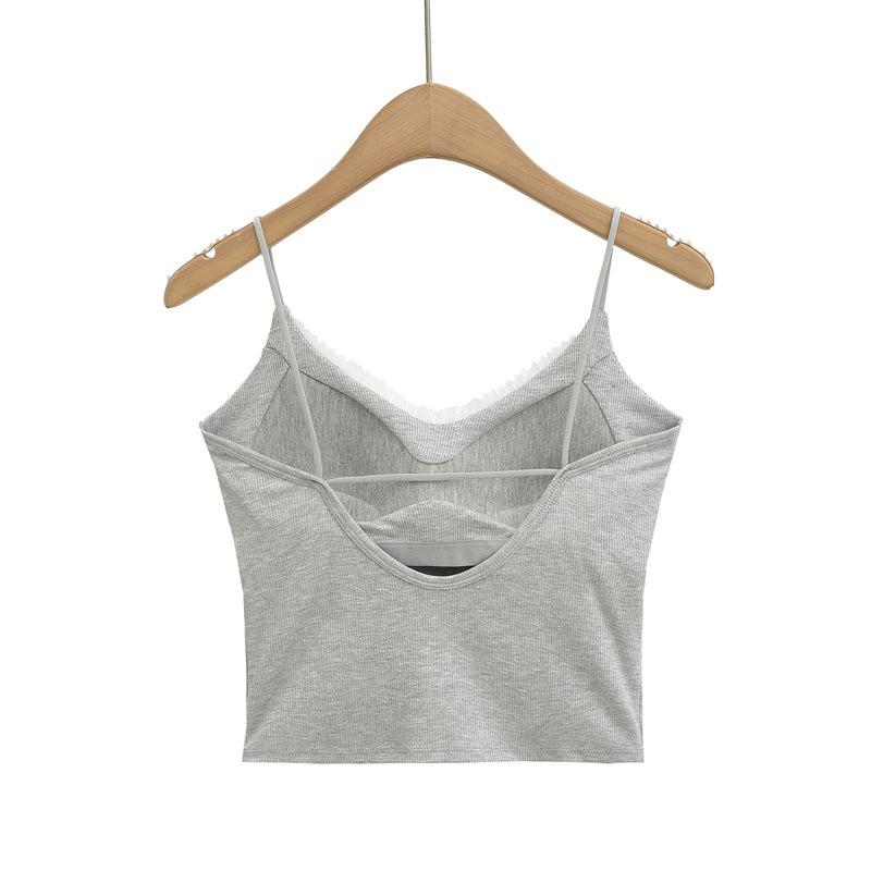 Estilo Deseo Puro Dulce y Picante Camisola de Encaje con Cuello en V y Almohadilla en el Pecho, Top Versátil de Corte Ajustado para Chica Caliente para Mujer en Verano