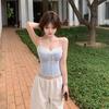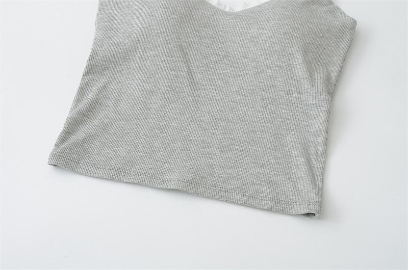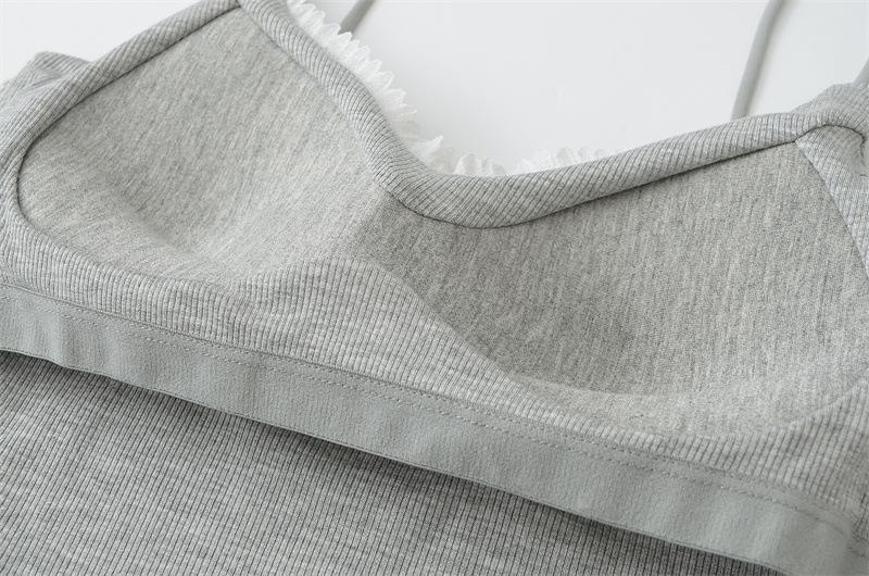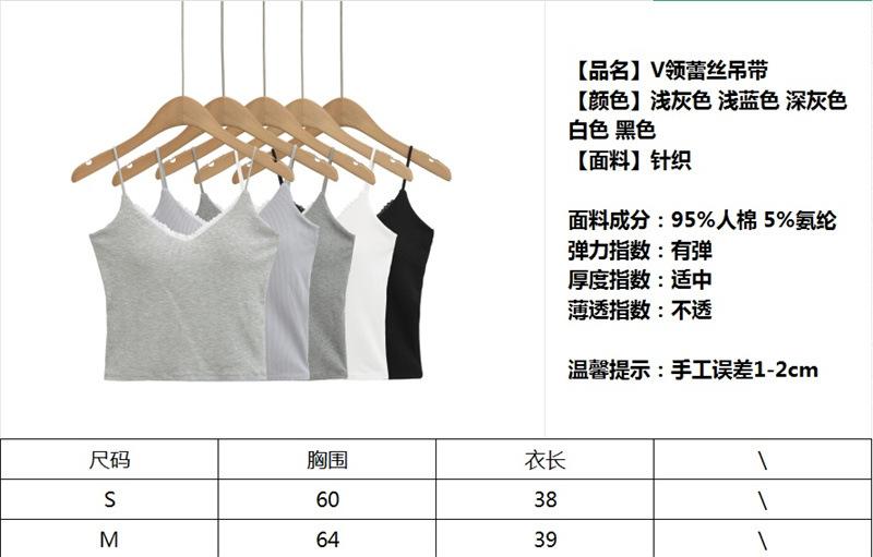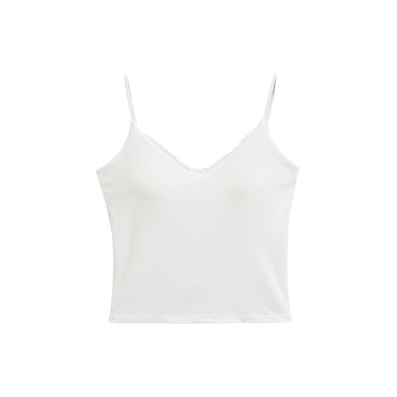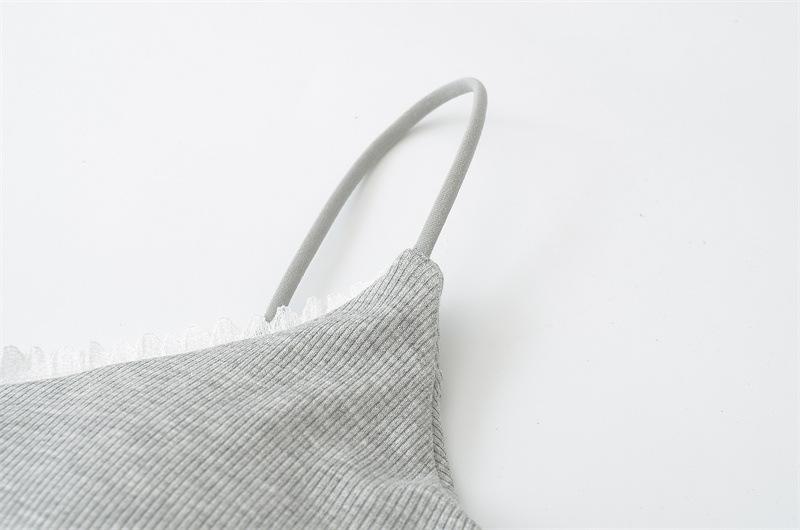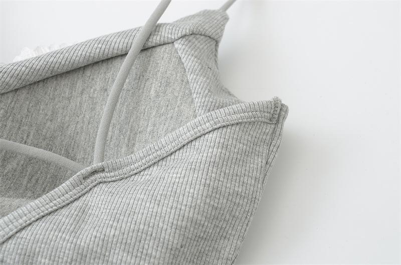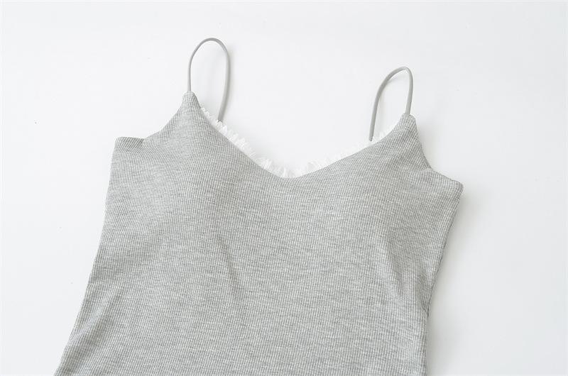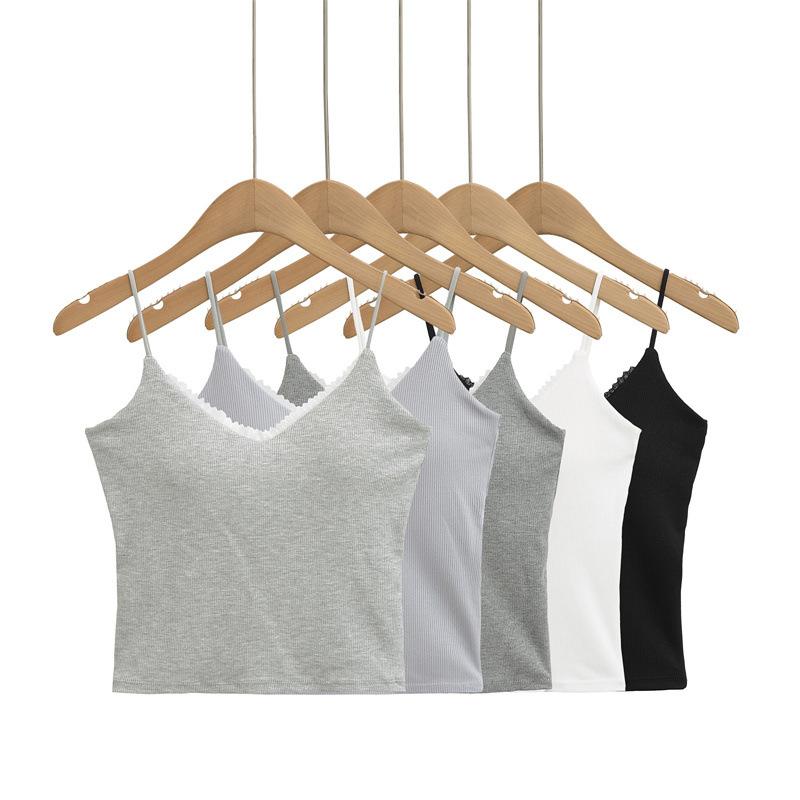 Estilo Deseo Puro Dulce y Picante Camisola de Encaje con Cuello en V y Almohadilla en el Pecho, Top Versátil de Corte Ajustado para Chica Caliente para Mujer en Verano