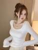Otoño Puro Deseo Sexy Ajustado Adelgazante Cintura Ceñida Cuello Redondo Manga Larga Camiseta Spice Girls Nicho Ins Top de Moda Único