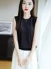 Novo Suéter Solto Feminino Gola Redonda Malha Top Acetato Interno Sem Mangas Camisa Base Versátil