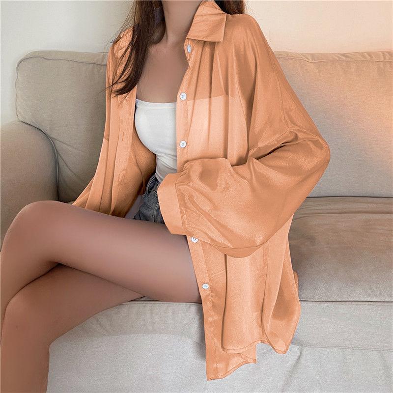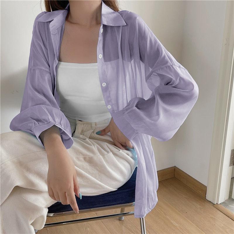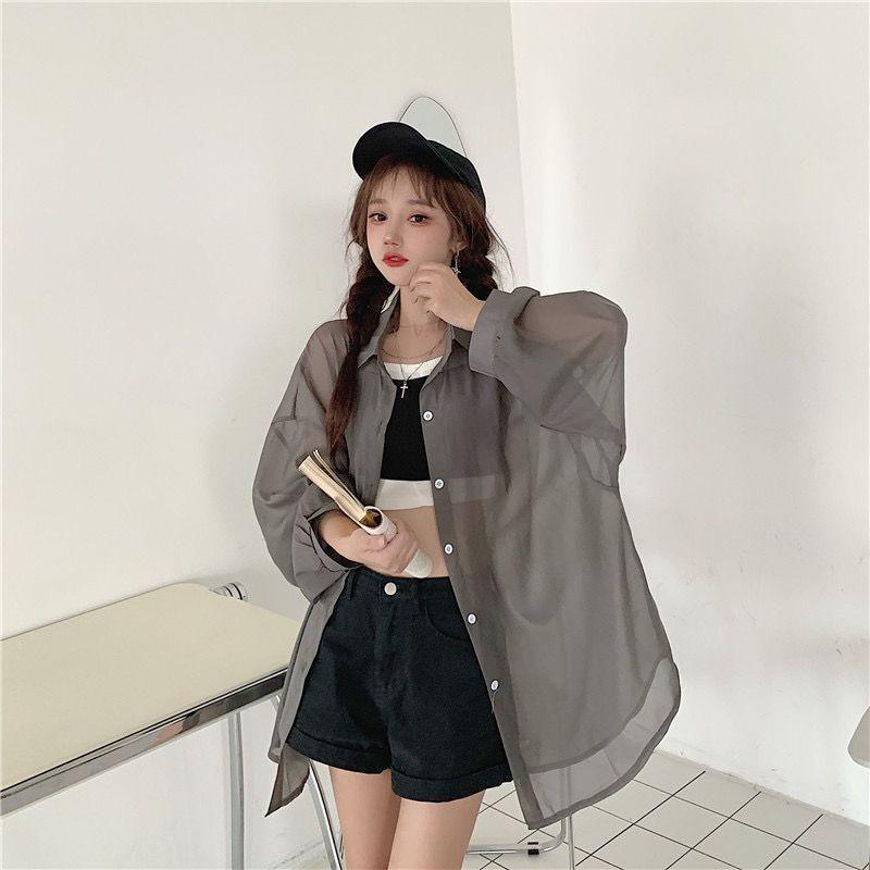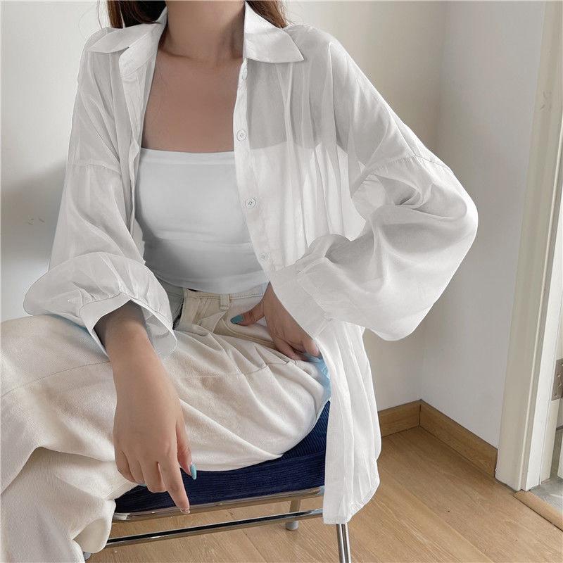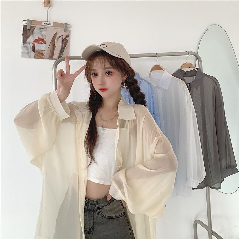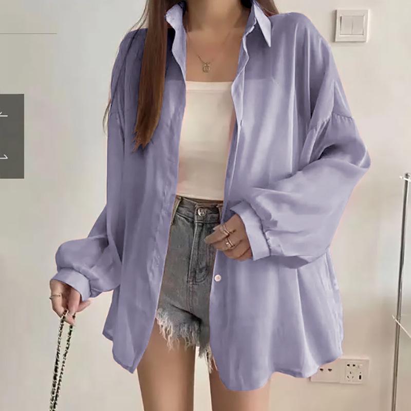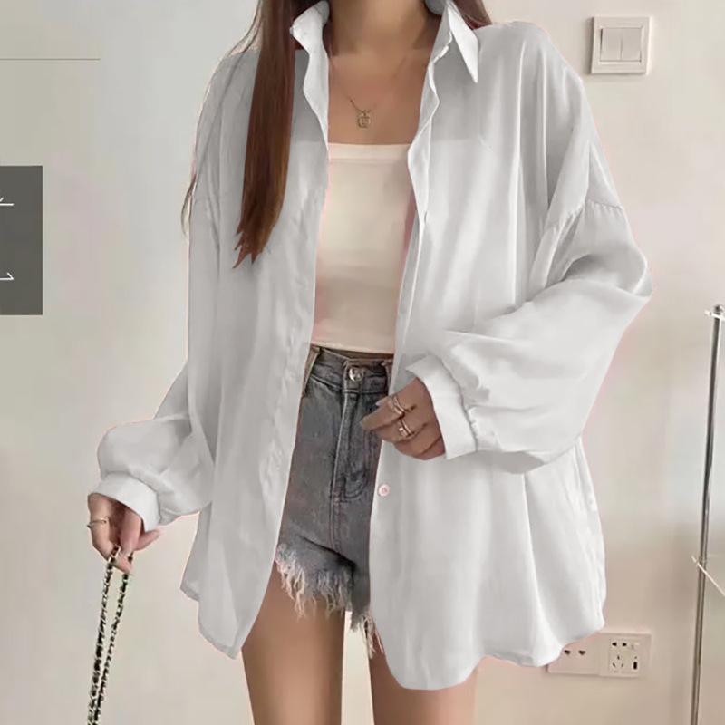 Camisa Protectora Solar Chaqueta Fina de Manga Larga para Mujer Camisa Protectora Solar Verano Nuevo Estilo Chic Casual Holgada Comercio Exterior Moderna