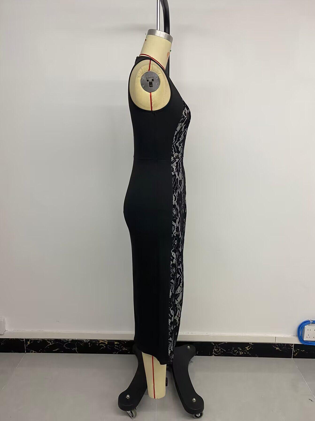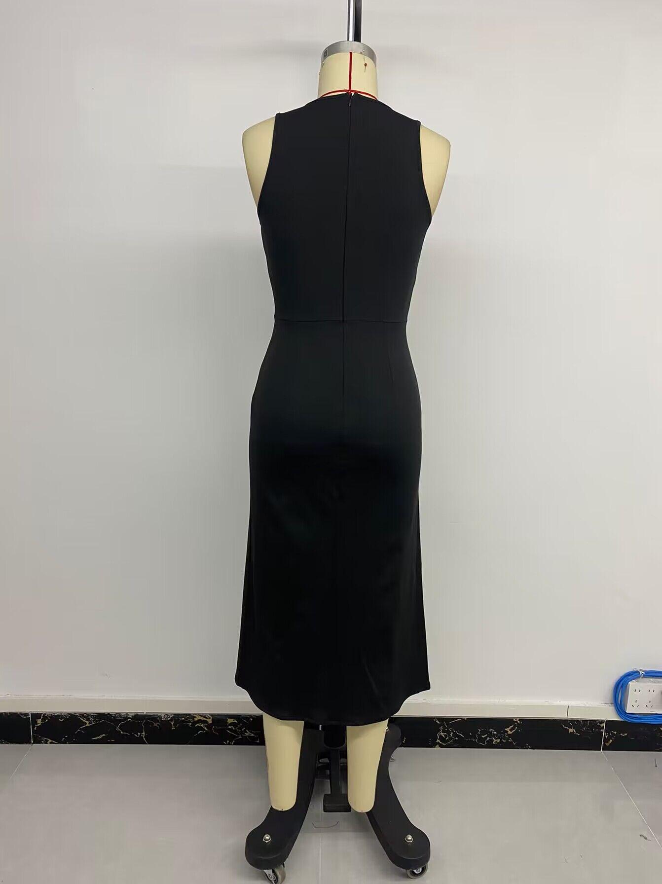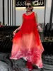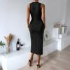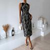 2024 Amazon Verano para Mujer Más Vendido Nuevo Temperamento Elegante Cintura Alta Sin Mangas Estampado Abertura Vestido Largo