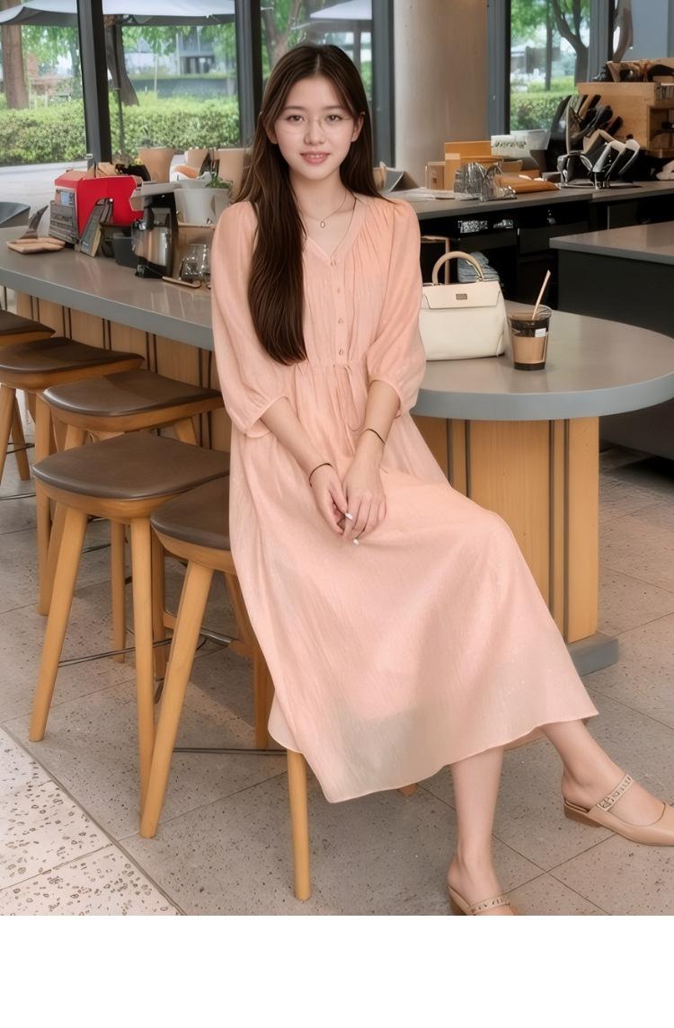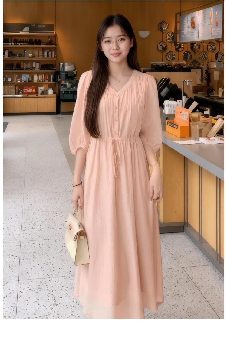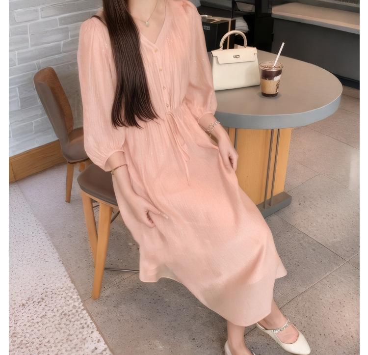 Vestido Camisero Elegante Estilo Coreano de Cintura Ajustada con Cordón para Mujer Verano 2025 Nuevo Casual Vestido Largo Moda Elegante