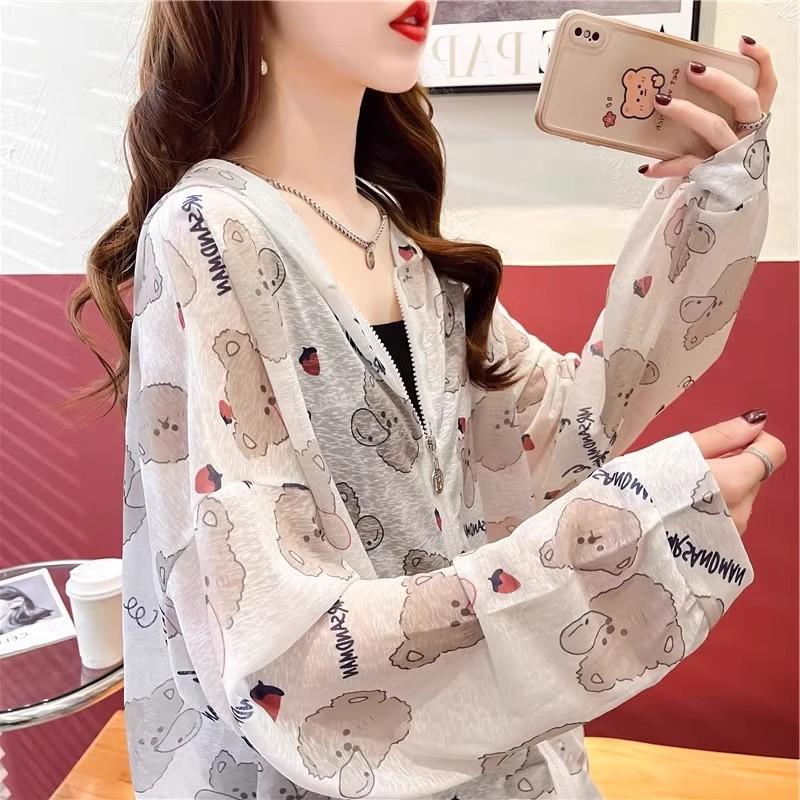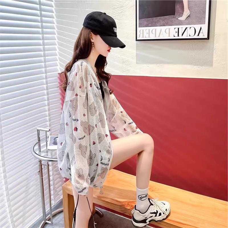 Ropa delgada de seda de hielo colorida para protección solar para mujer, verano, moda transfronteriza, nueva, holgada, talla grande, transpirable, chaqueta de ropa para protección solar