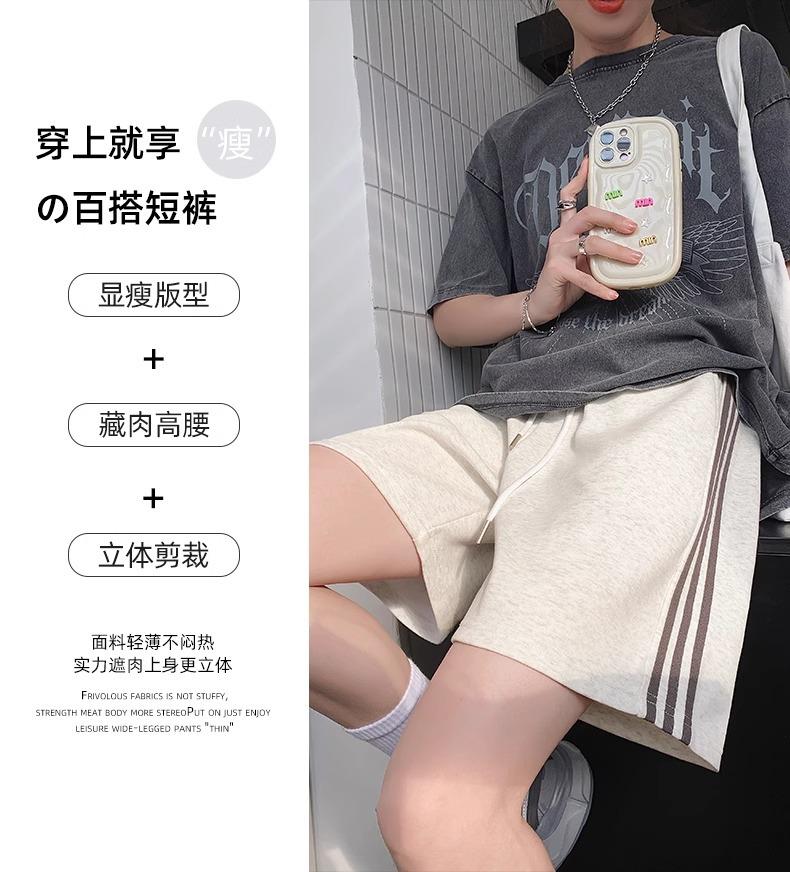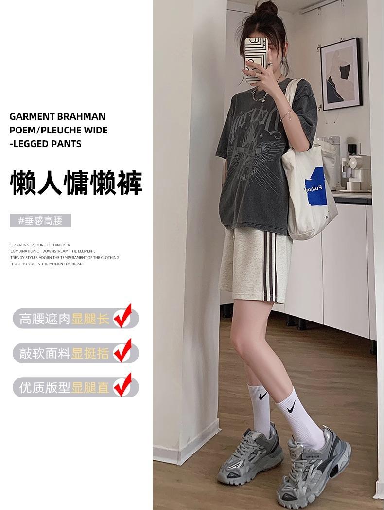 Shorts Deportivos Casuales Grises para Mujer 2025 Nuevo Verano Delgados Pantalones Cinco Puntos Cintura Alta Adelgazantes Sueltos Pierna Ancha Pantalones Medianos