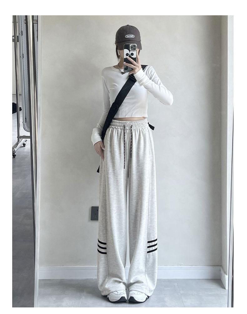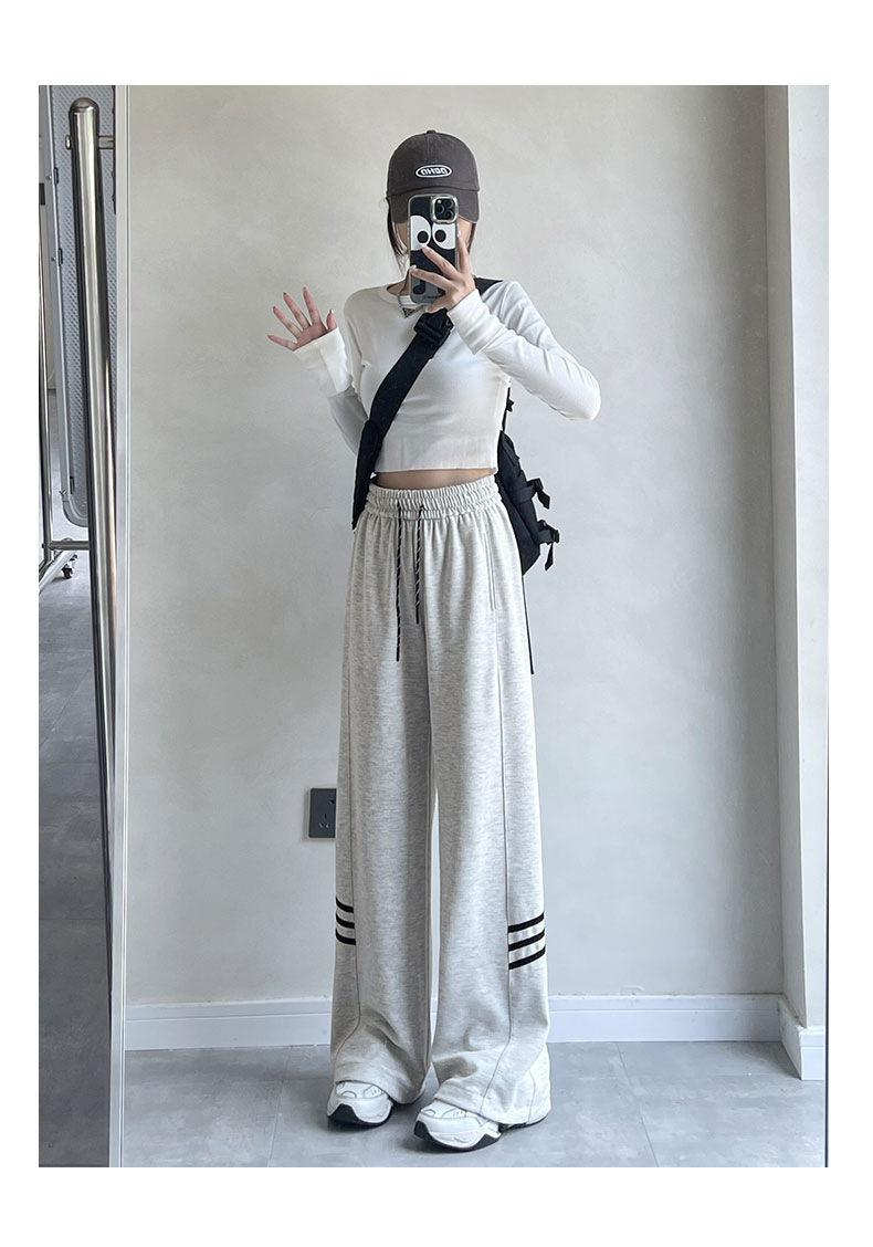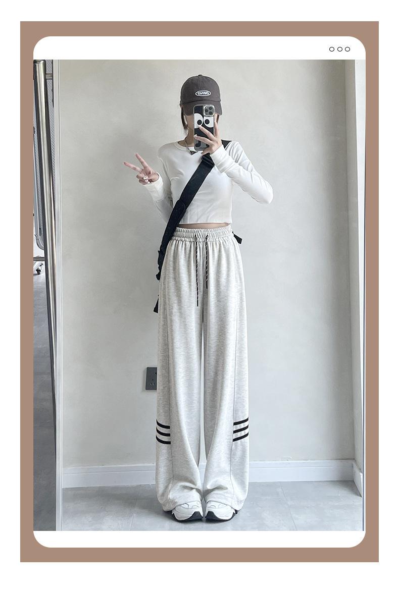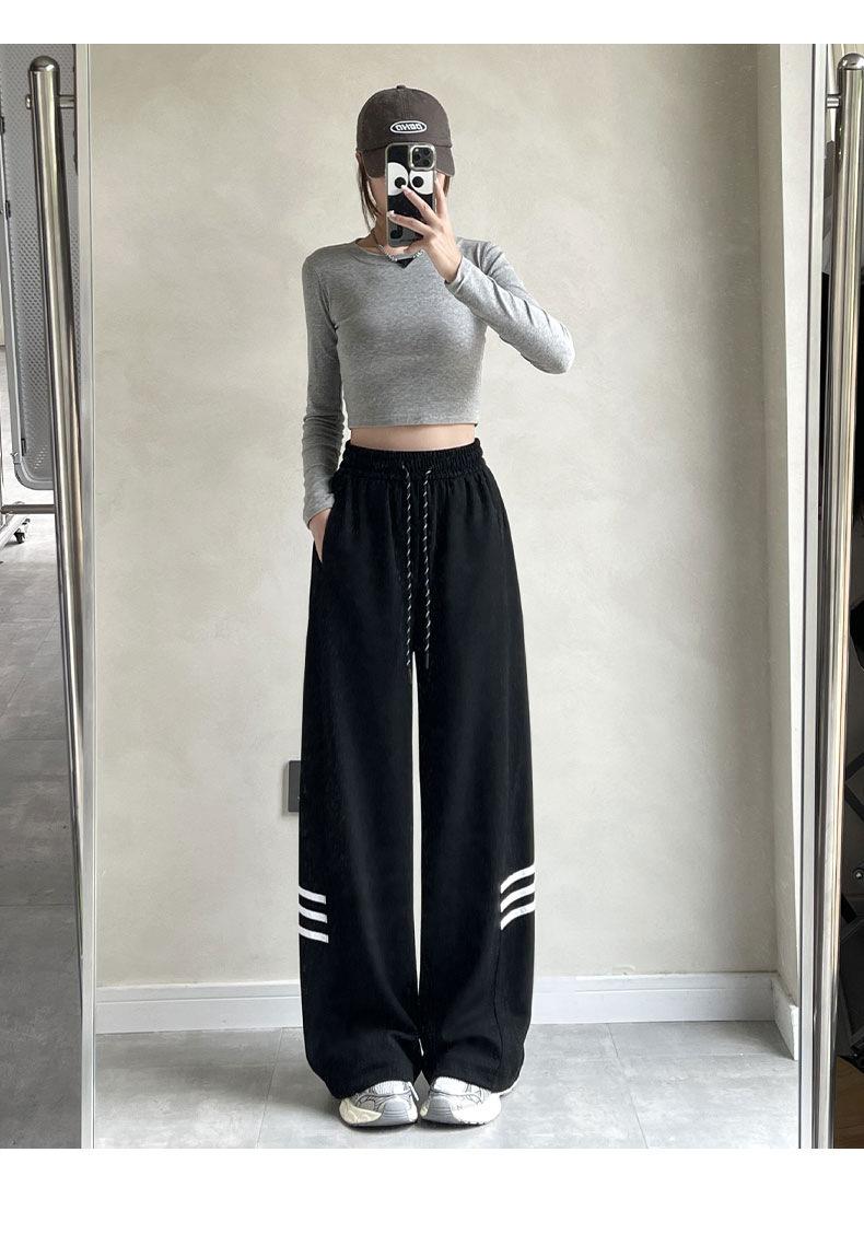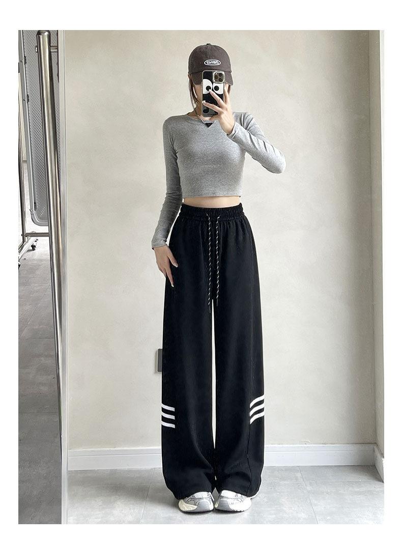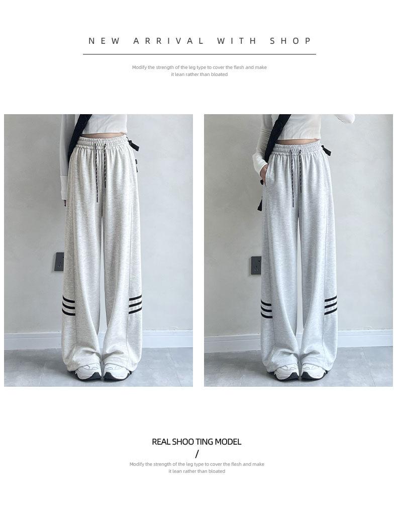Pantalones Casuales de Tres Rayas con Empalme Lateral para Mujer Primavera y Otoño 2025 Nuevo Estudiante Estilo Coreano Deportivos Rectos