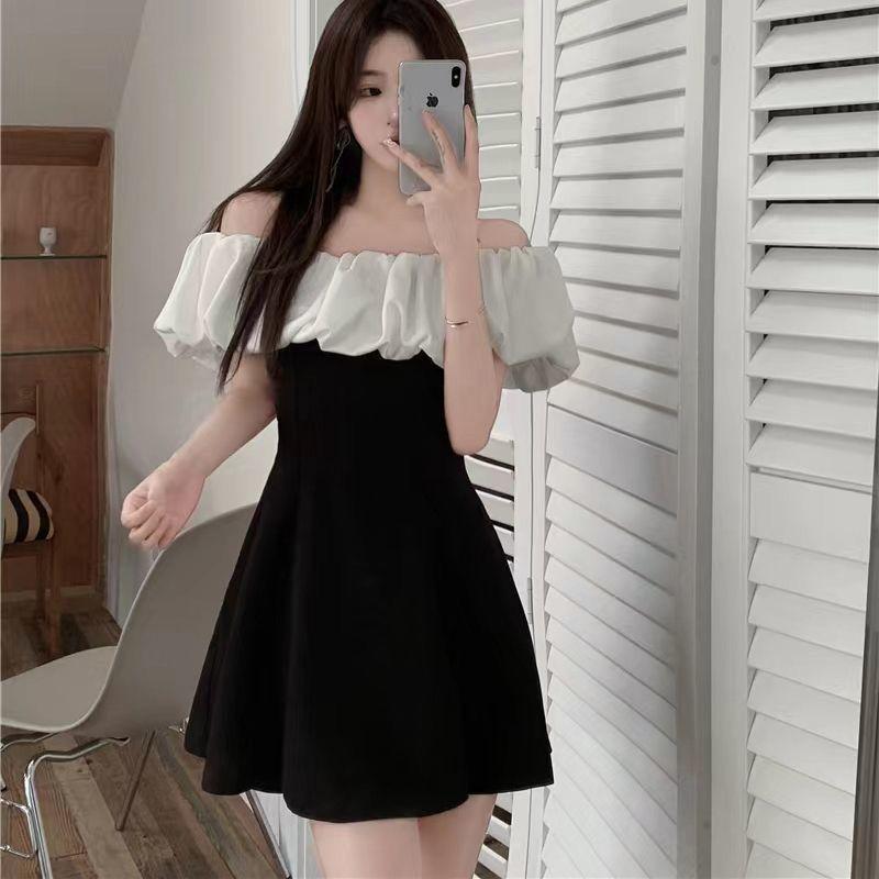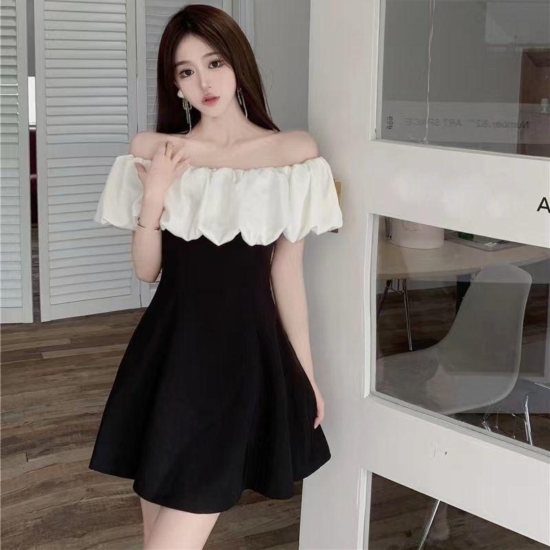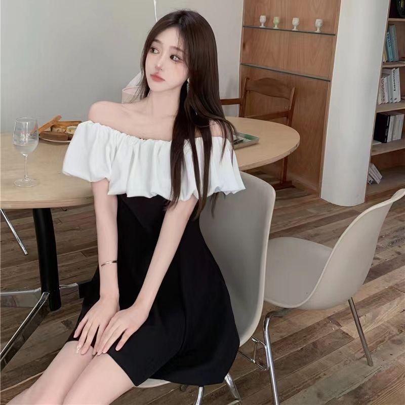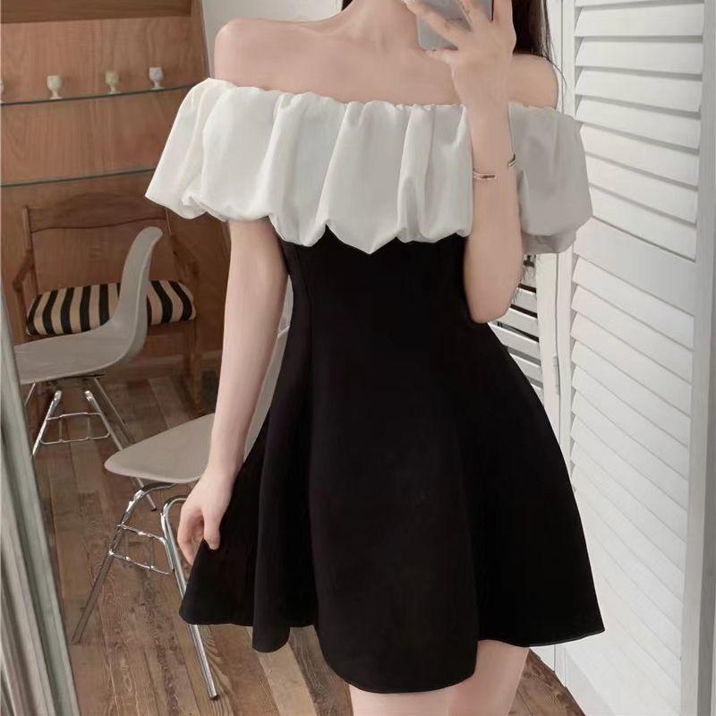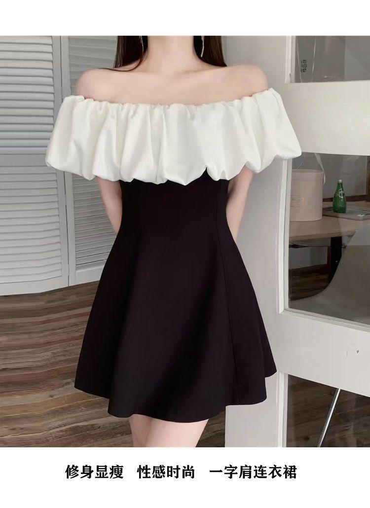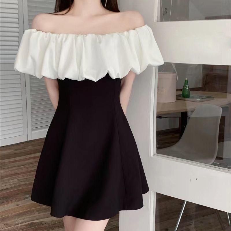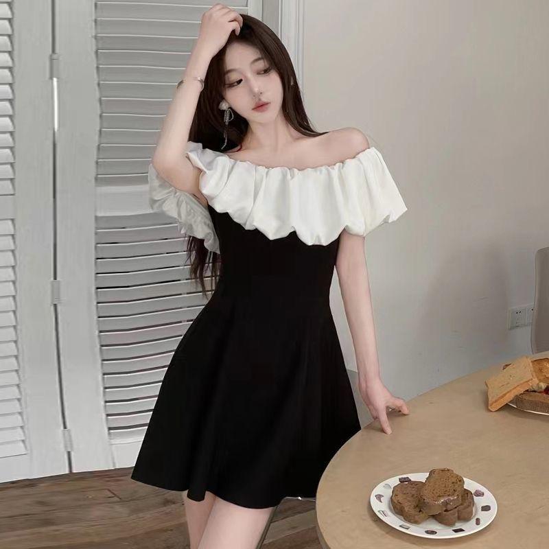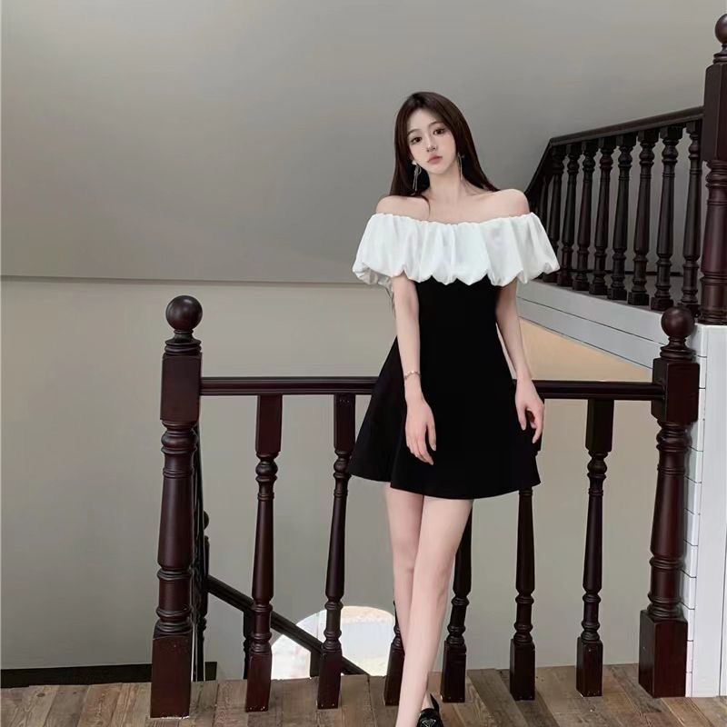 Vestido Retro Francés con Hombros Descubiertos Diseño Estilo Hepburn Nicho Vestido de Mujer 2025 Nuevo Vestido Corto de Verano