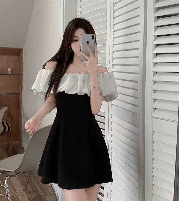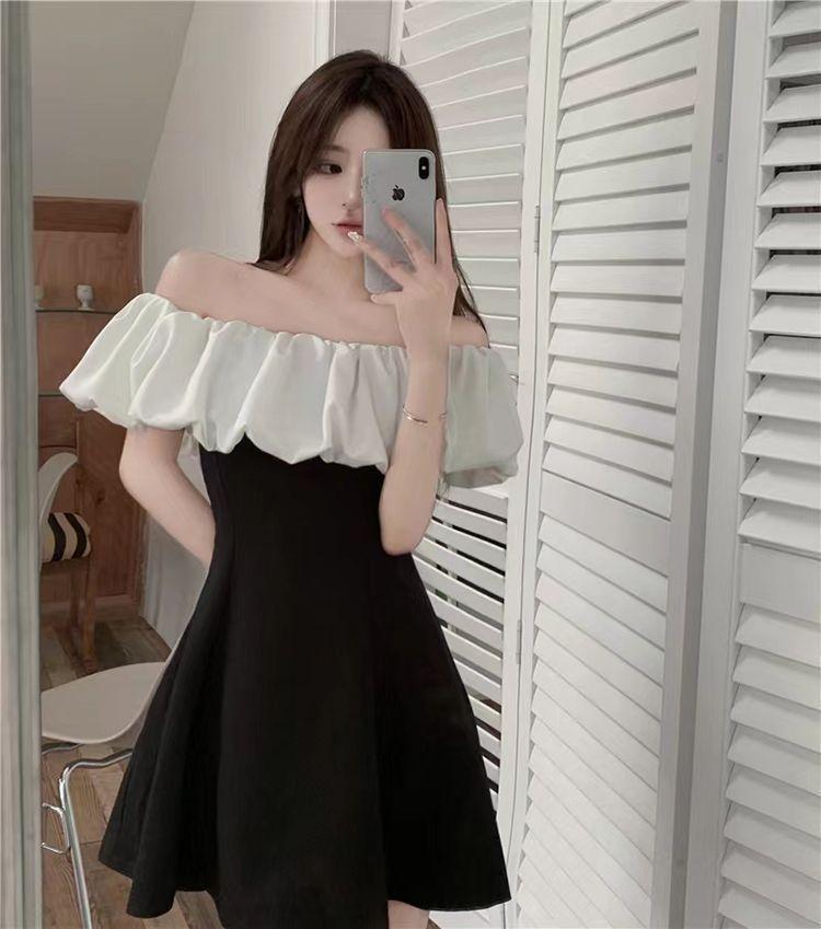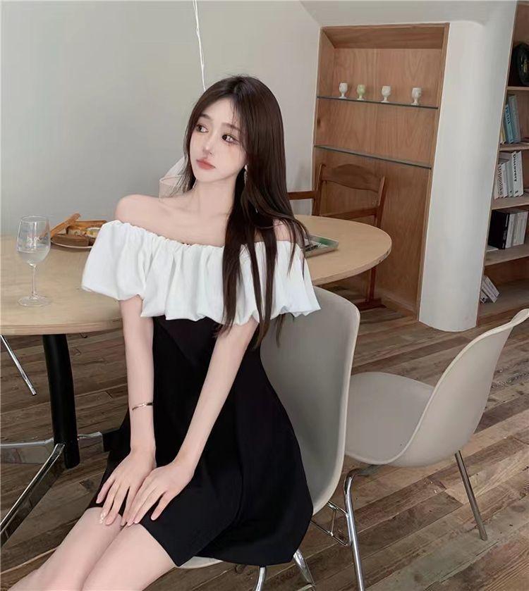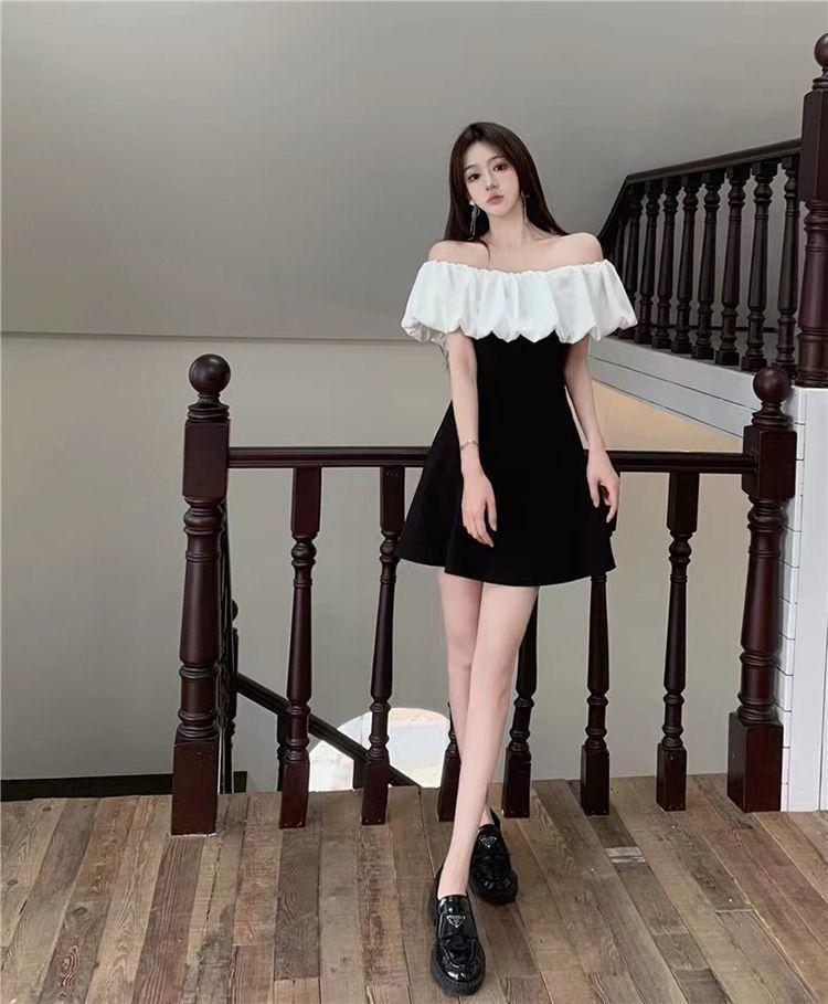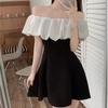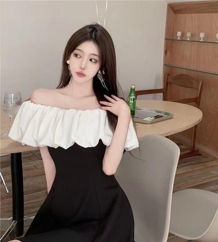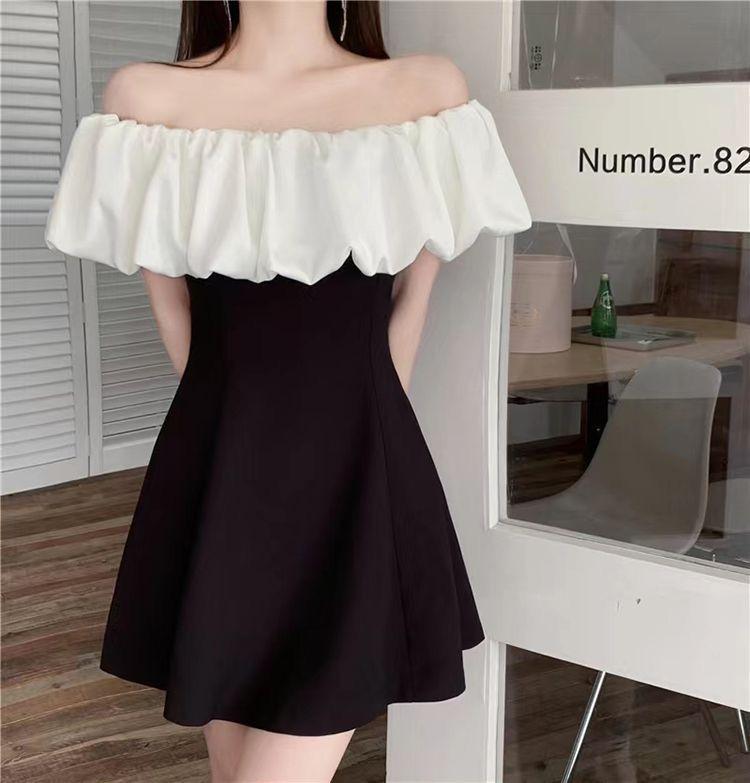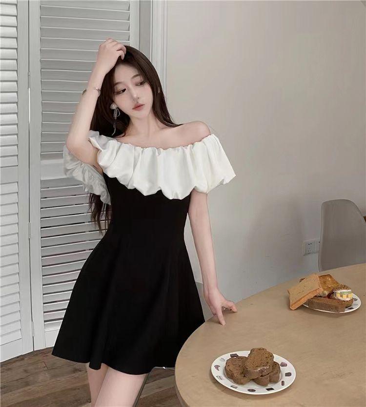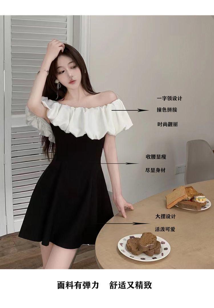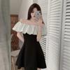 Vestido Retro Francés con Hombros Descubiertos Diseño Estilo Hepburn Nicho Vestido de Mujer 2025 Nuevo Vestido Corto de Verano