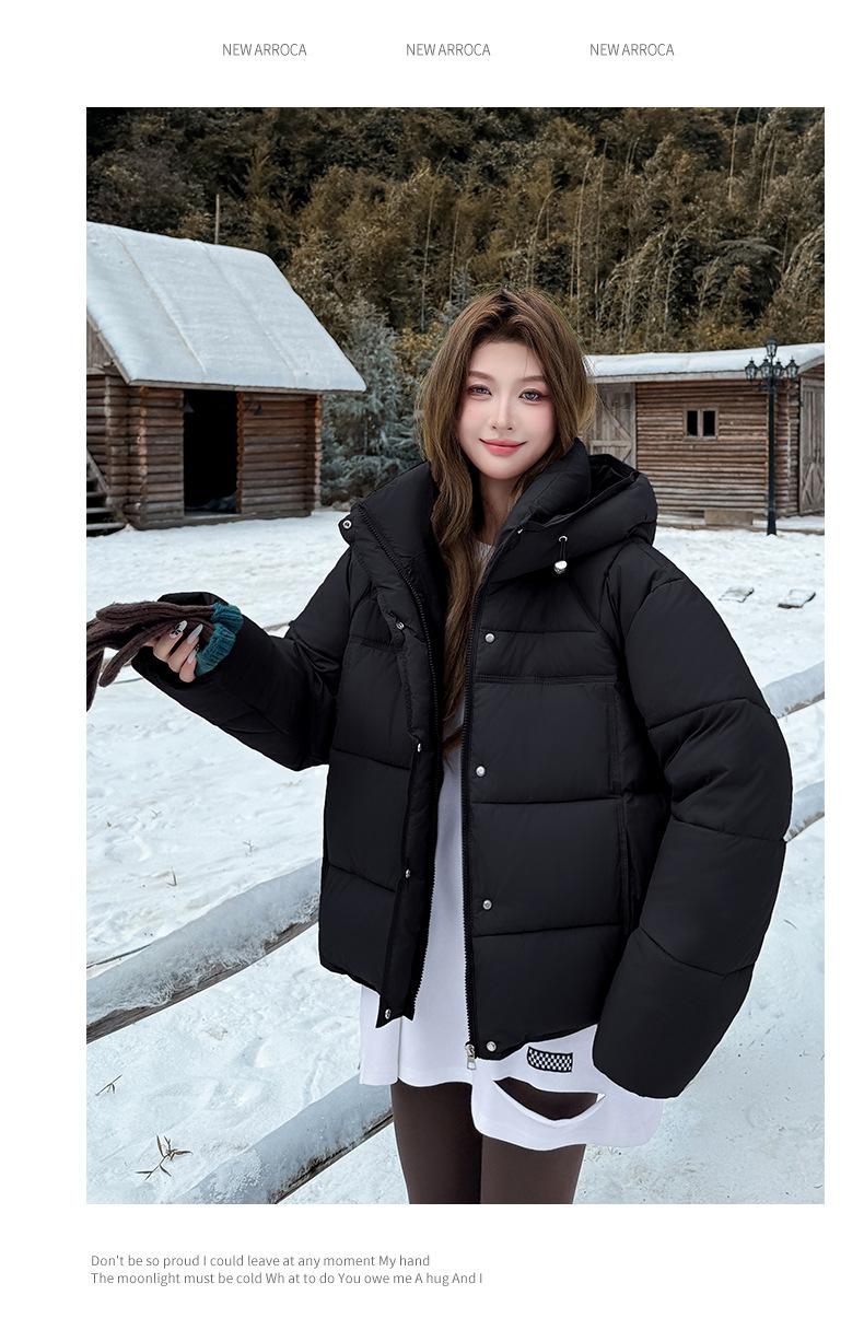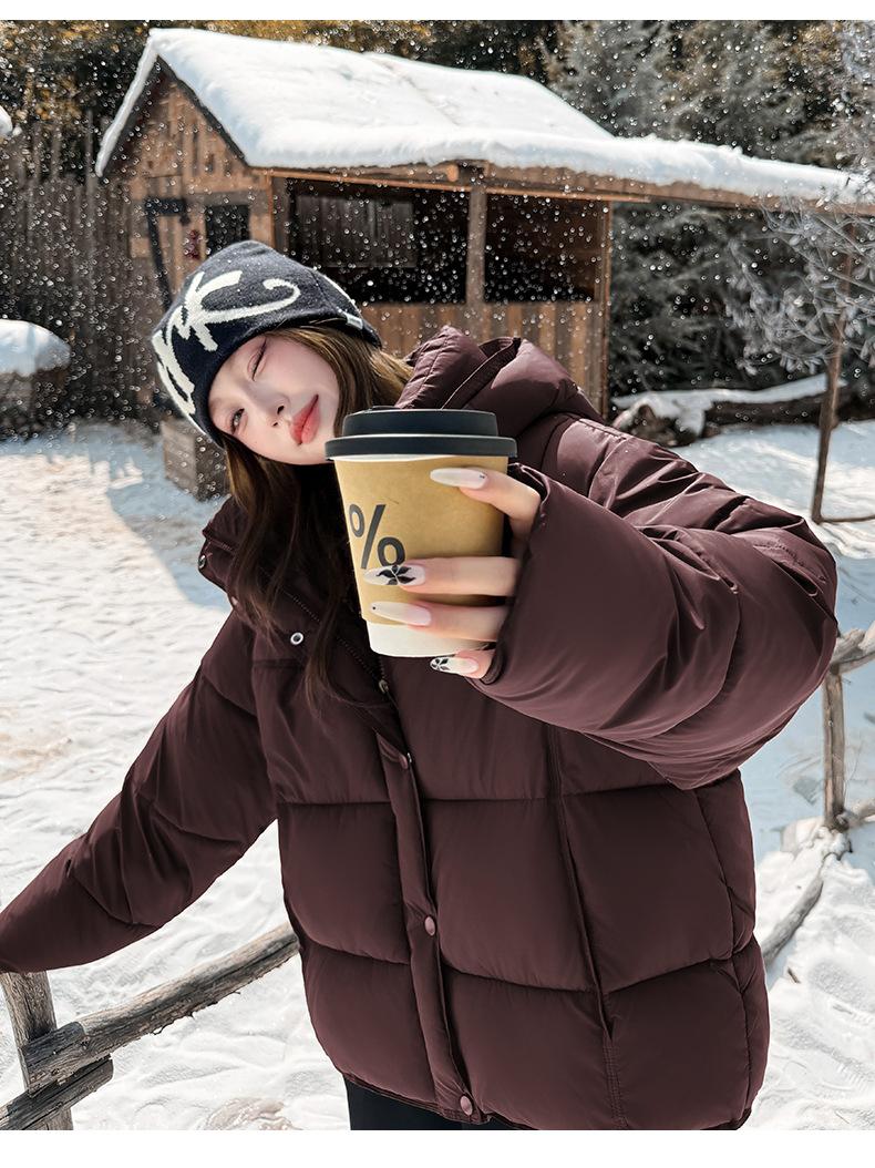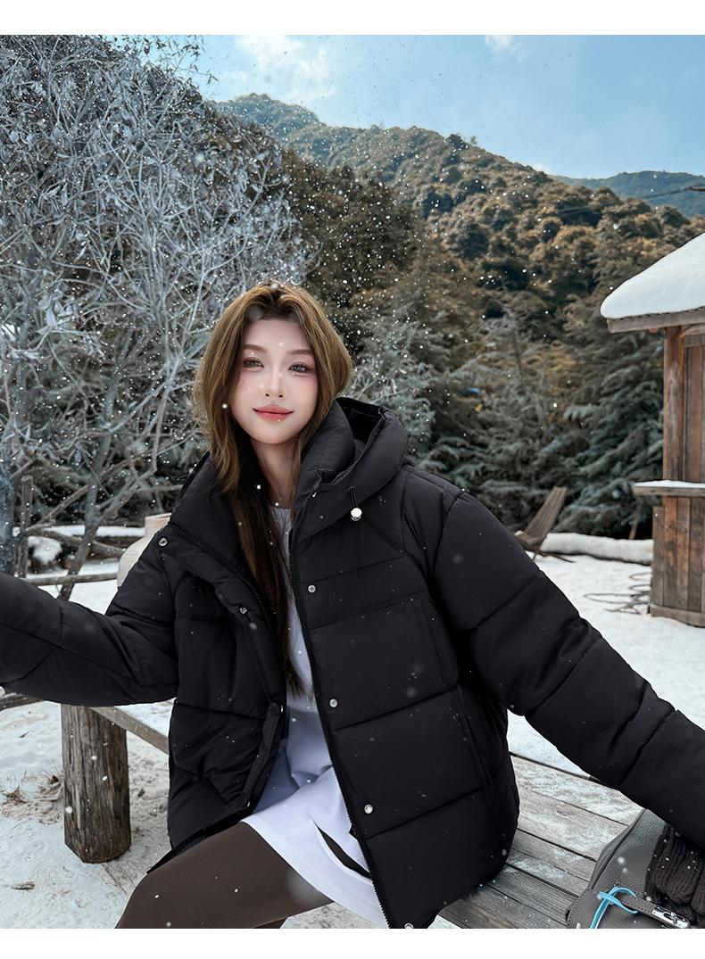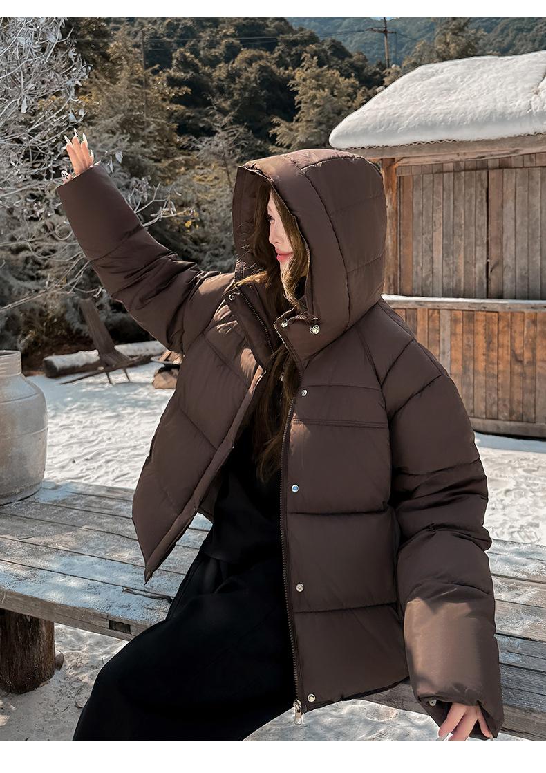 Chaqueta de Algodón con Capucha 2025 Invierno Nuevo Estilo Coreano Holgada para Mujer Delgada y Elegante Chaqueta Corta para Personas Pequeñas para Verse Más Altas y Cálida