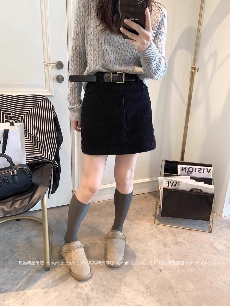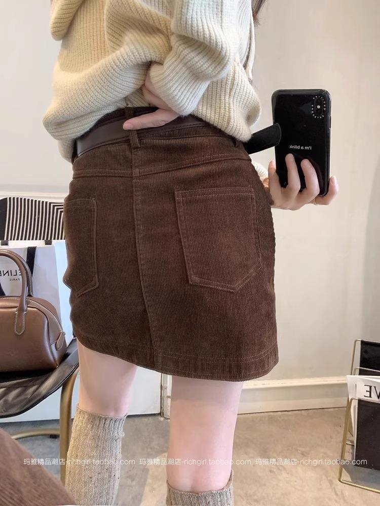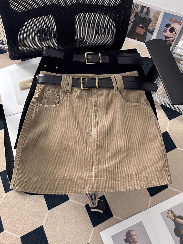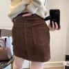 Falda de Pana Estilo Coreano para Mujer Otoño e Invierno 2025 Nueva Aspecto Adelgazante de Cintura Alta Moda Petite Falda Corta Versátil Ajustada a las Caderas