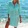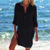 Venta al por mayor Europea y Americana transfronteriza arrugada bolsillo de tela blusa de playa estilo camisa vacaciones de playa protector solar cubierta de bikini