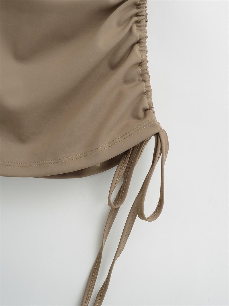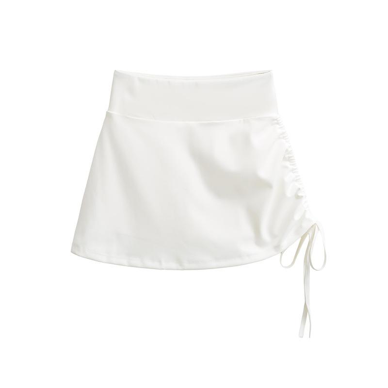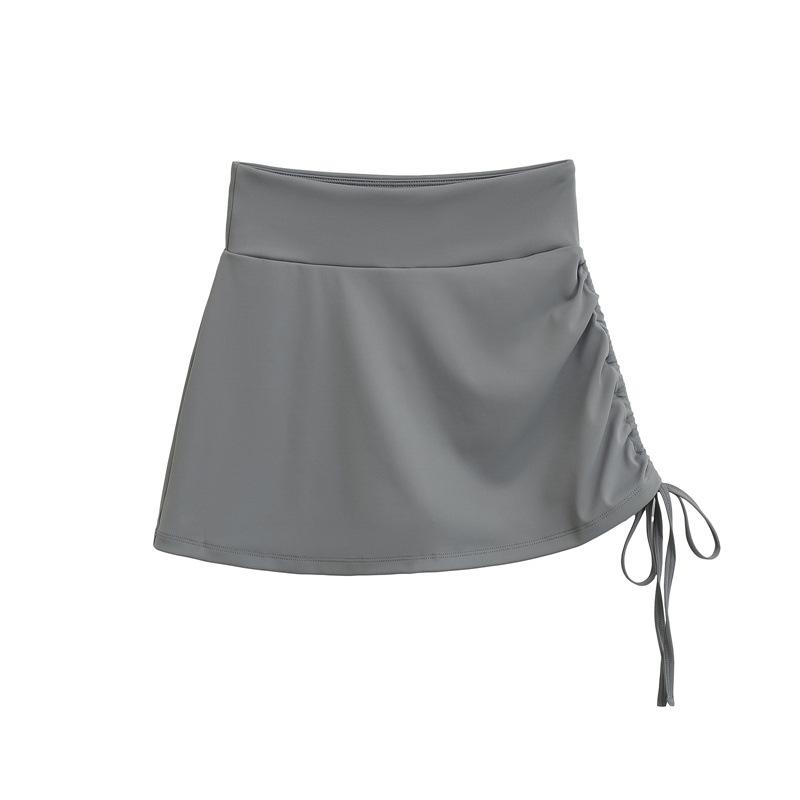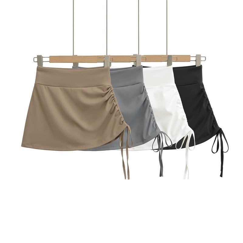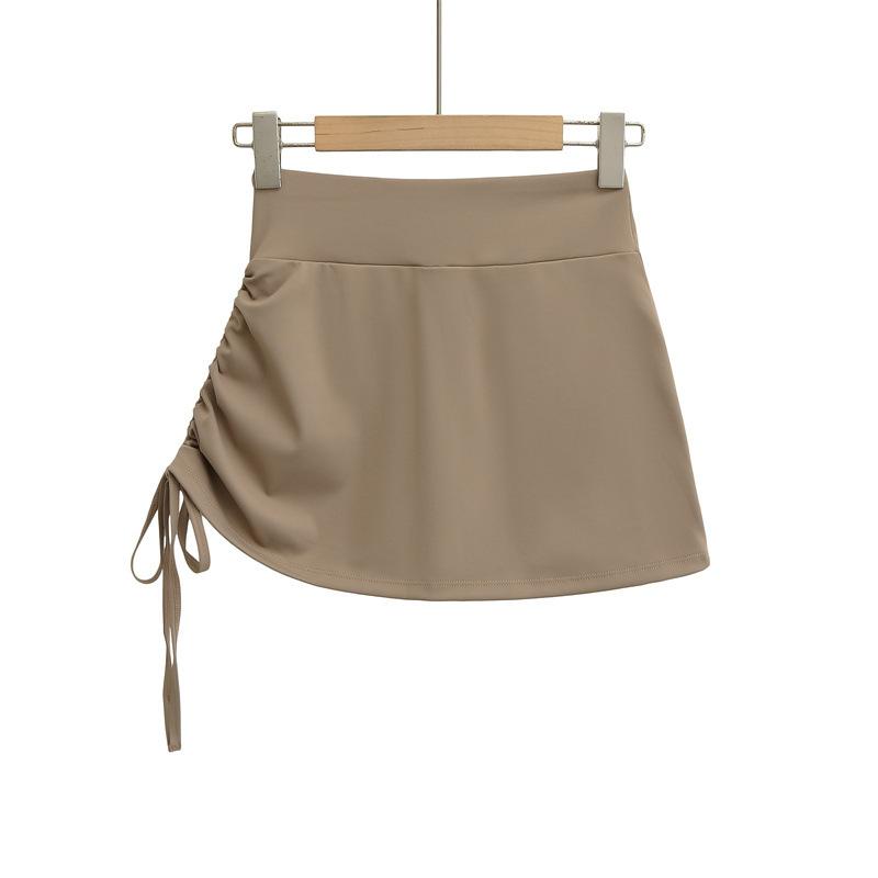 Falda Deportiva de Yoga con Cordón Fruncido de Diseño Verano Nuevo Cintura Alta Ajustada Cubre Caderas Falda Antiexposición
