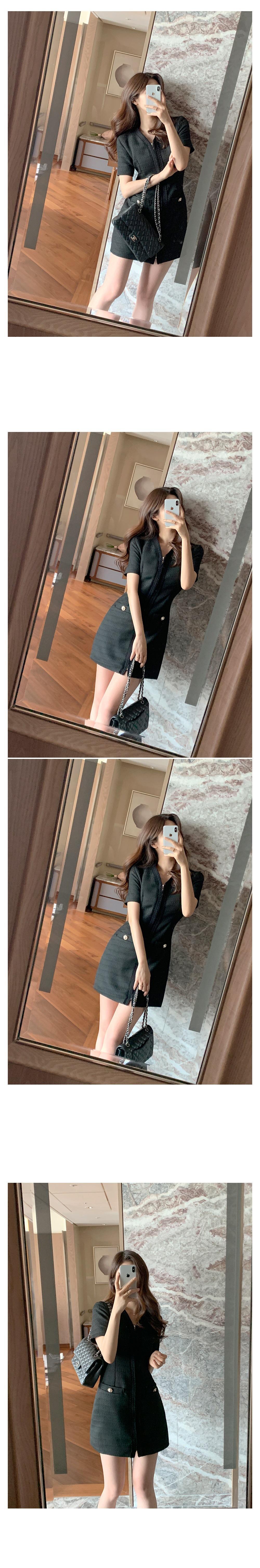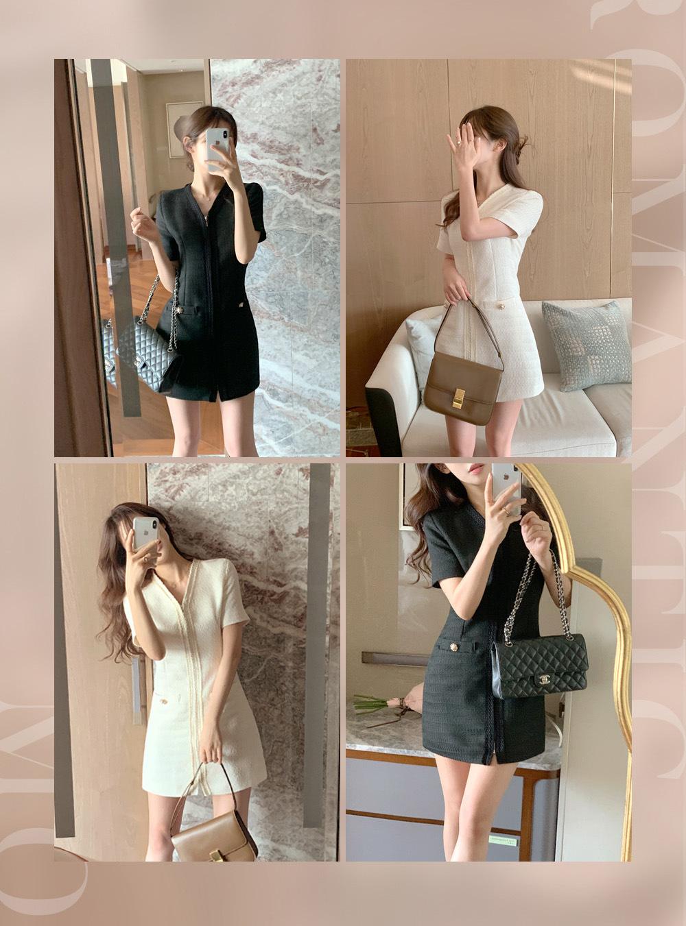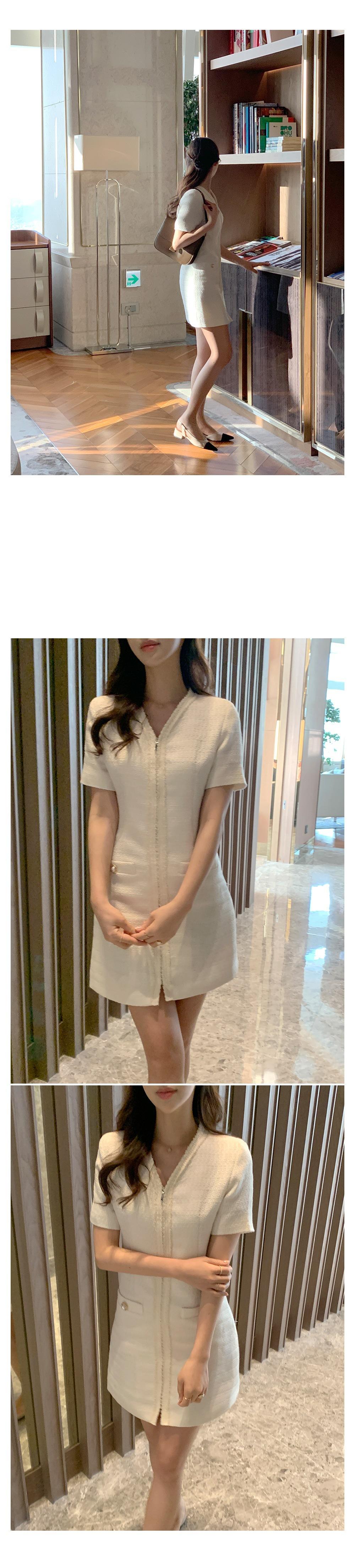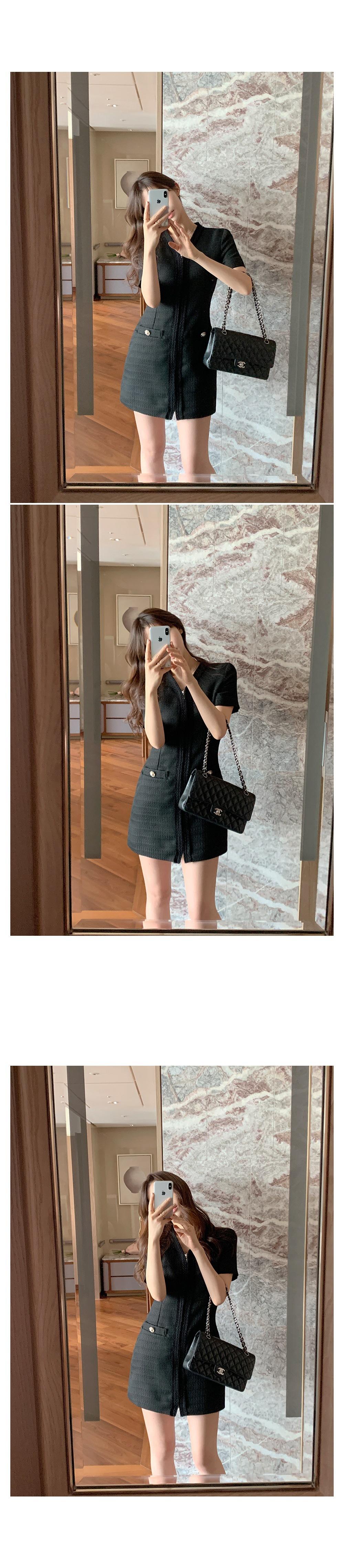 2025 Nuevo Estilo de Verano Francés Suave Elegante Elegante Pequeño Perfume Cremallera Cintura Adelgazante Look Vestido 2 Colores 85375