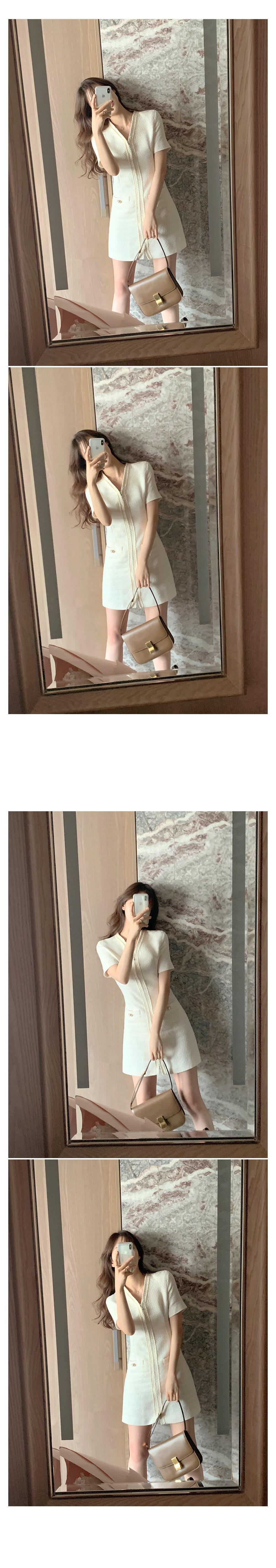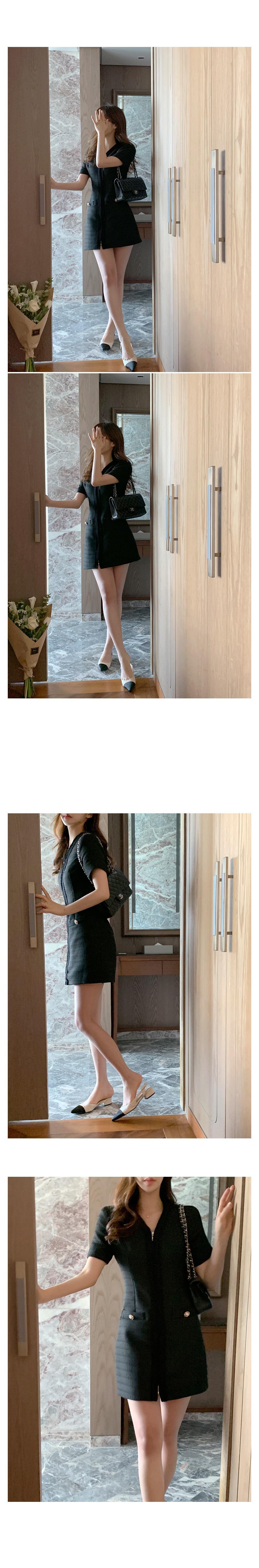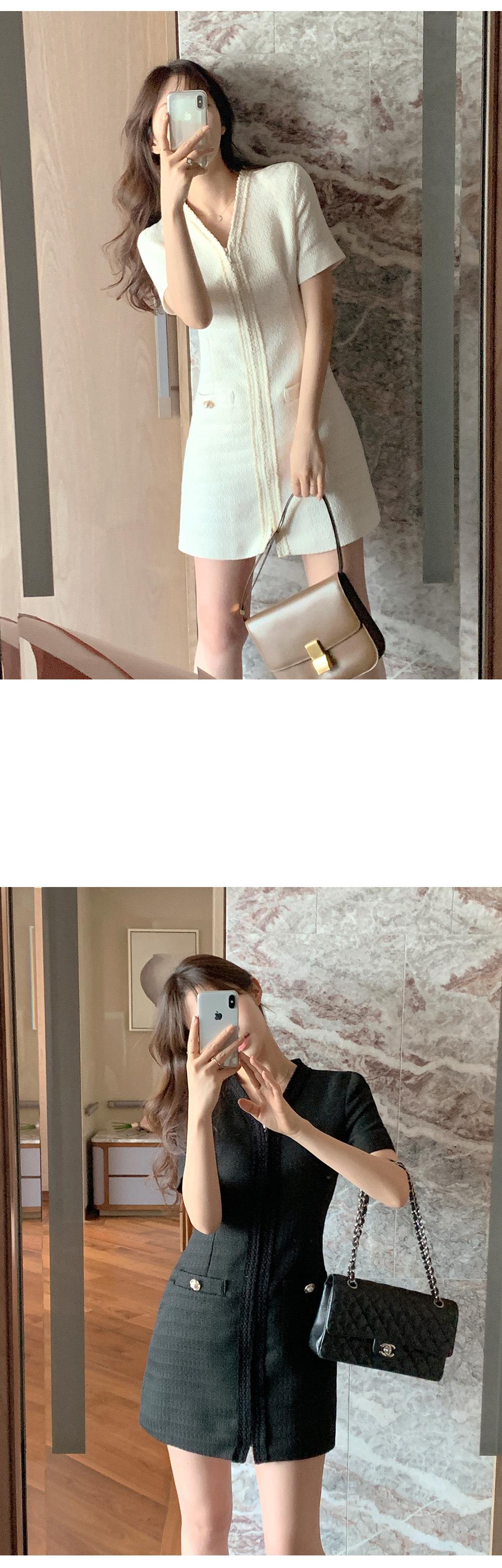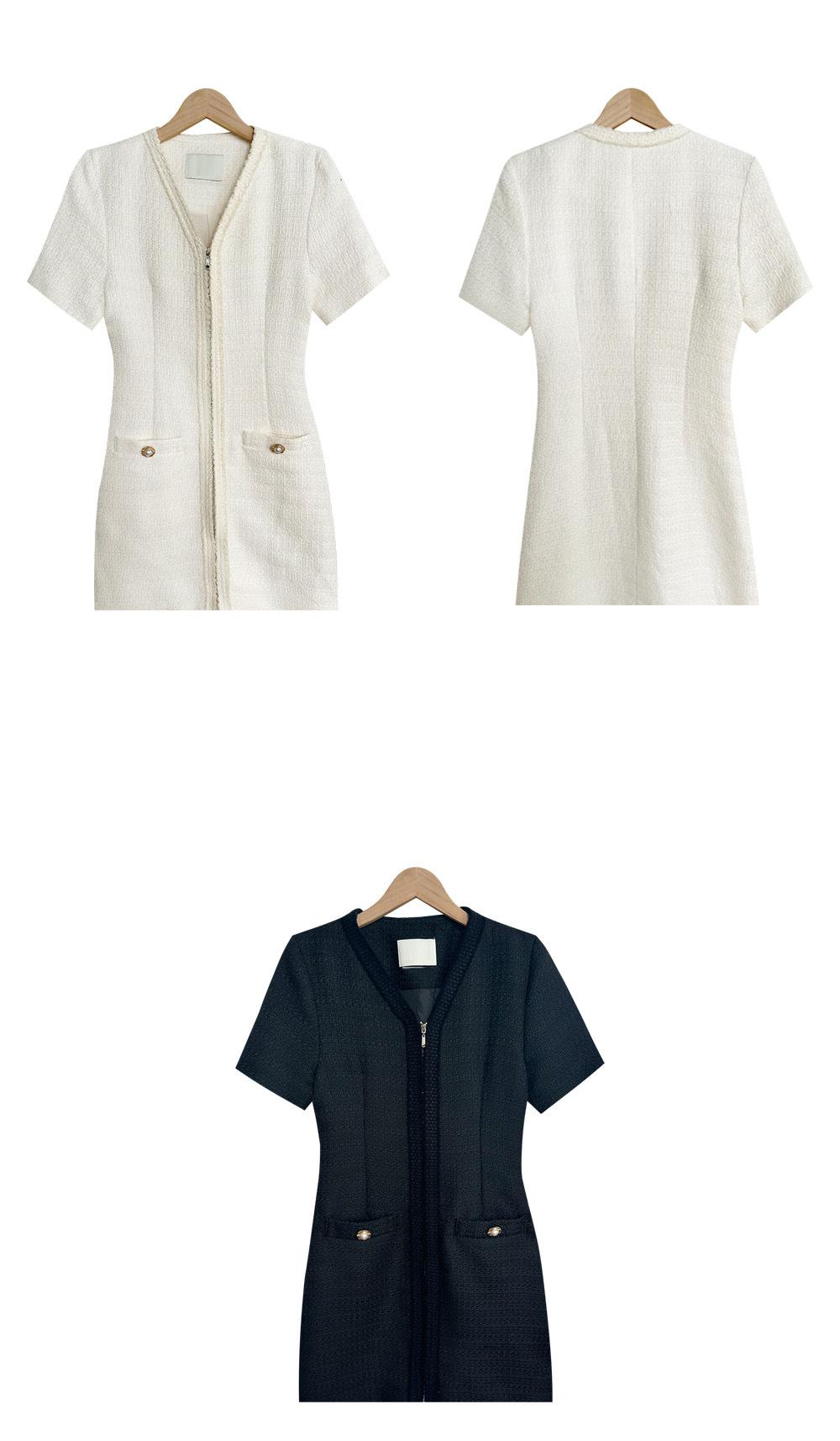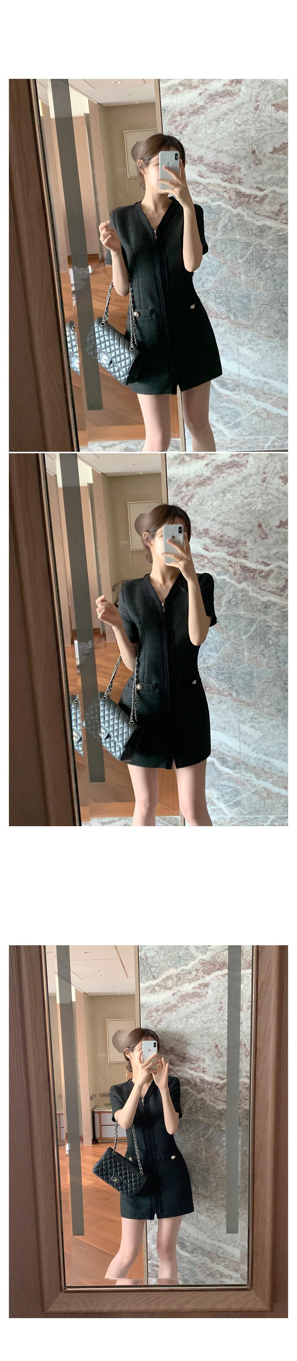 2025 Nuevo Estilo de Verano Francés Suave Elegante Elegante Pequeño Perfume Cremallera Cintura Adelgazante Look Vestido 2 Colores 85375