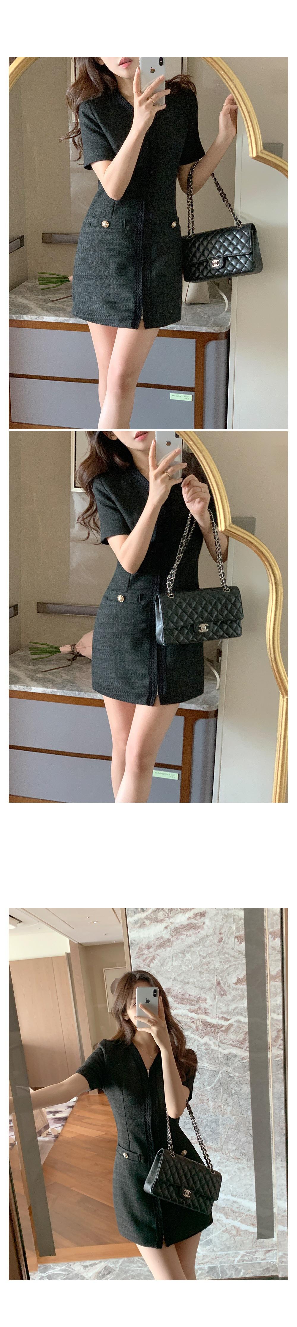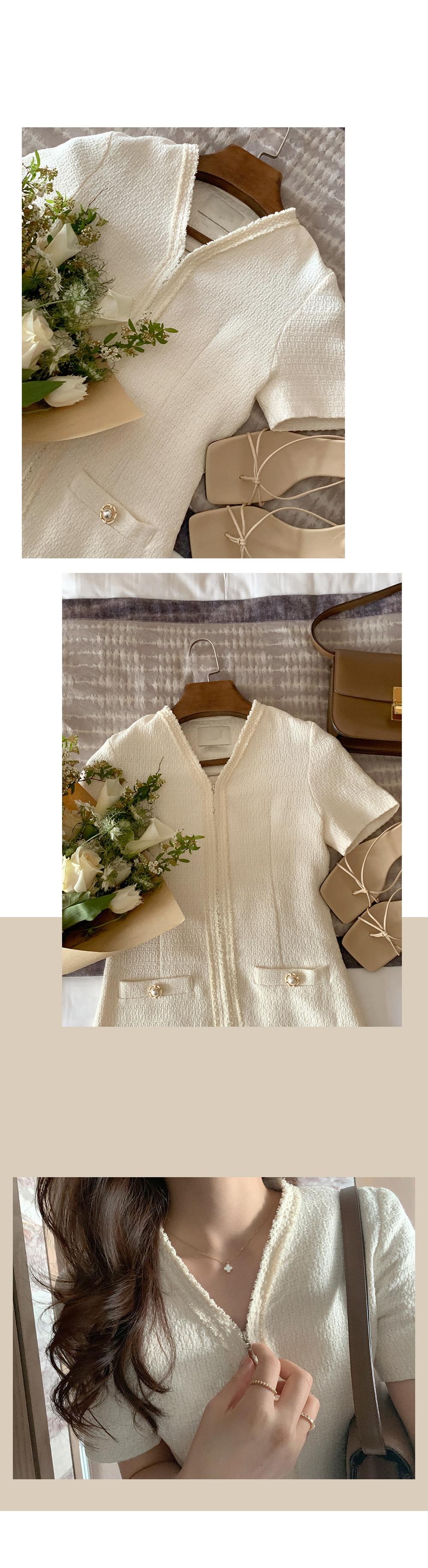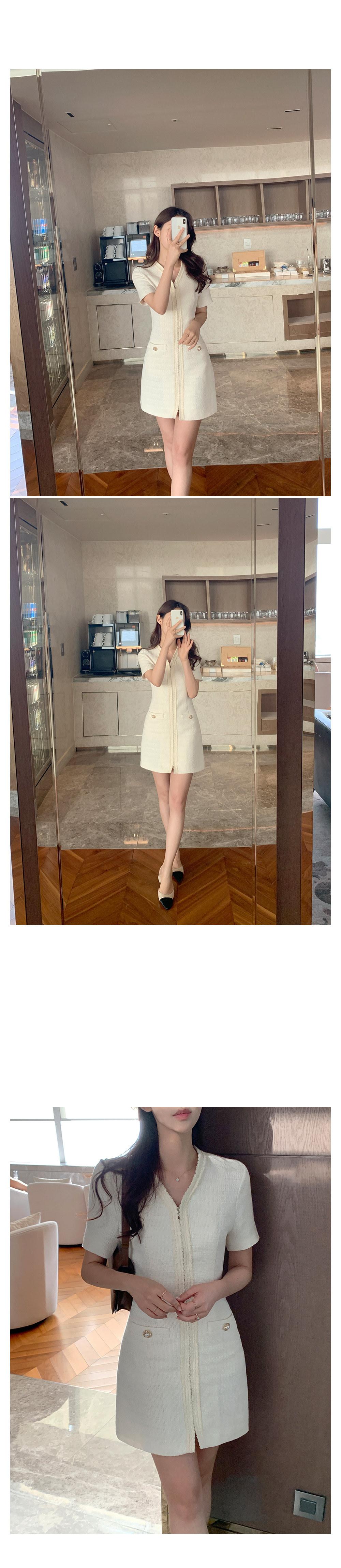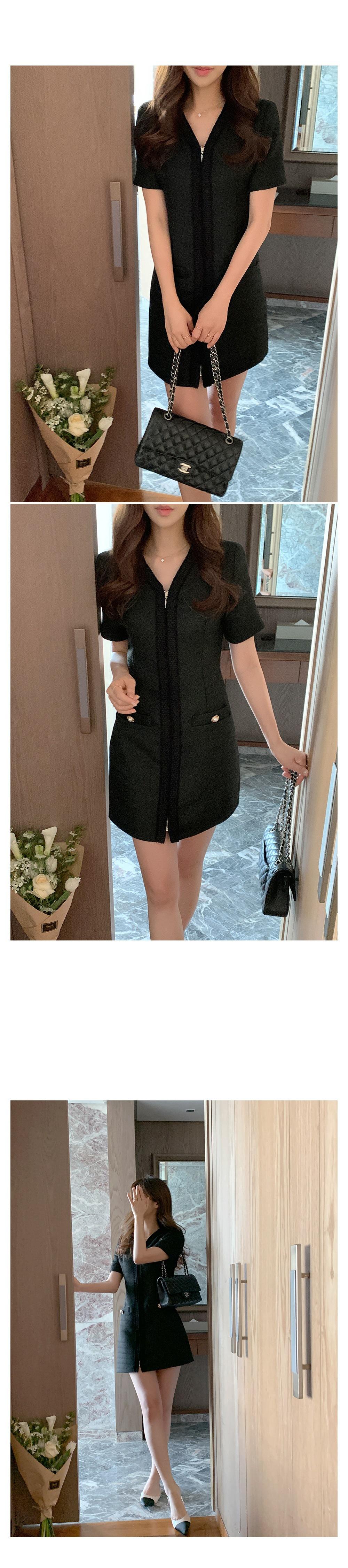 2025 Nuevo Estilo de Verano Francés Suave Elegante Elegante Pequeño Perfume Cremallera Cintura Adelgazante Look Vestido 2 Colores 85375