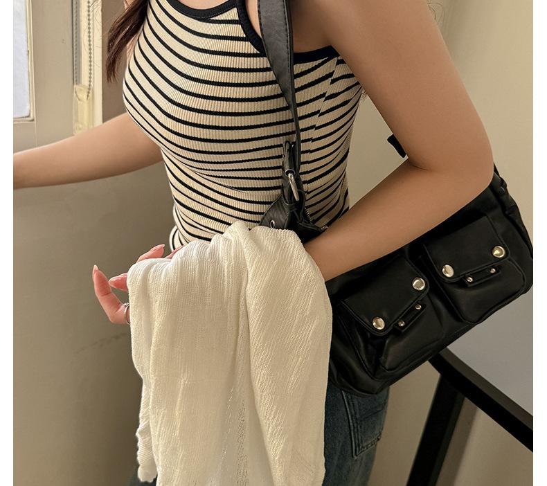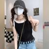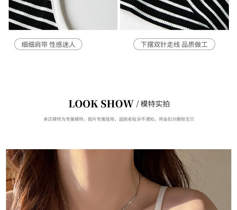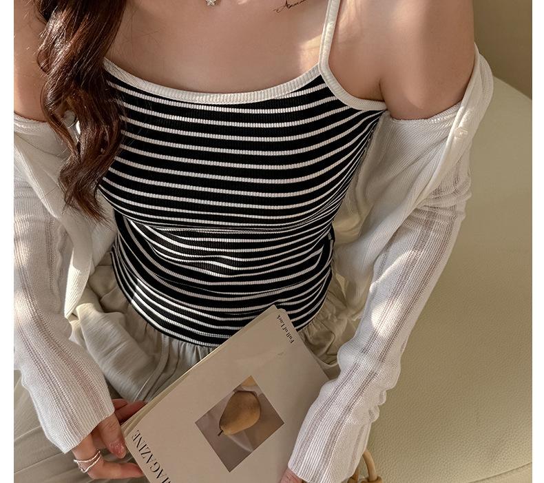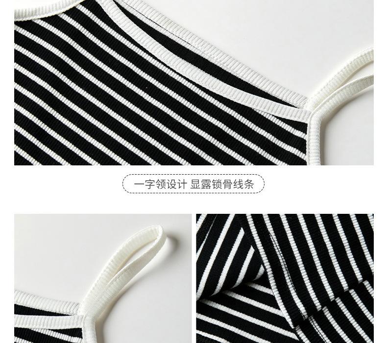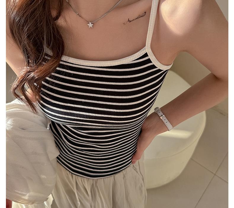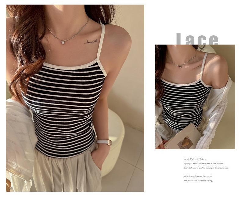 Camisola de Fondo de Algodón Puro con Rayas Tejidas de Color Contrastante para Mujer, Diseño Interior, Alta Elasticidad, Primavera y Verano, Top Sexy