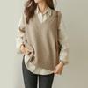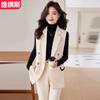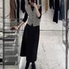 Comercio Exterior Color Puro Largo Medio Ajustado Chaleco de Algodón Primavera, Otoño e Invierno Nuevo Estilo Chaleco con Chaqueta sin Cuello en Capas