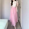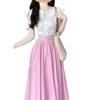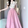 Verano 2025 nuevo estilo suave temperamento dulce y único bonito falda rosa camisa blanca hermoso traje