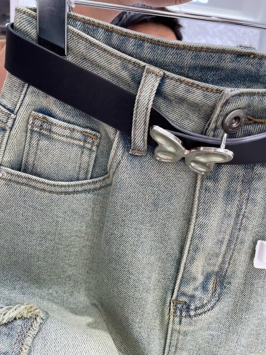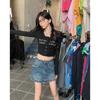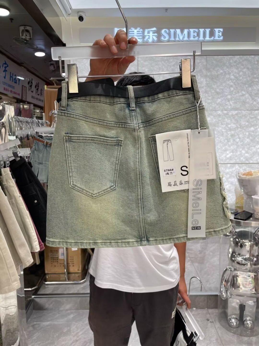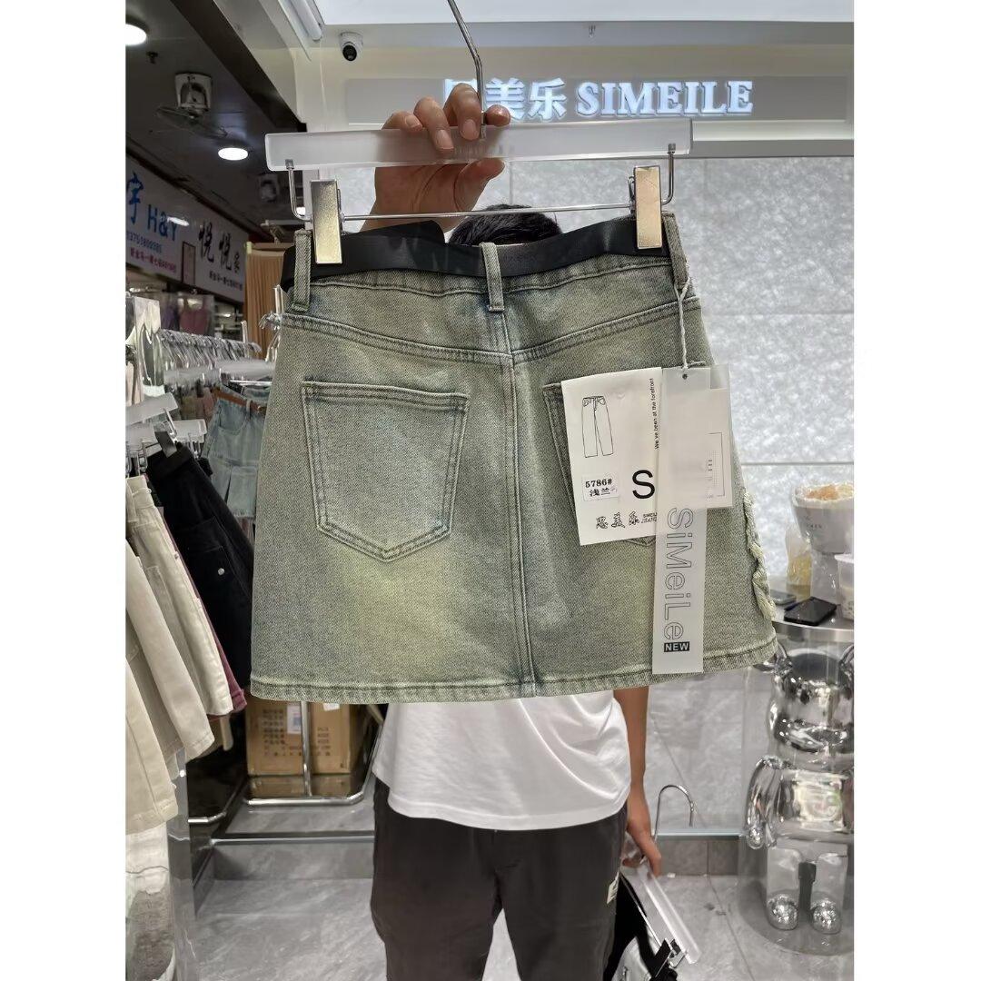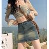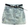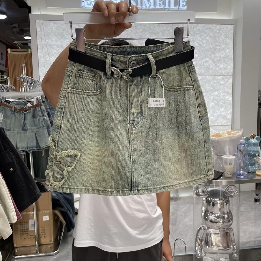 Falda de Mezclilla Bordada de Mariposa Vintage para Mujer Verano Chica Caliente Cintura Alta Ajustada Cadera Falda Línea A Antideslumbrante