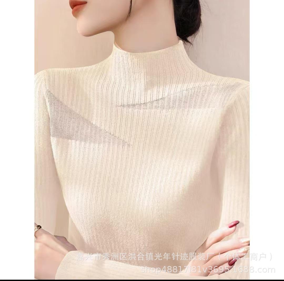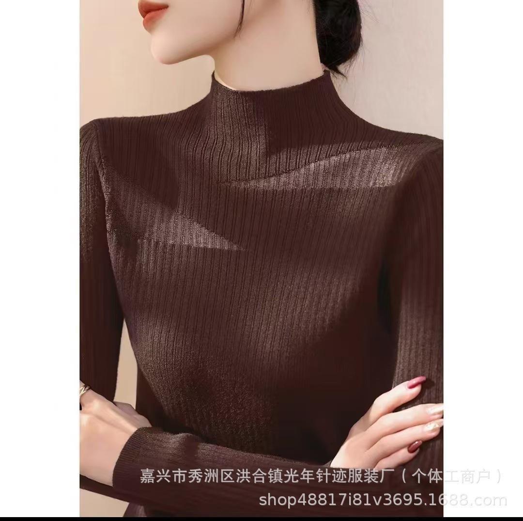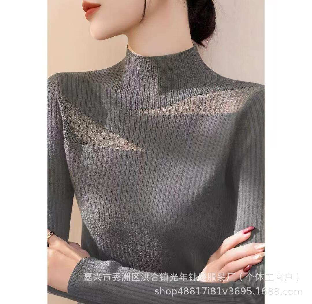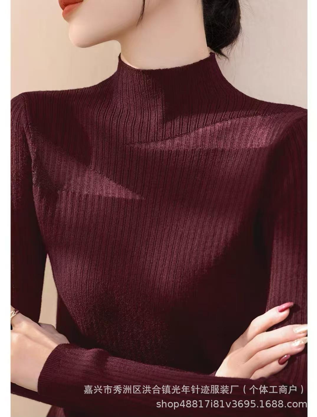 2025 Top Básico Empalmado de Cuello Medio Alto Estilo Francés Lana Otoño Nuevo Estilo Simple Suéter de Punto para Mujer
