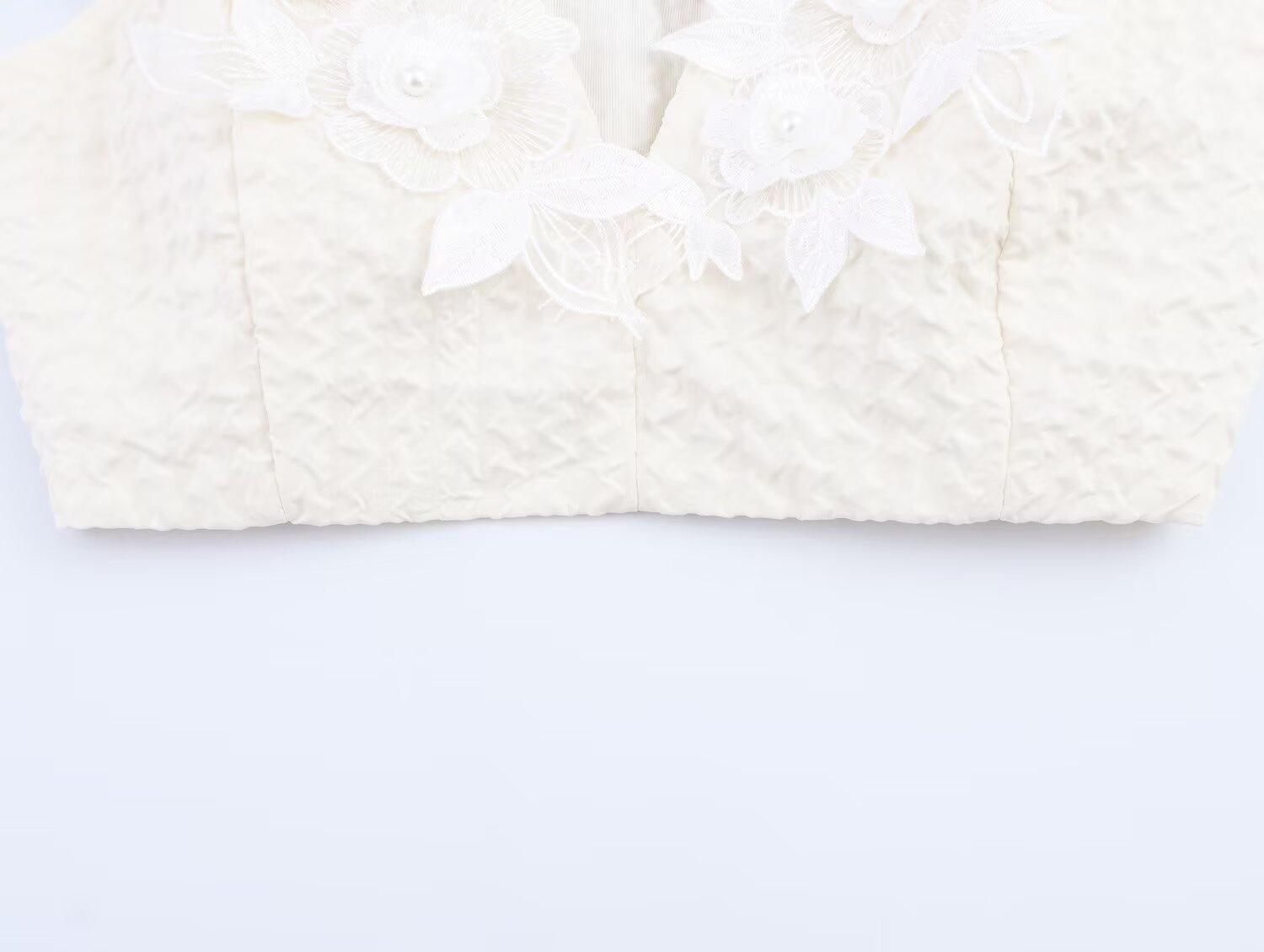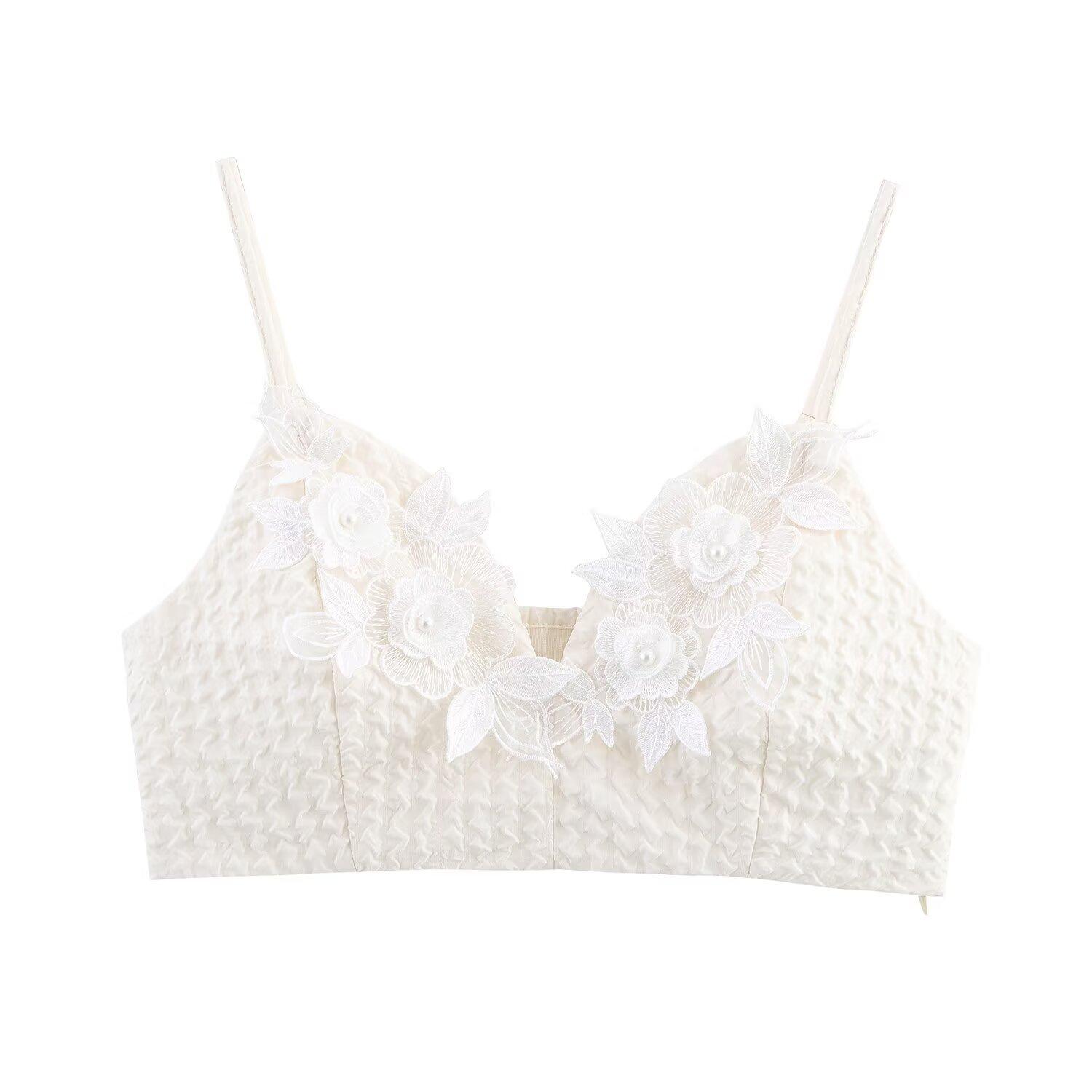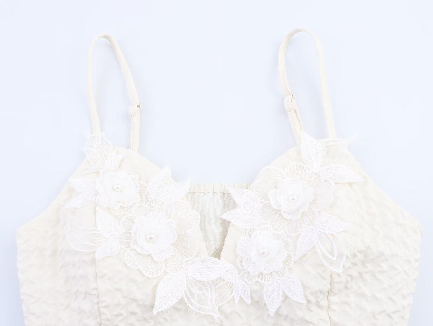 Ropa de Verano para Mujer 2025 Nuevo Estilo Europeo y Americano Moda Sencilla Decoración de Flores Estéreo Traje Texturizado de Tirantes