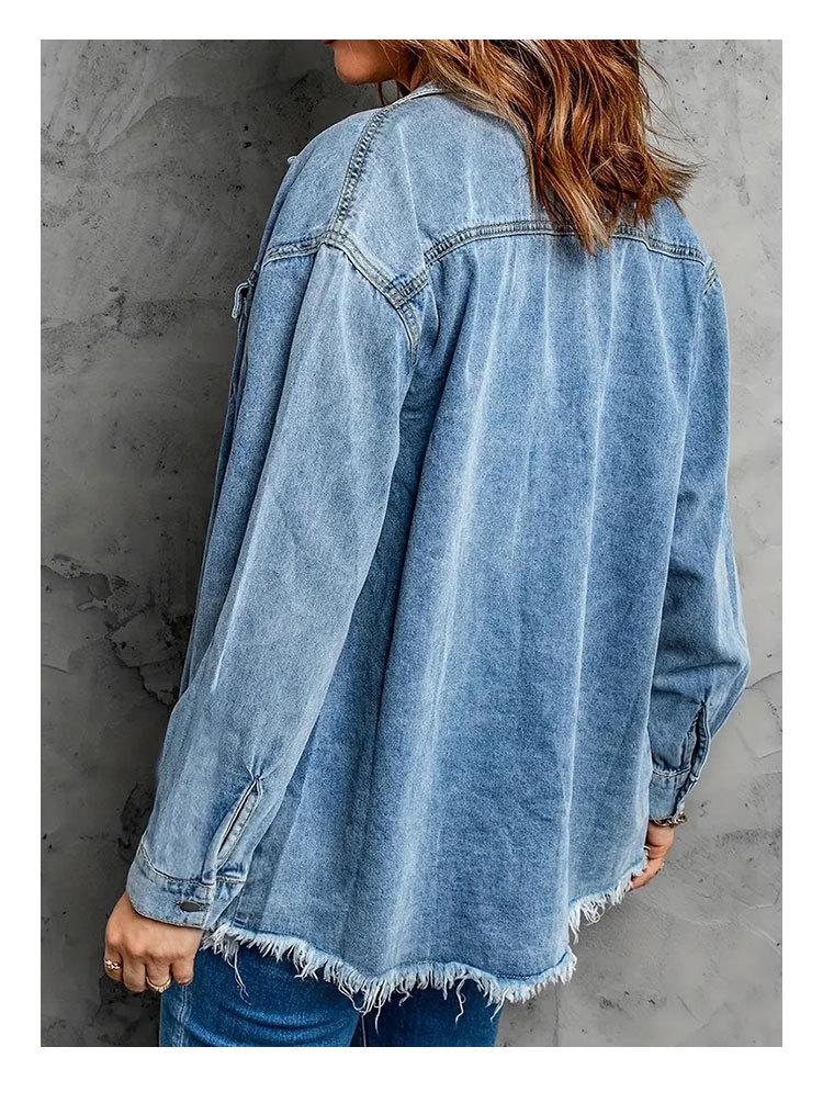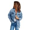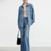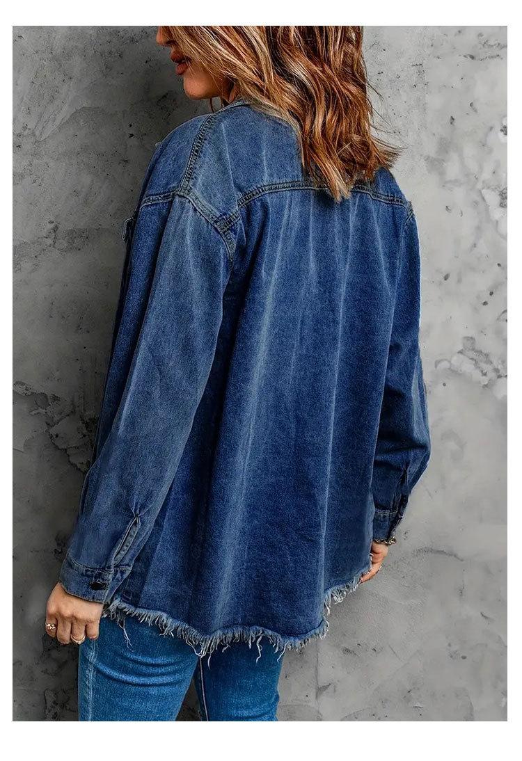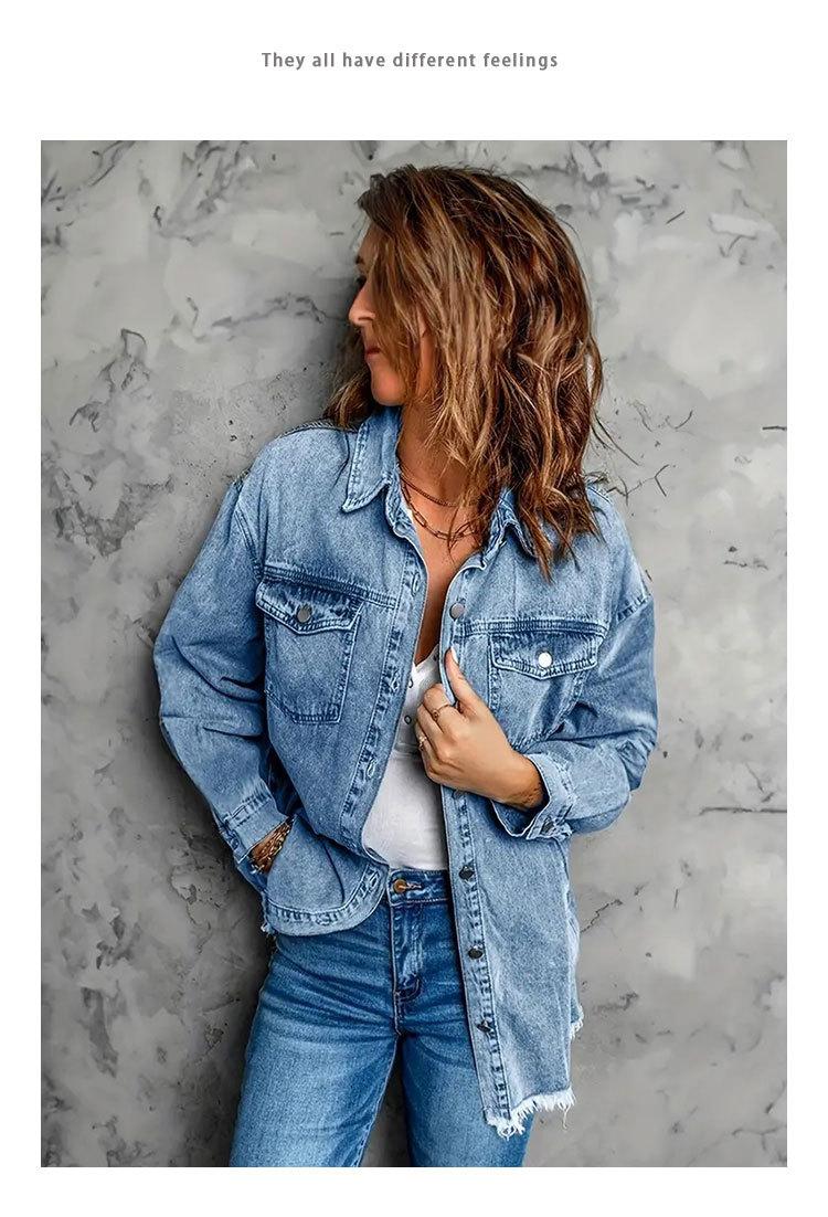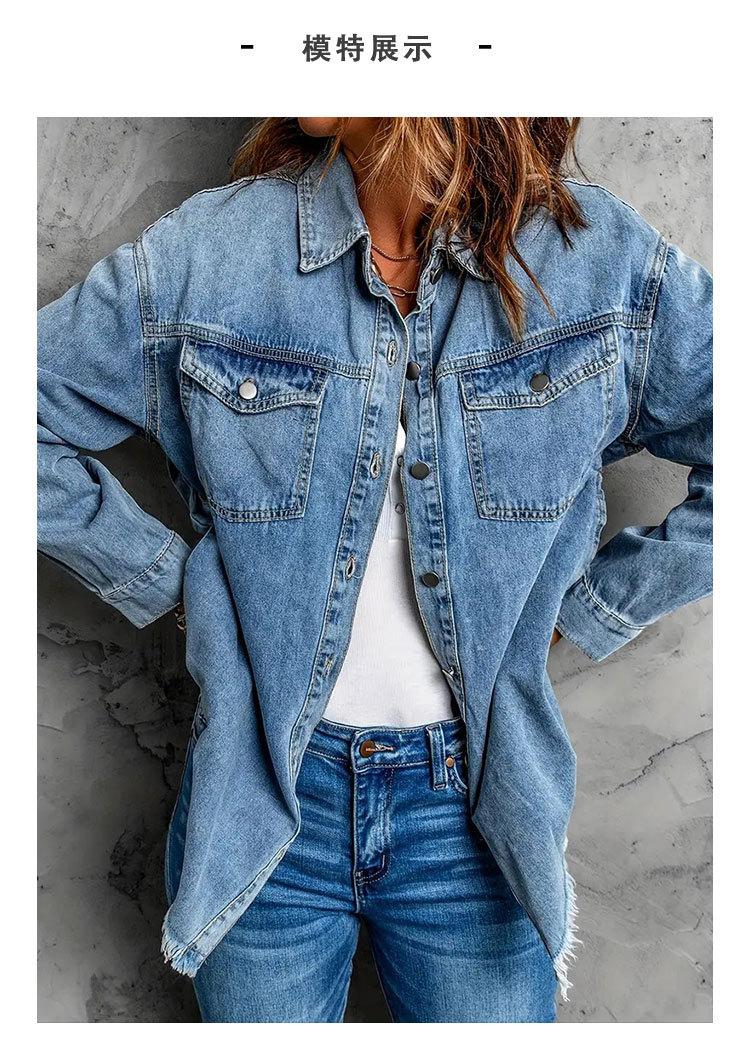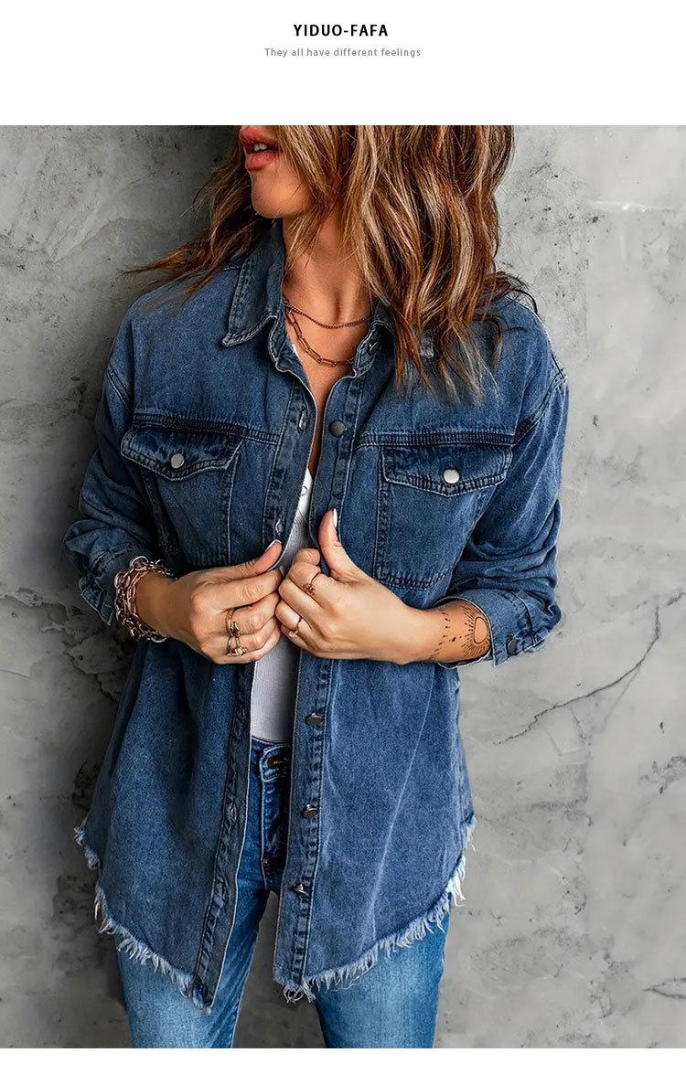 Xintang Denim Estilo Transfronterizo Europeo y Americano Americano Retro Moderno Chaqueta Camisera de Mezclilla Azul Oscuro para Mujer Otoño e Invierno Estilo de Manga Larga