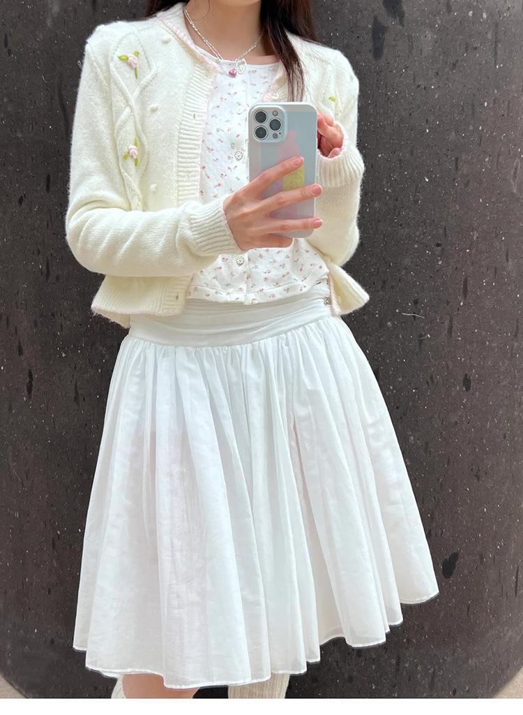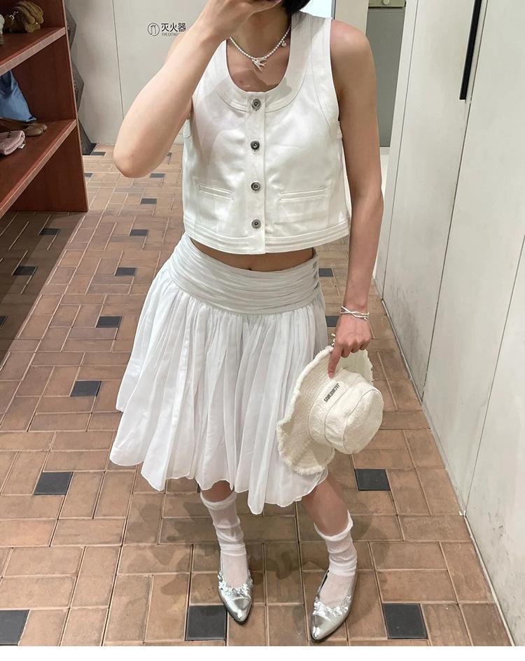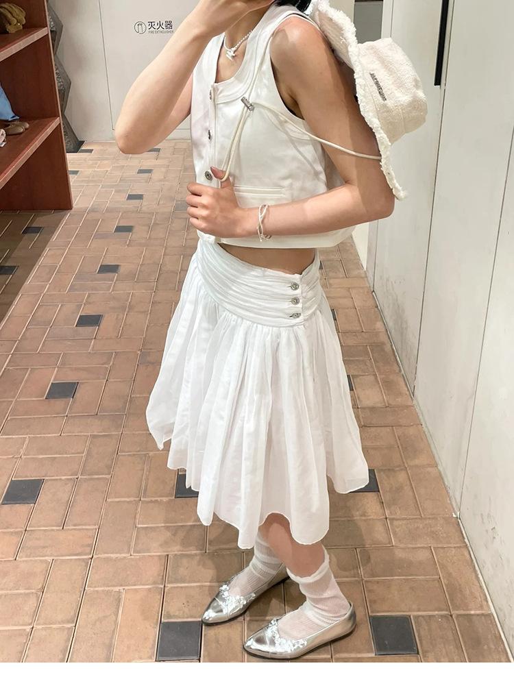 25 Primavera y Verano Francés Hermoso Niebla Fantasía Blanco Luz de Luna Hada Cintura Alta Tridimensional Falda de Pliegues Dobles Falda Falda