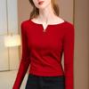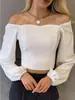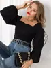 Exportación Transfronteriza Color Puro Moda Versátil Casual Top Cuello Cuadrado Manga Larga Sexy Más Vendido Camiseta Francesa de Manga Larga para Mujer
