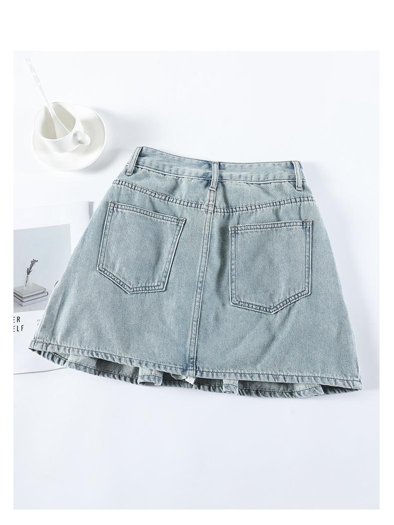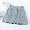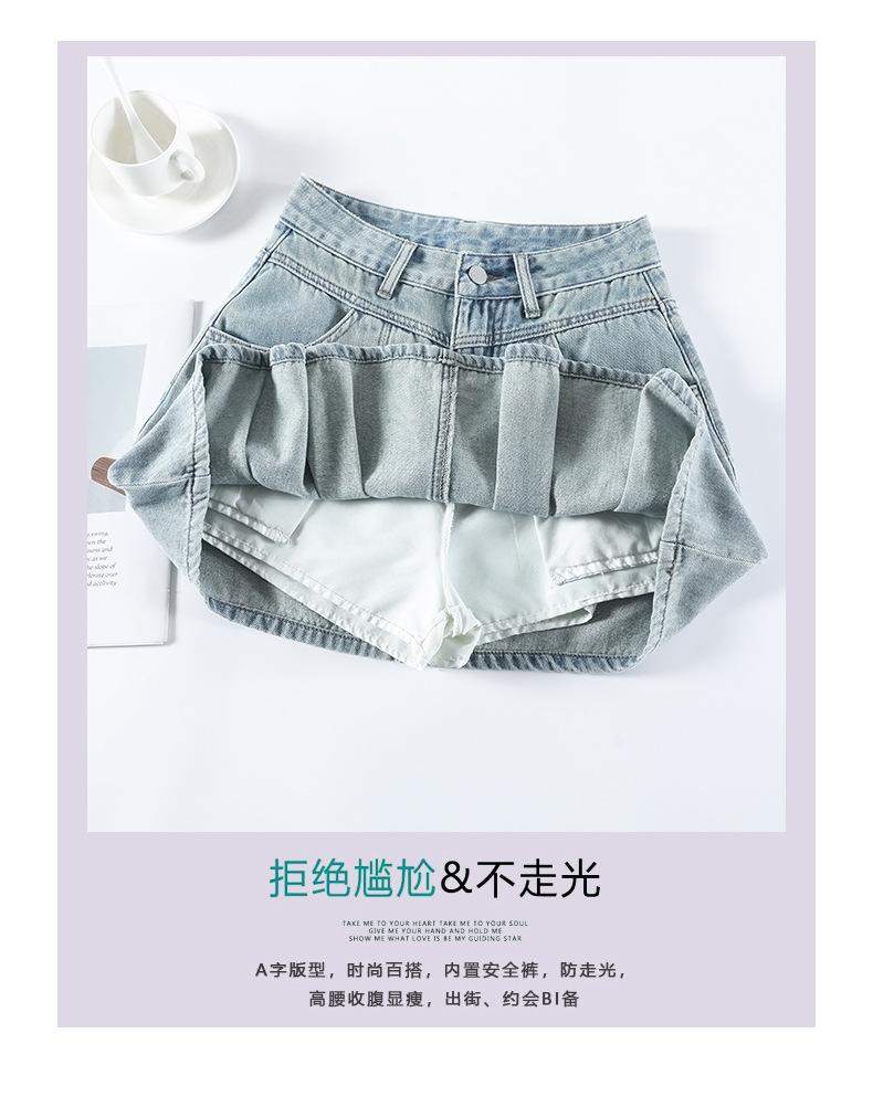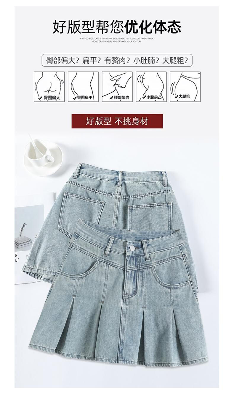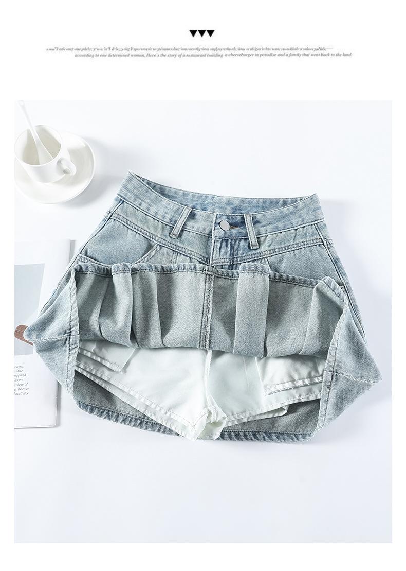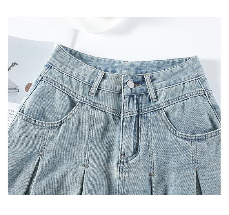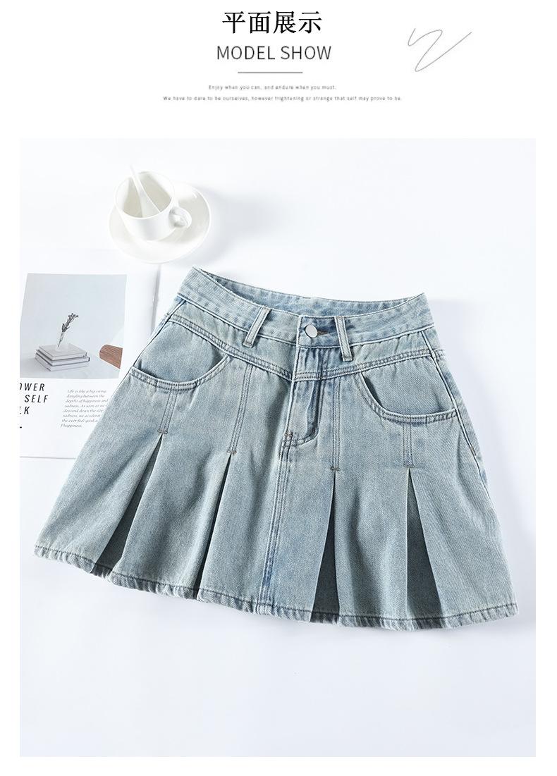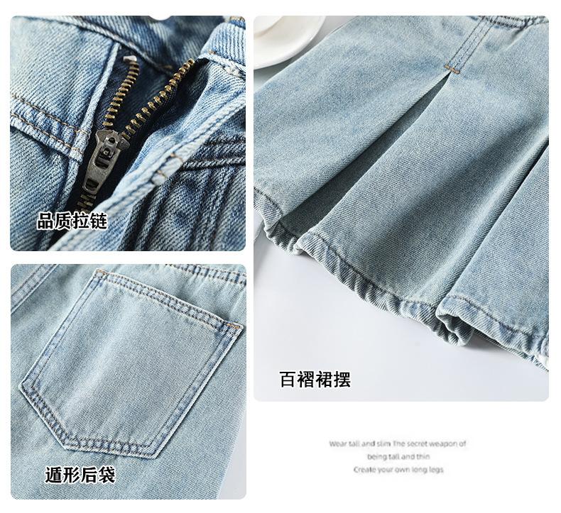 Falda de mezclilla retro americana para mujer verano 2025 nueva falda corta plisada acampanada de cintura alta y corte slim para personas pequeñas