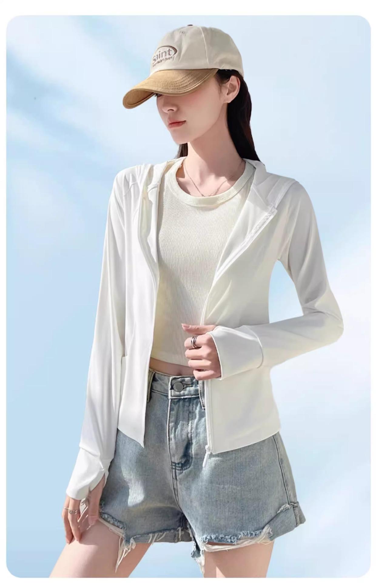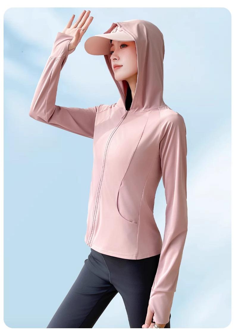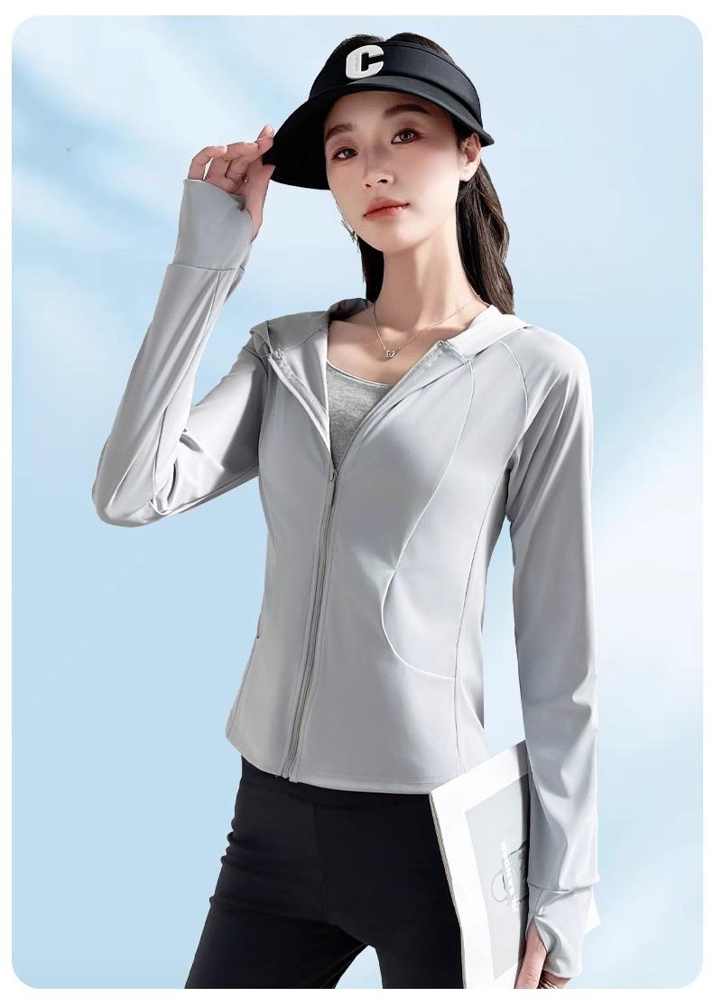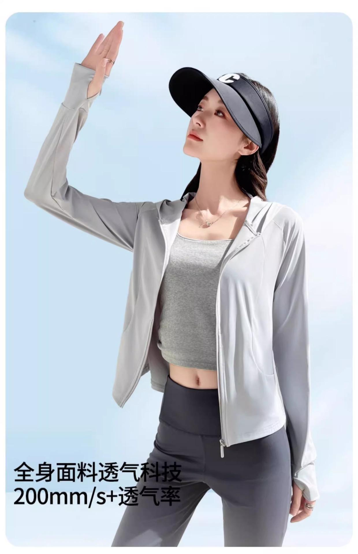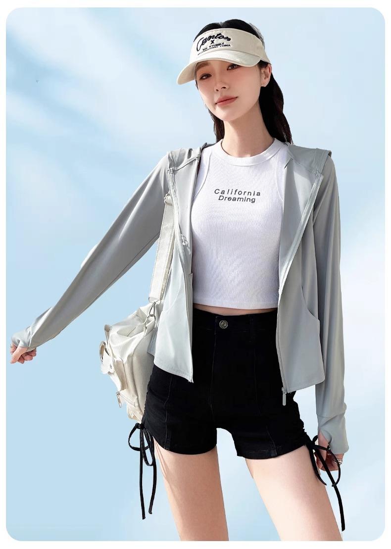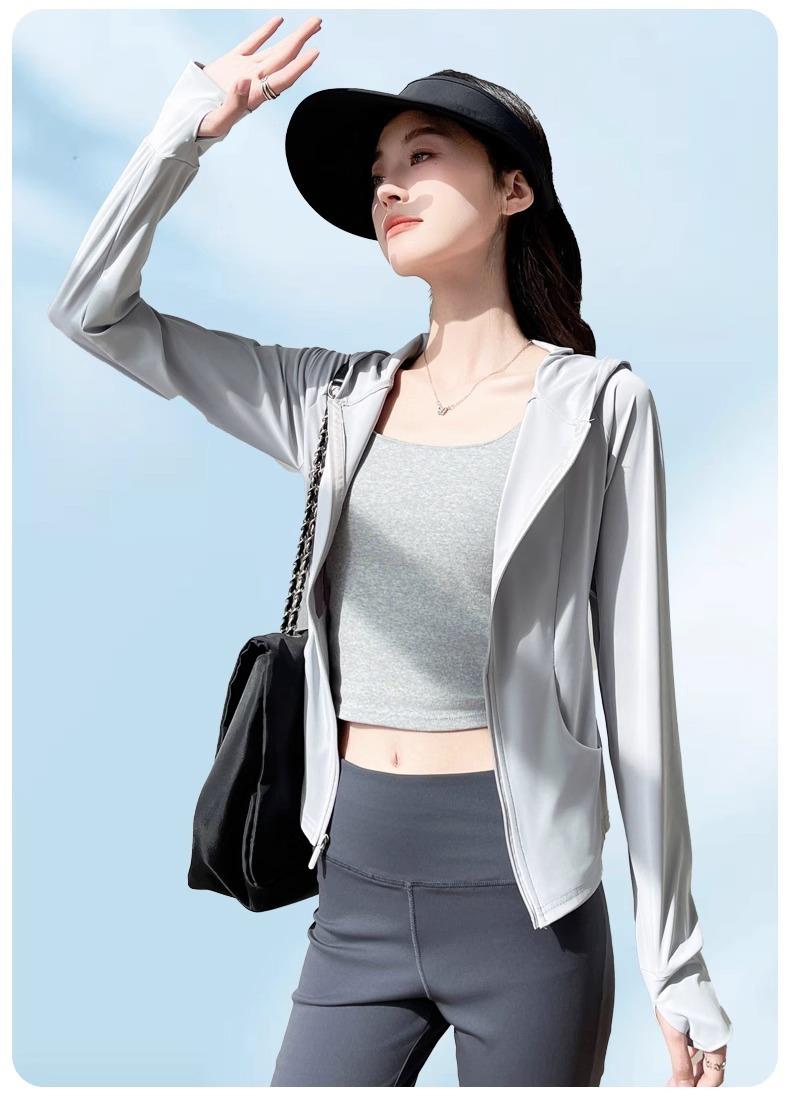 Ropa Fresca de Seda de Hielo Protección Solar Ropa de Verano Delgada para Mujer Protección UV Ajuste Entallado Ropa de Protección Solar Chaqueta Deportiva para Exterior A3569