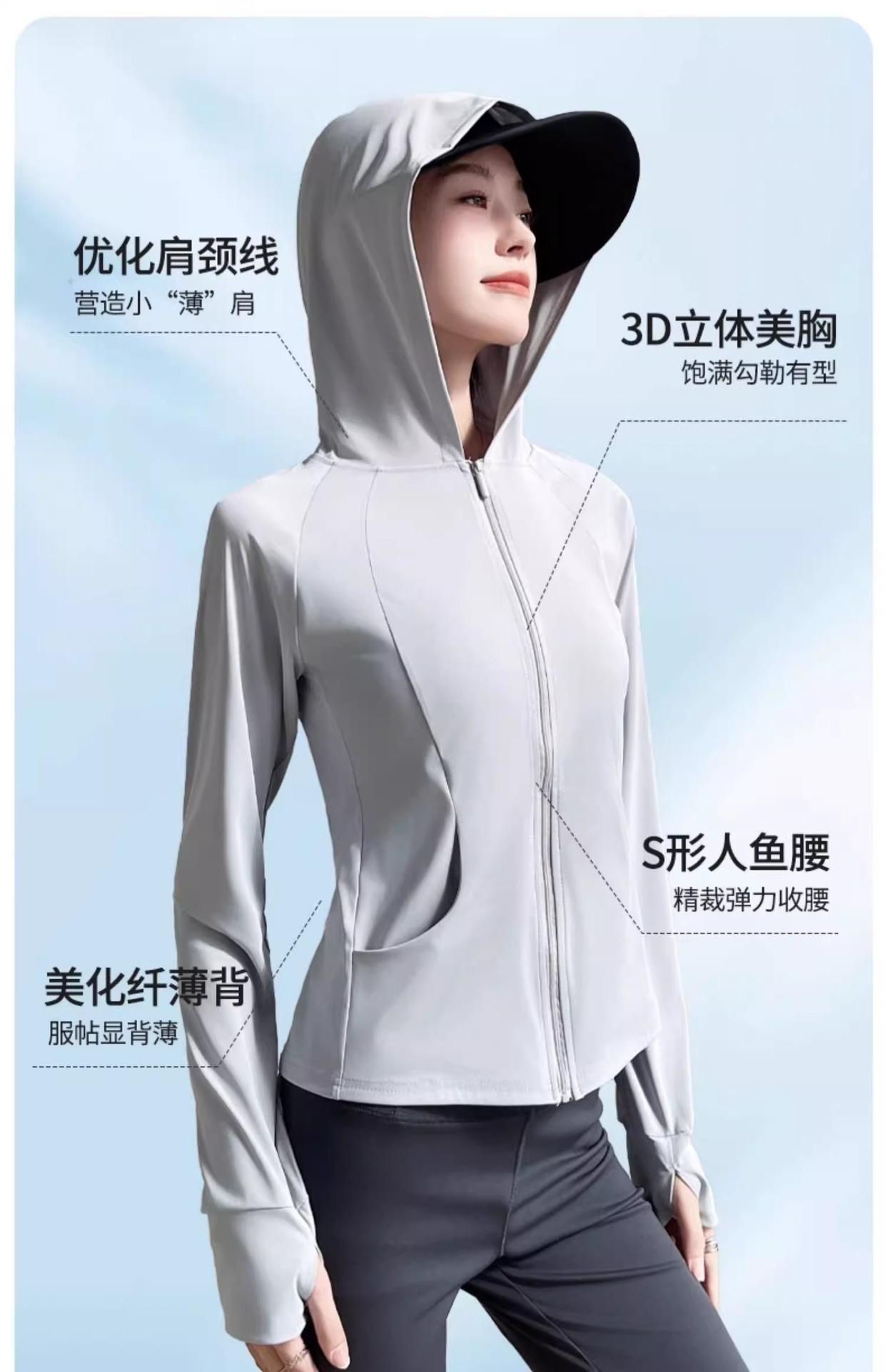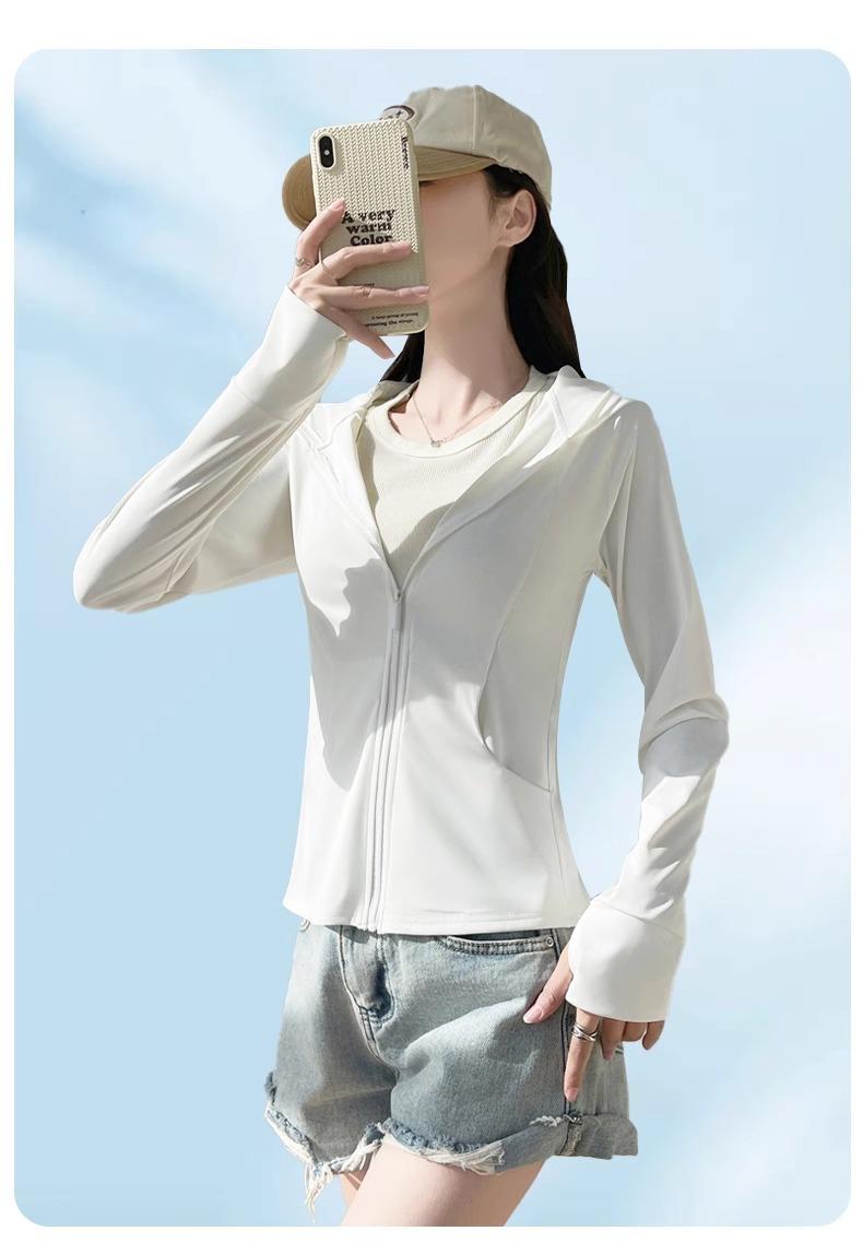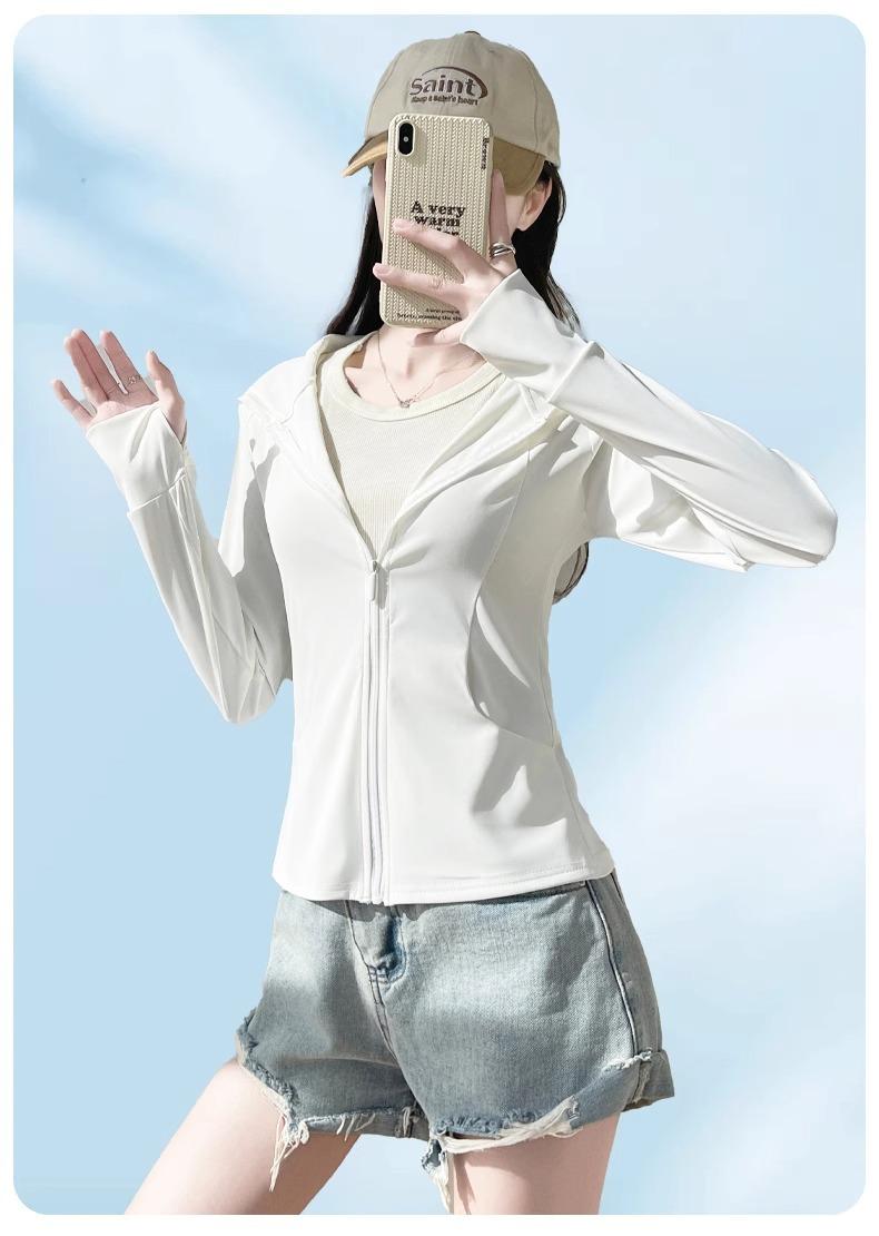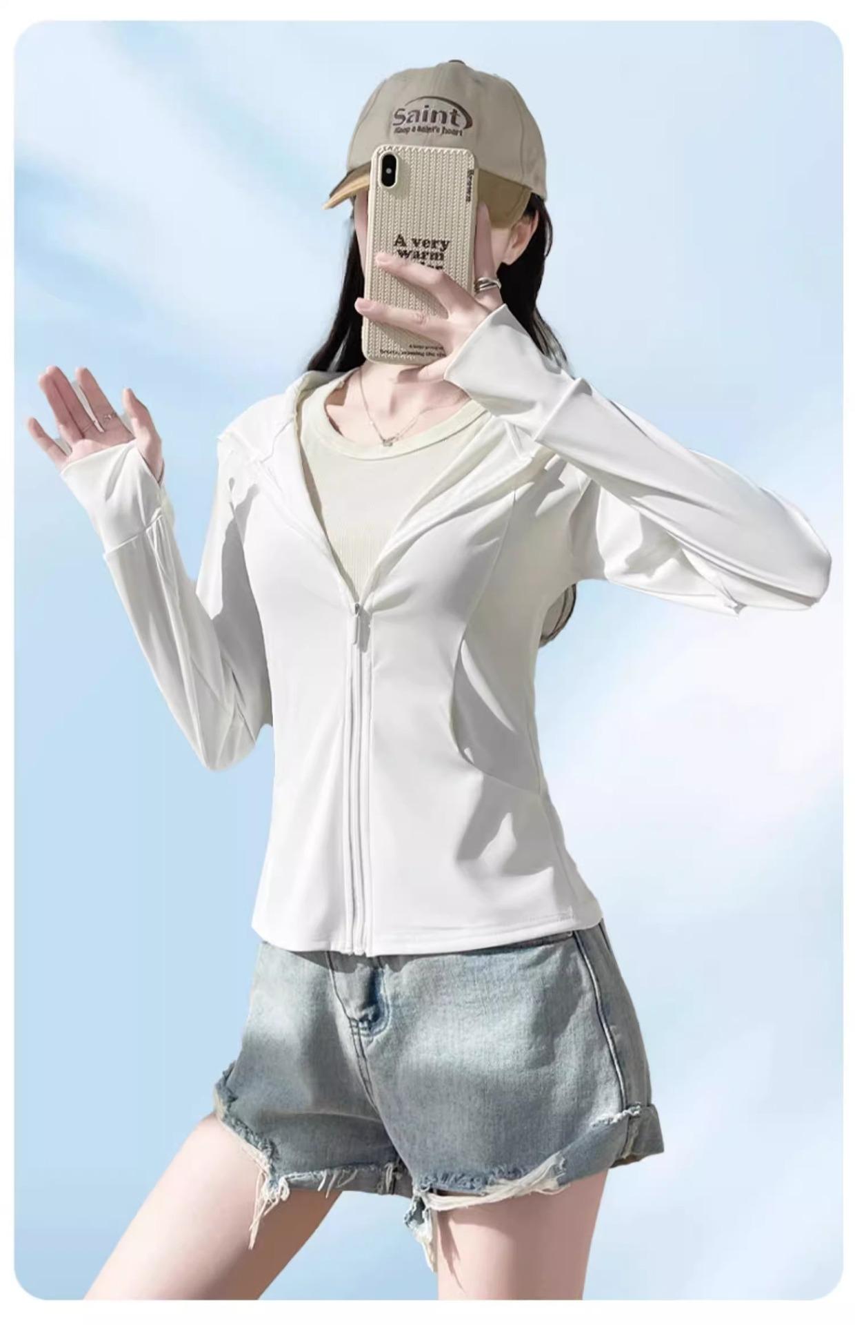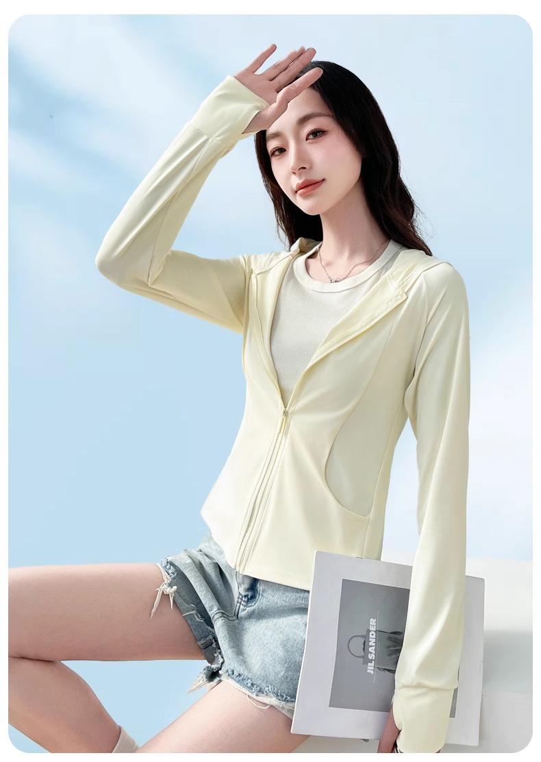 Ropa Fresca de Seda de Hielo Protección Solar Ropa de Verano Delgada para Mujer Protección UV Ajuste Entallado Ropa de Protección Solar Chaqueta Deportiva para Exterior A3569