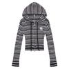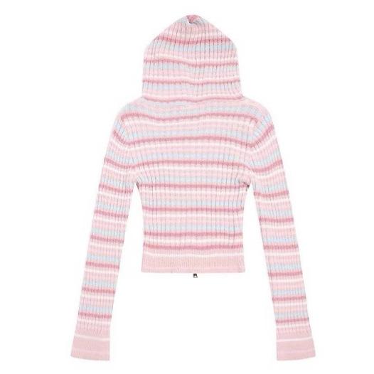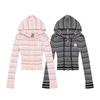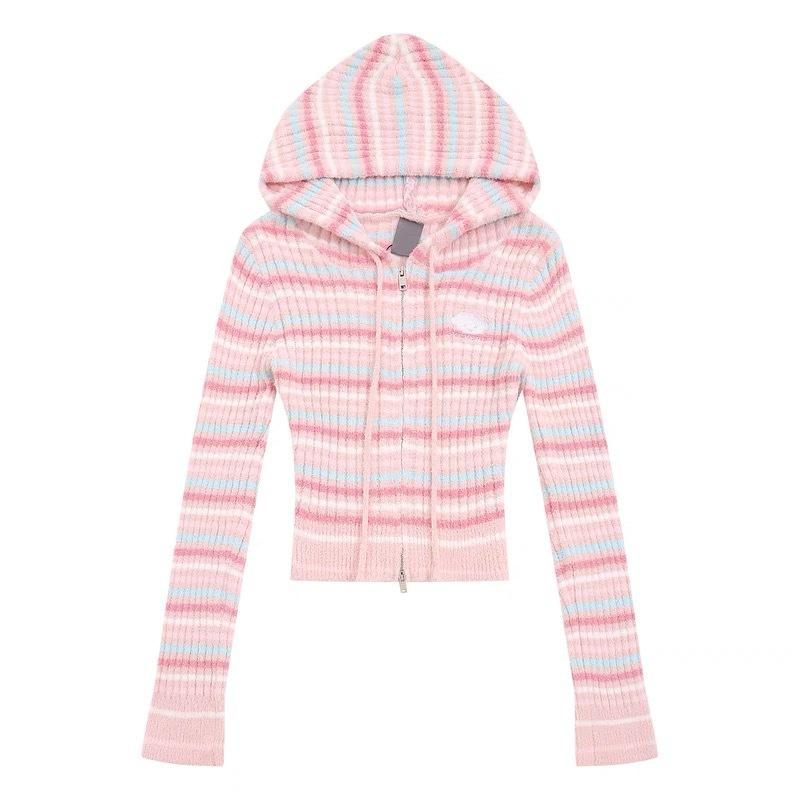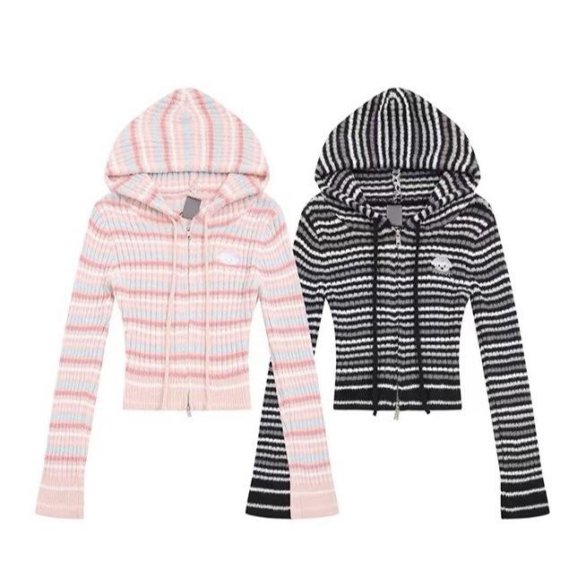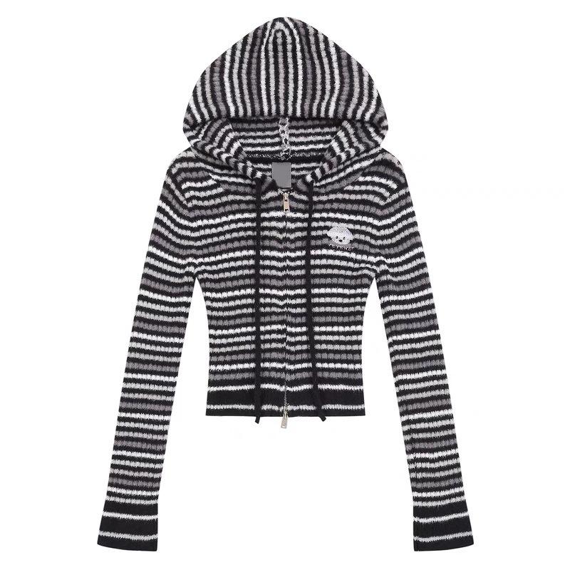 Suéter de Punto Dalan, Otoño Estilo Coreano Bordado de Dibujos Animados Doble Cremallera con Capucha Suéter de Punto para Mujer, Suéter de Manga Larga Corto Ajustado